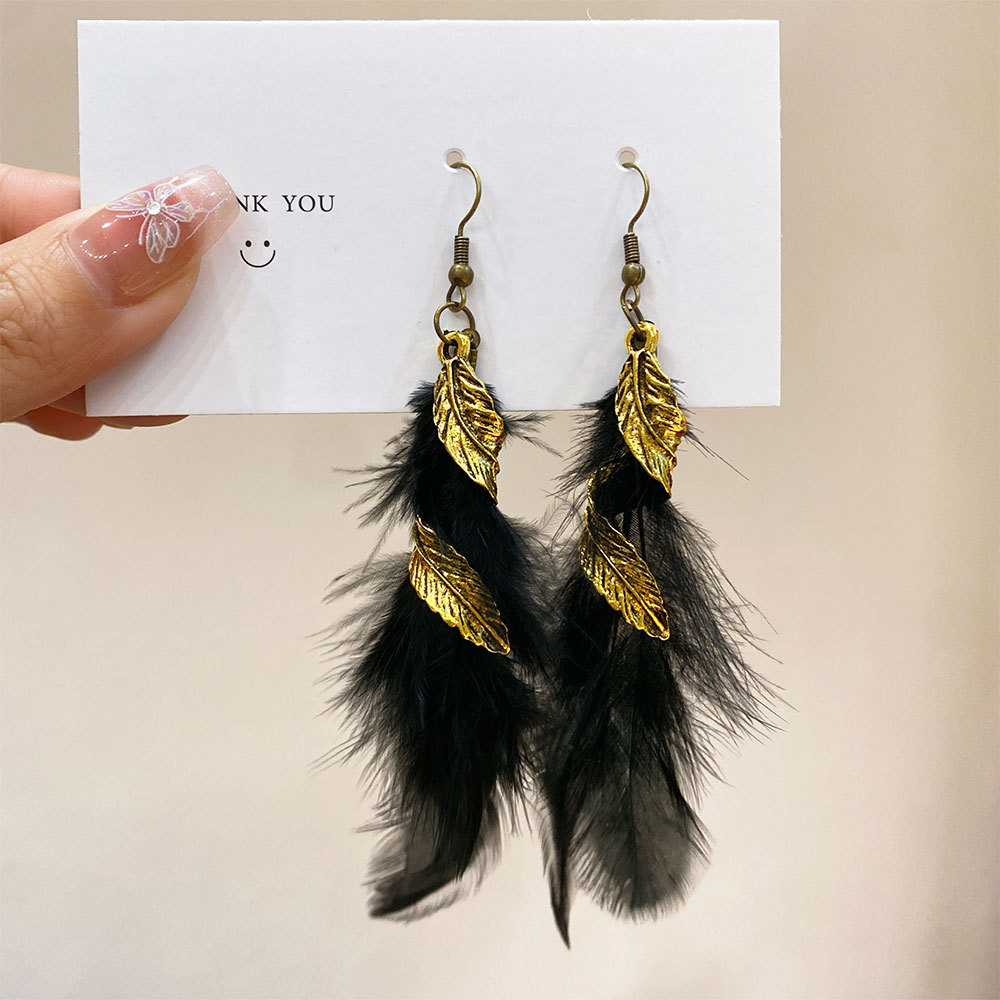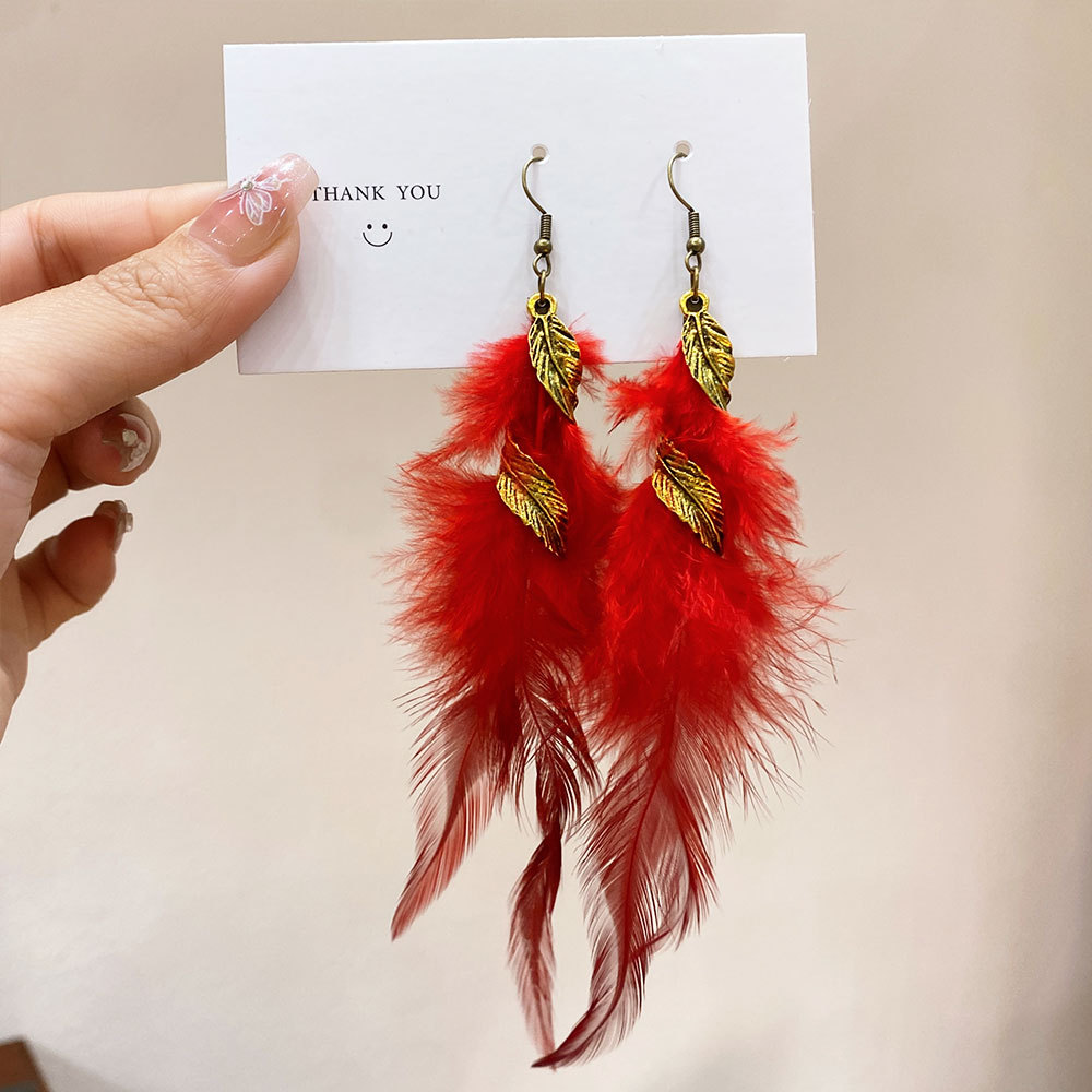 波西米亚民族风羽毛耳环云南旅游海边拍照百搭复古流苏耳坠