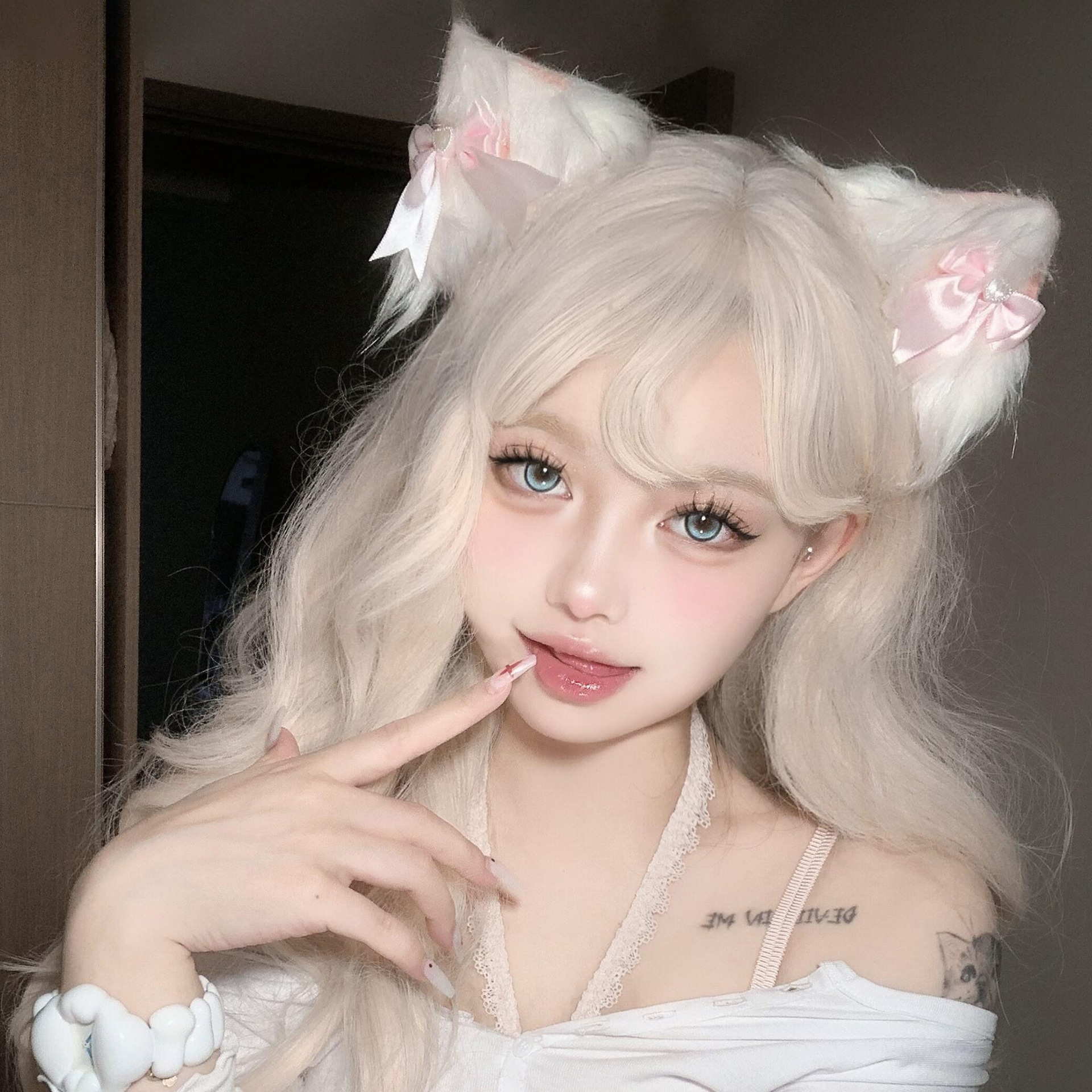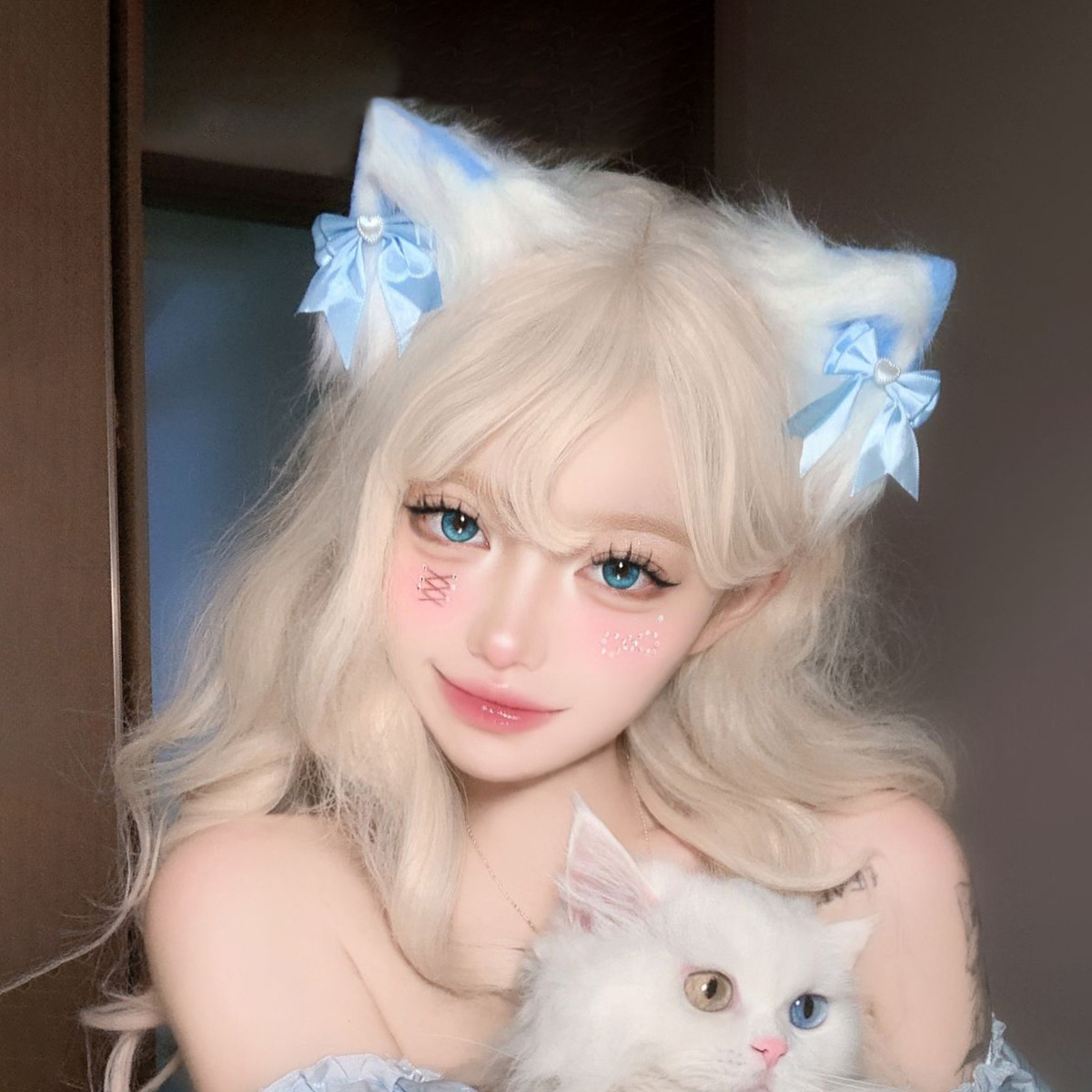 蓝色猫耳朵头饰女甜美Lolita漫展女仆发夹cos毛绒猫娘兽耳发饰卡-