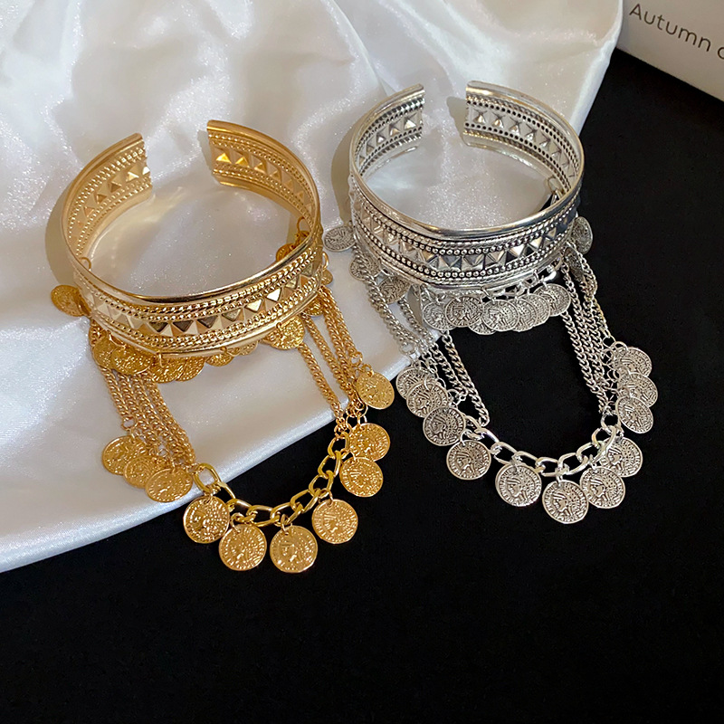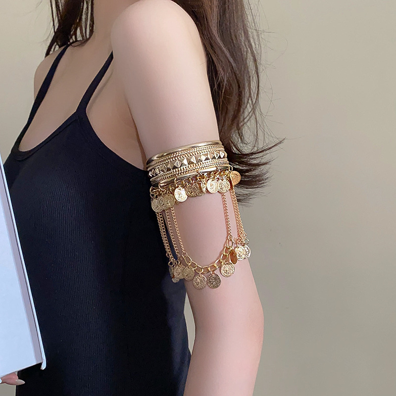 异域民族风流苏臂钏手镯小众设计宽版臂镯臂环演出舞蹈古风配饰女