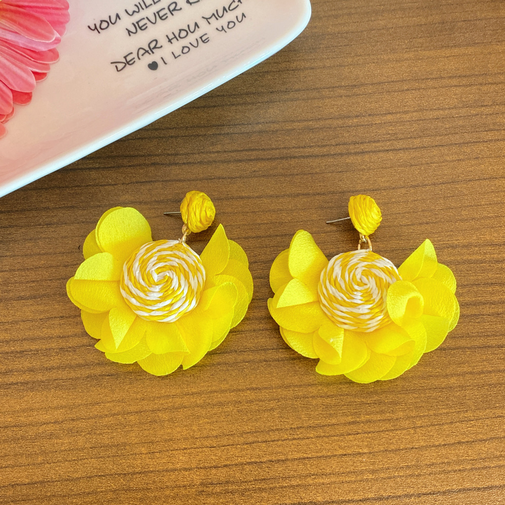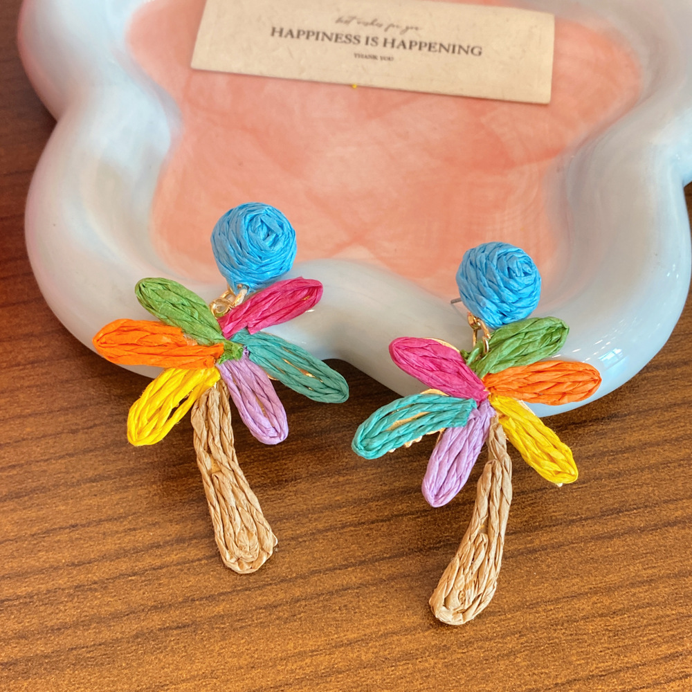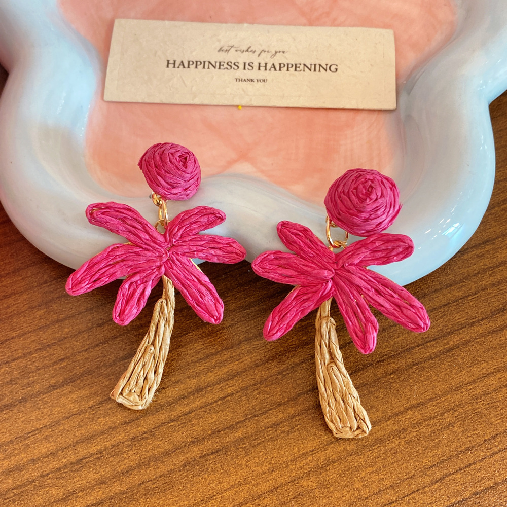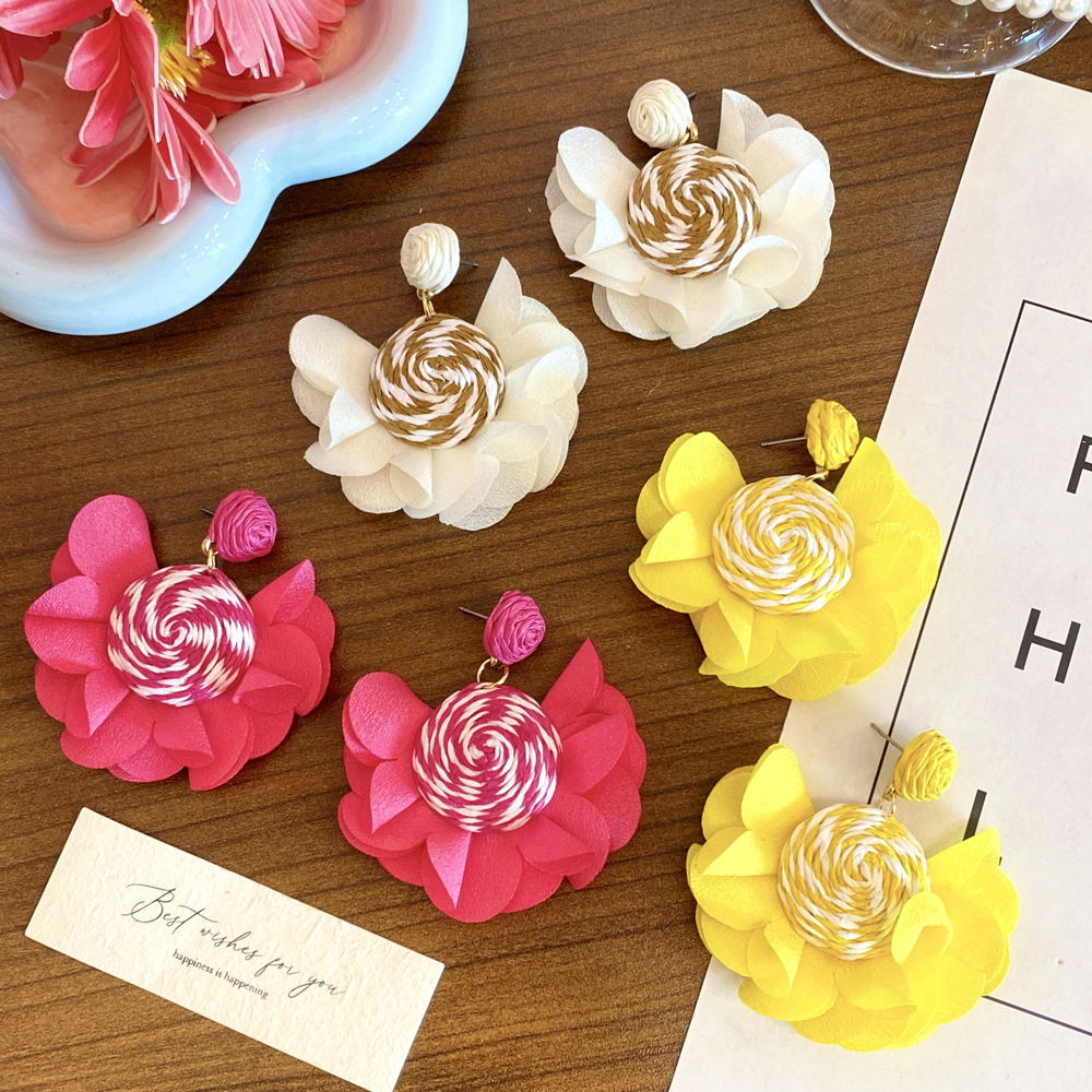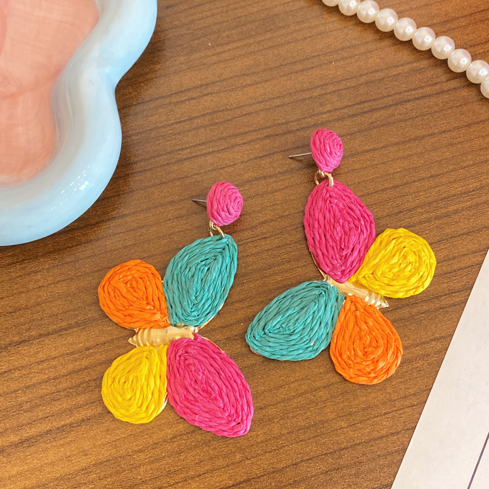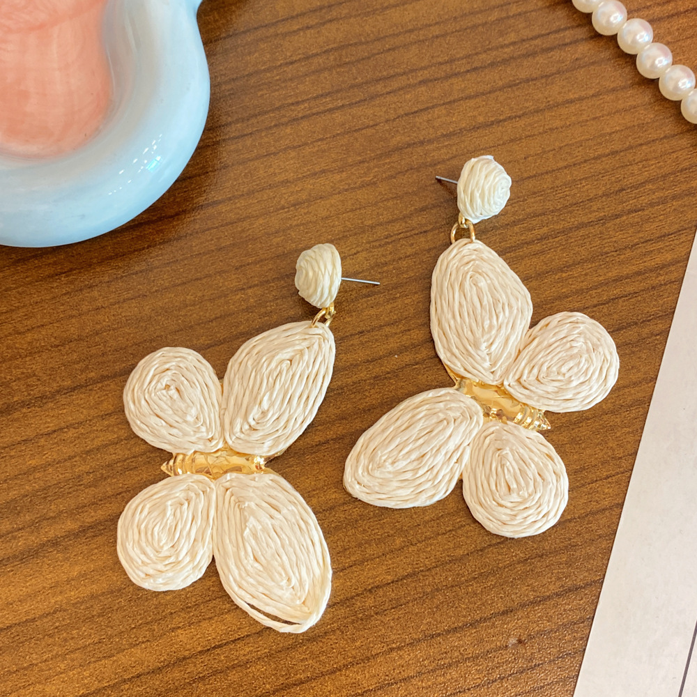 手工编织拉菲草耳钉春夏新款甜美气质耳环田园氛围感花朵耳饰批发