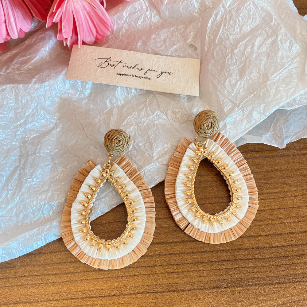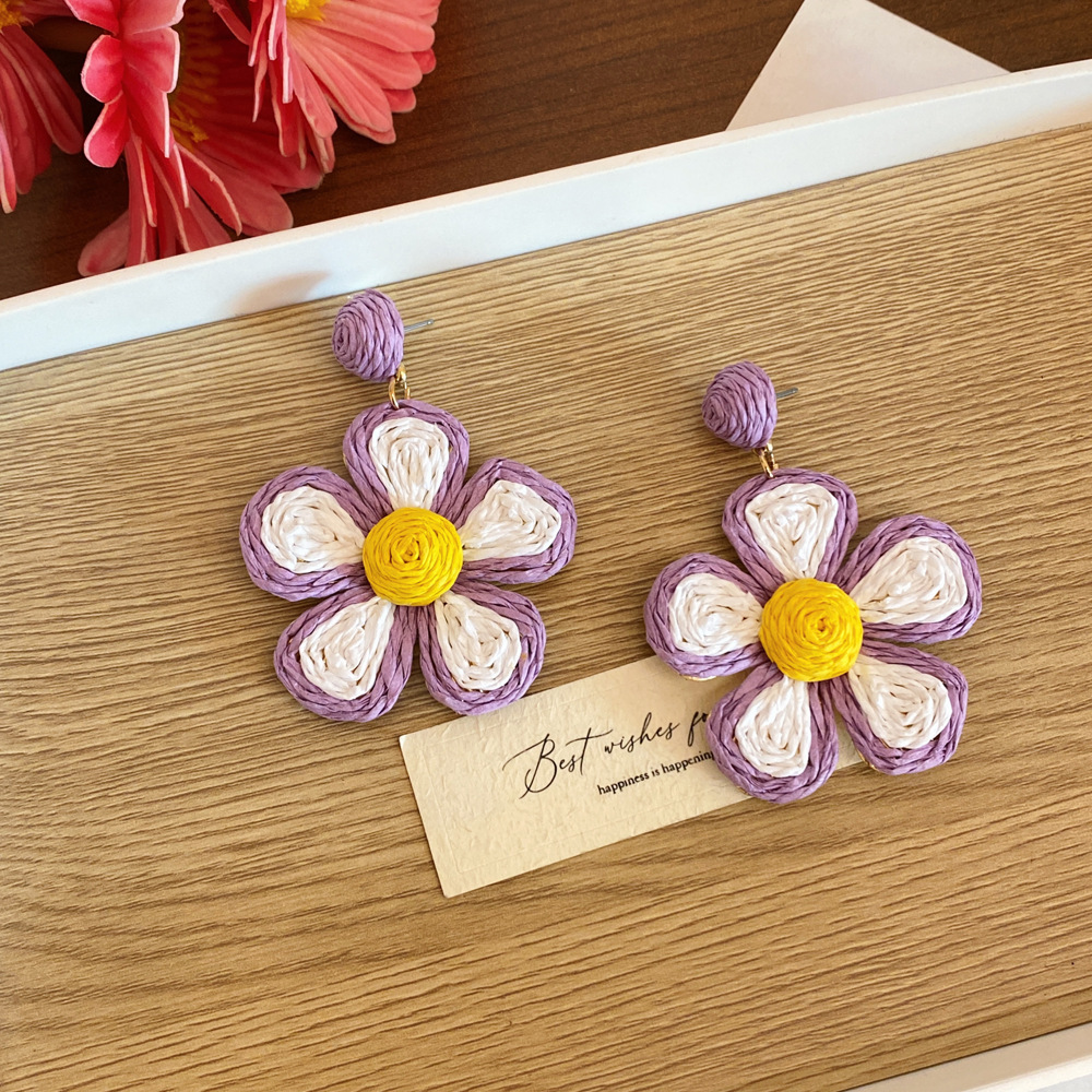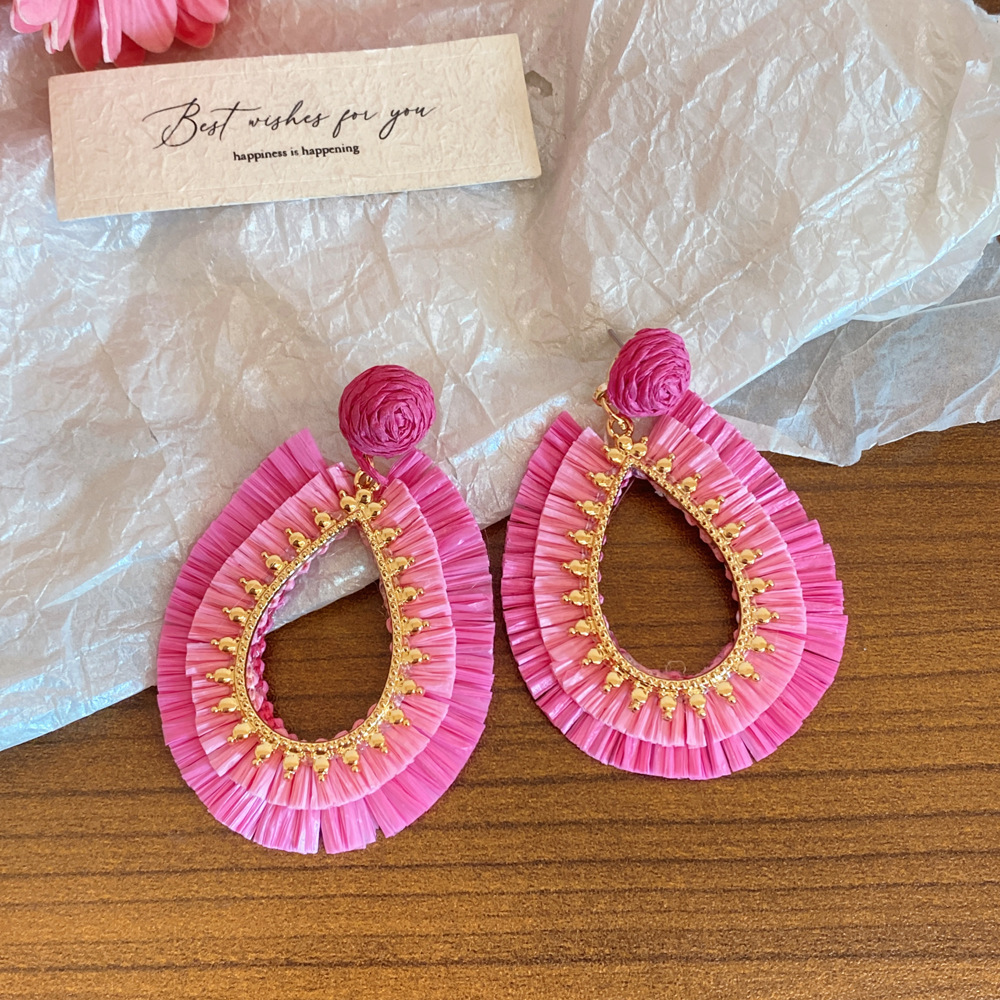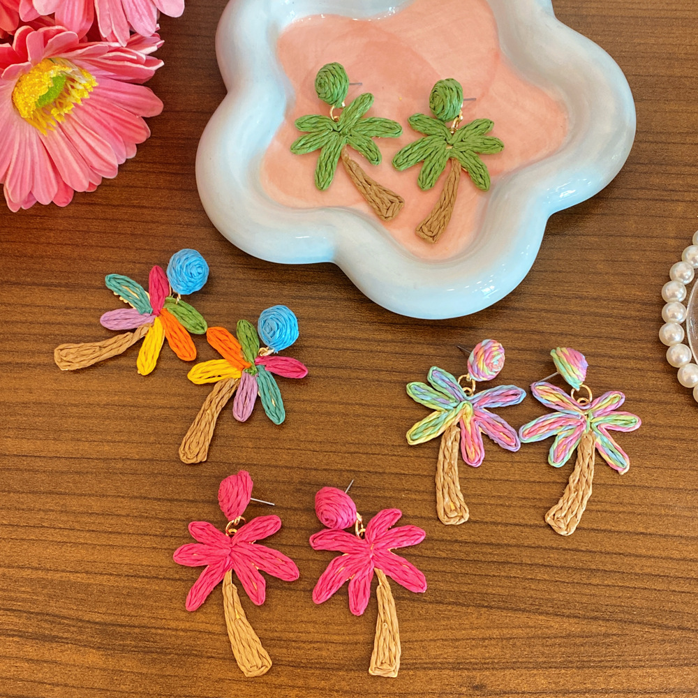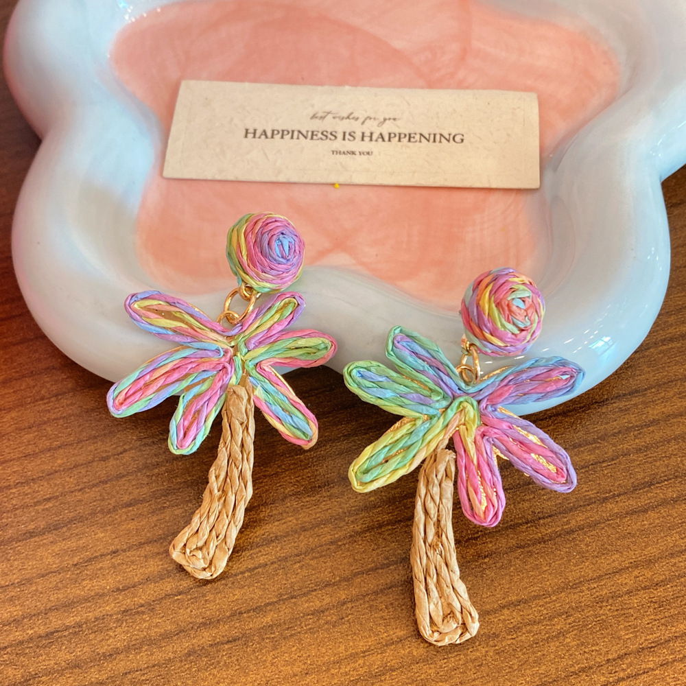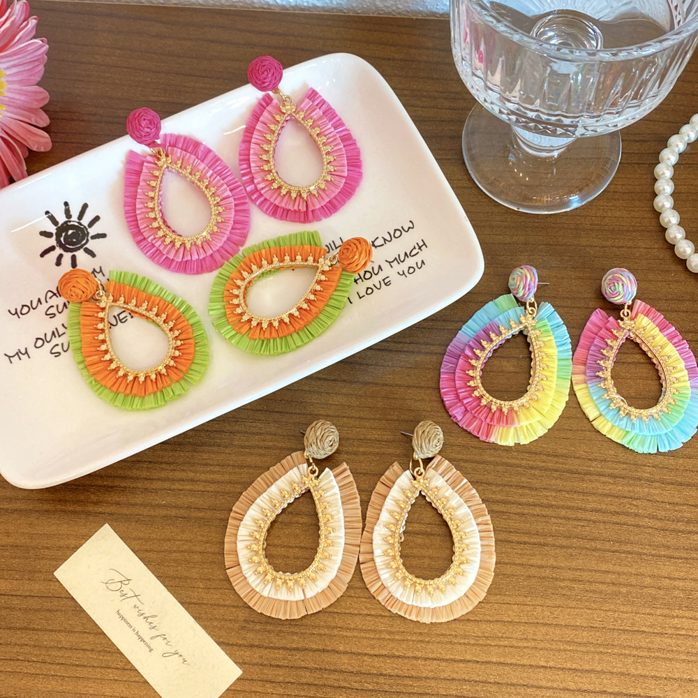 手工编织拉菲草耳钉春夏新款甜美气质耳环田园氛围感花朵耳饰批发