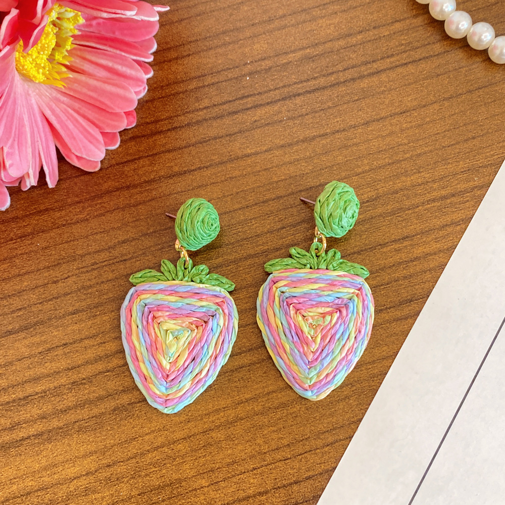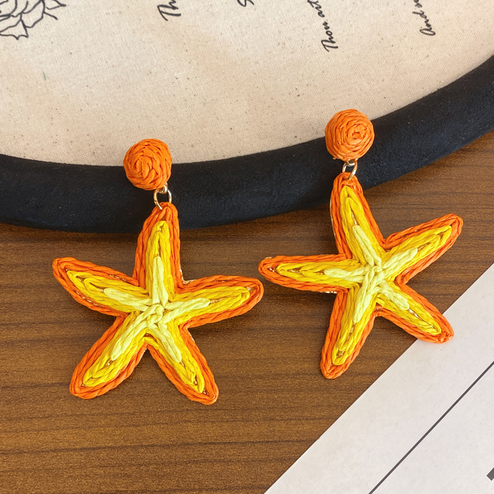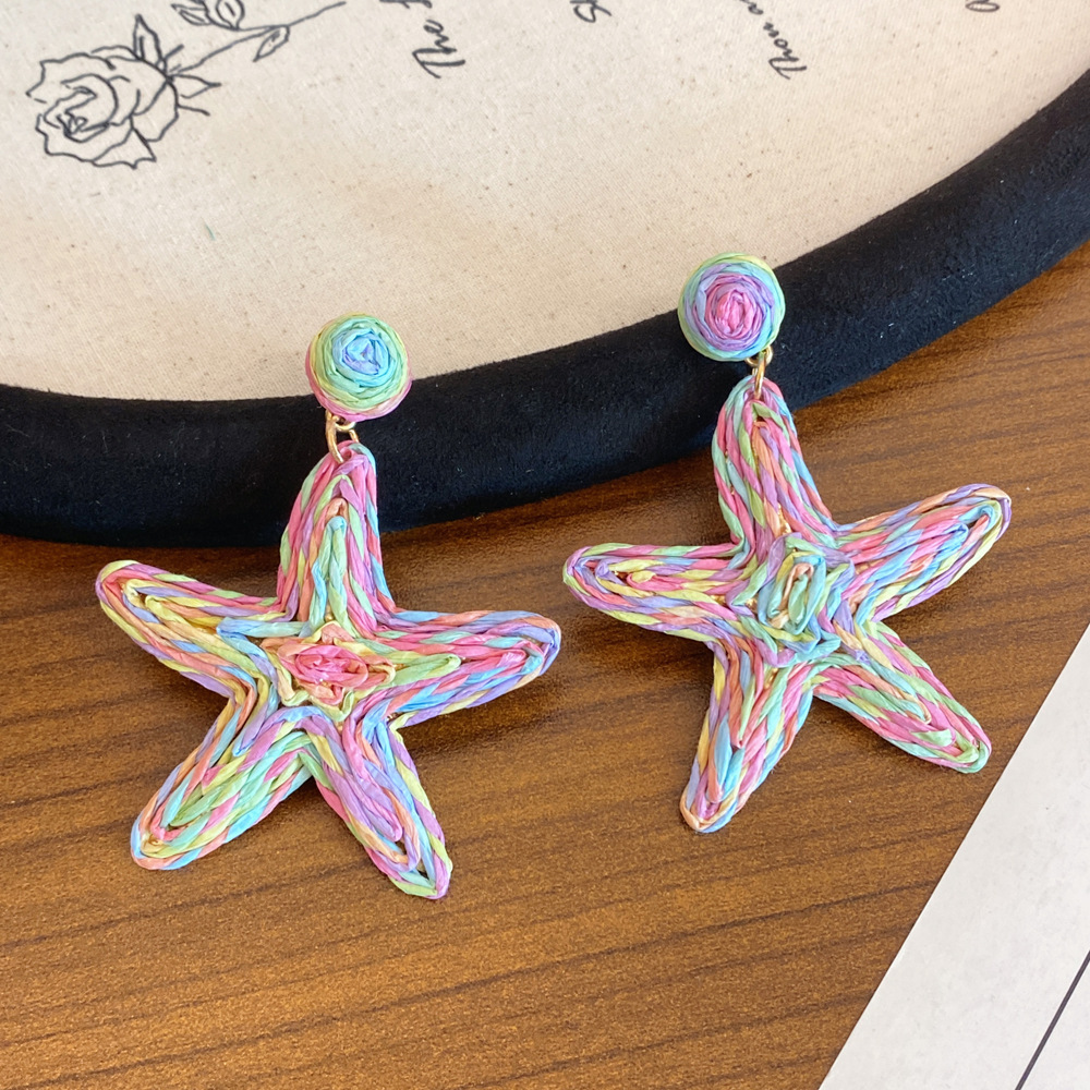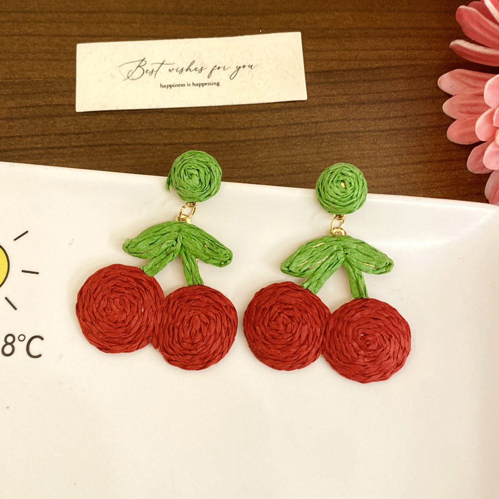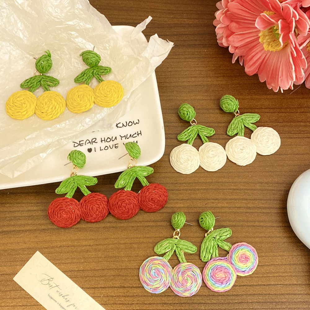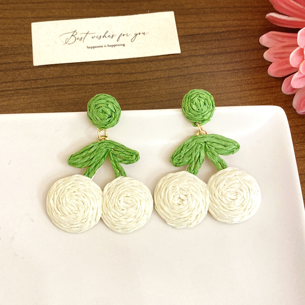 手工编织拉菲草耳钉春夏新款甜美气质耳环田园氛围感花朵耳饰批发