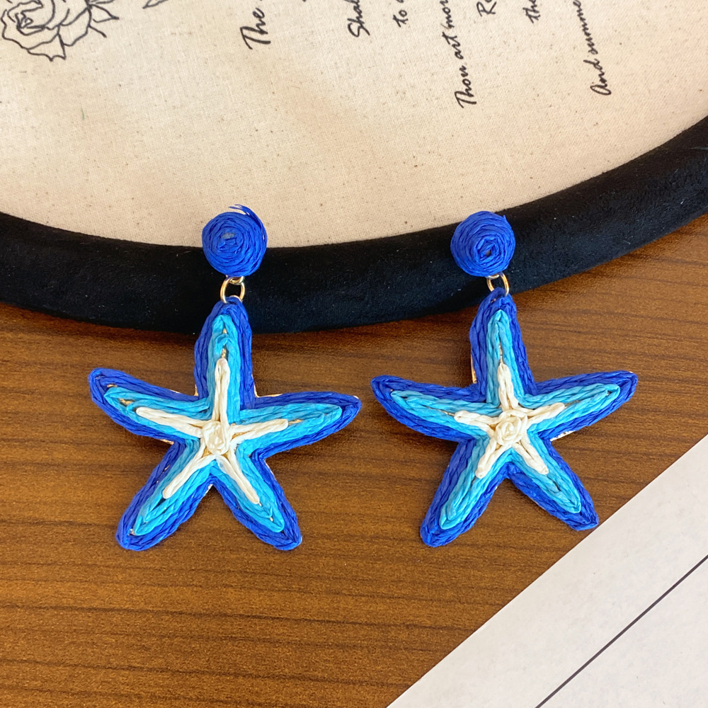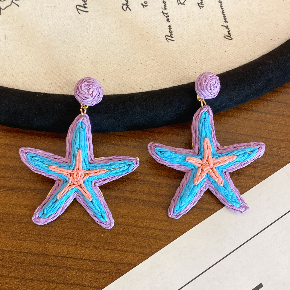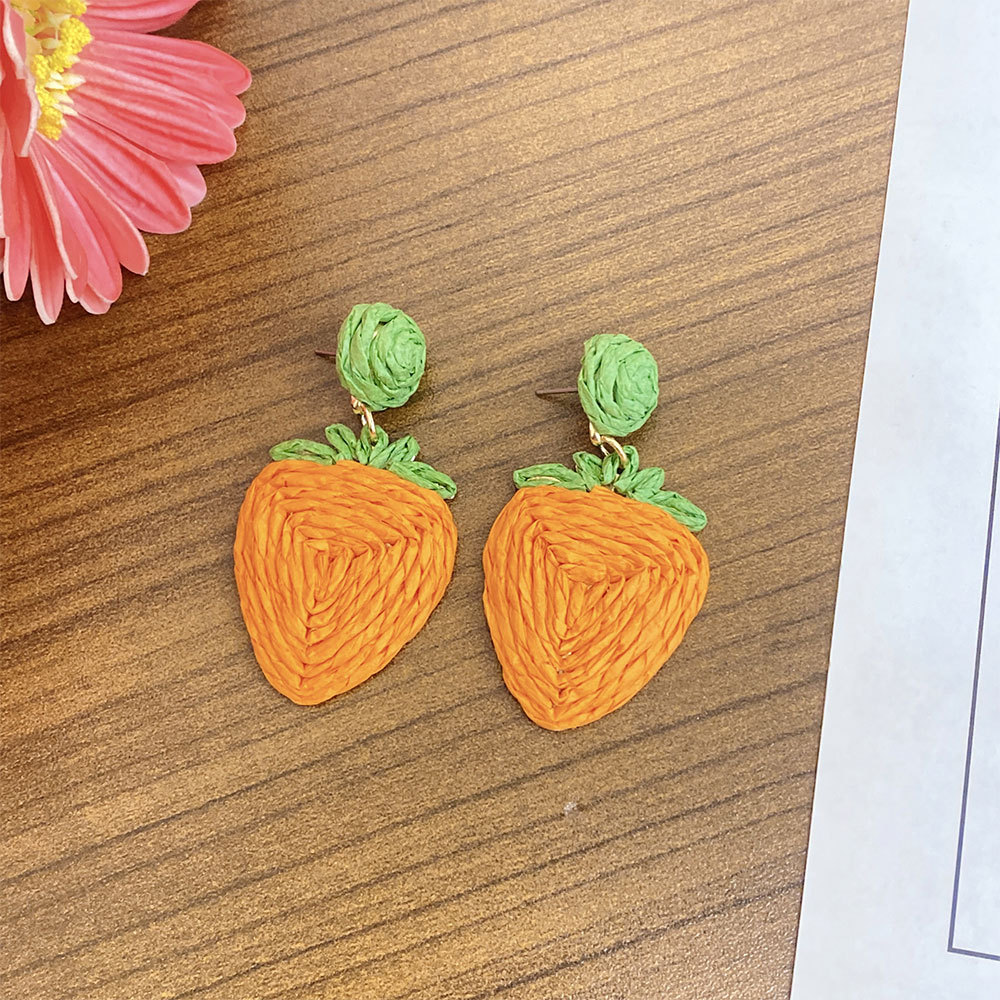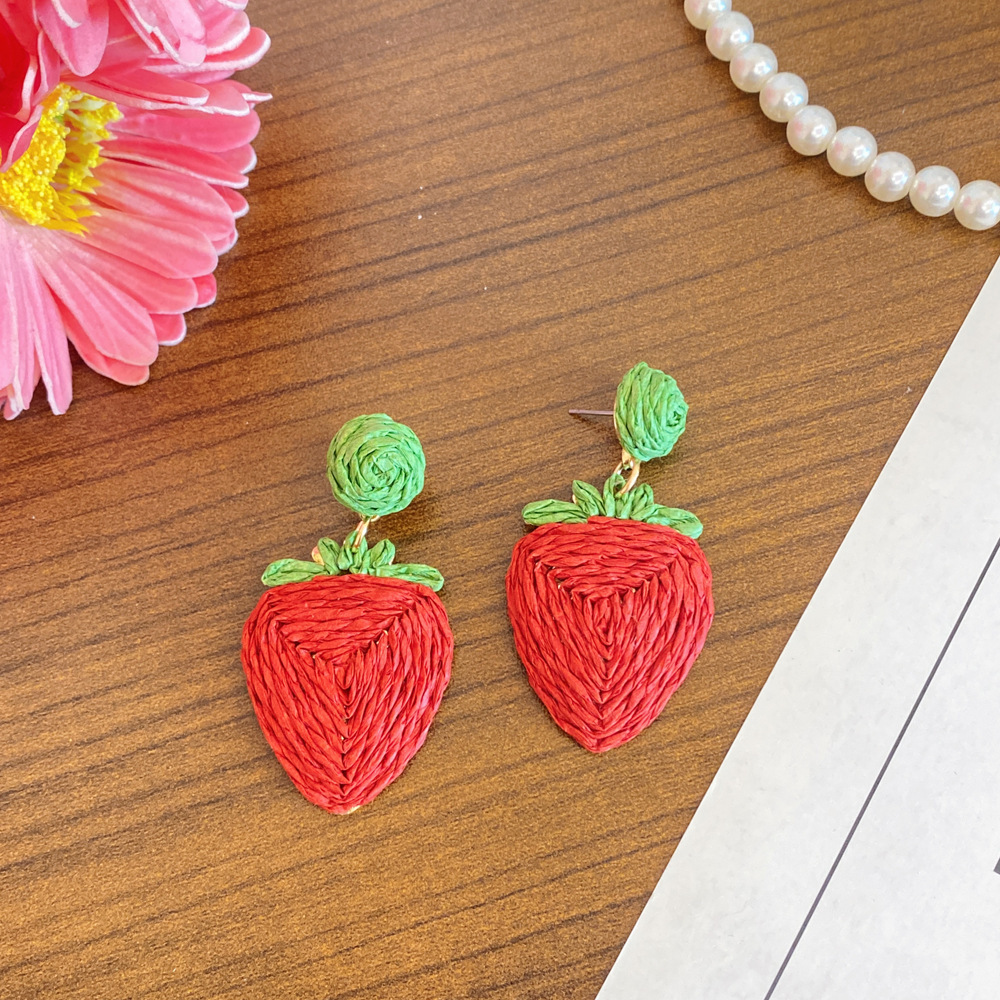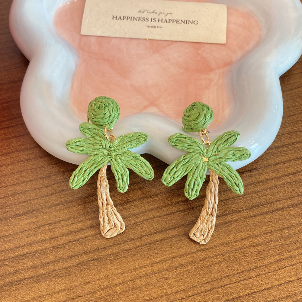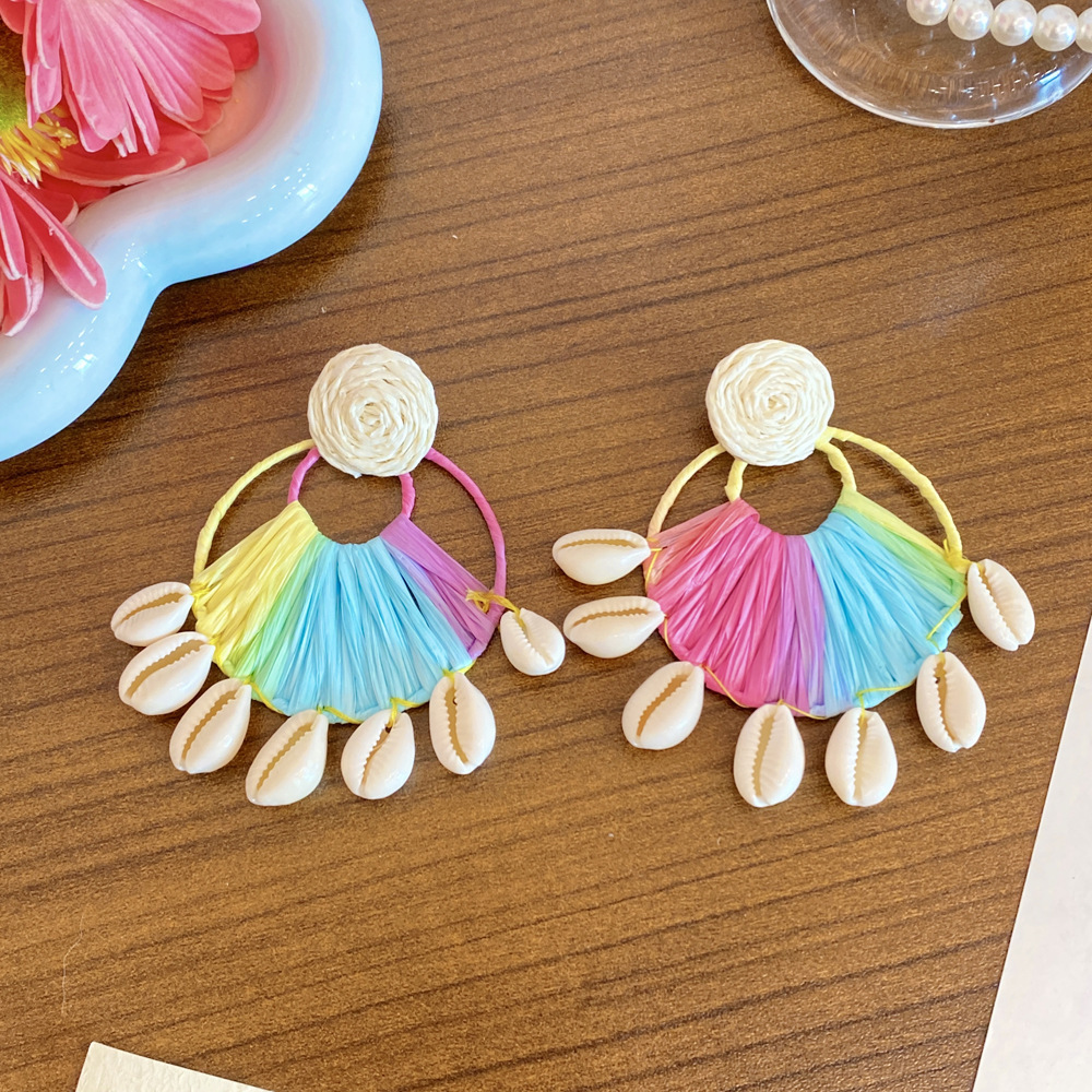 手工编织拉菲草耳钉春夏新款甜美气质耳环田园氛围感花朵耳饰批发