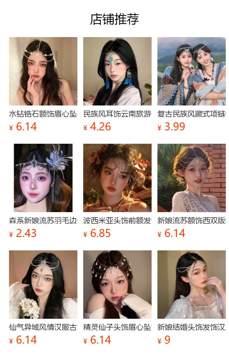 西双版纳傣族公主风头饰旅游异域风汉服古风法式女水晶眉心坠额饰