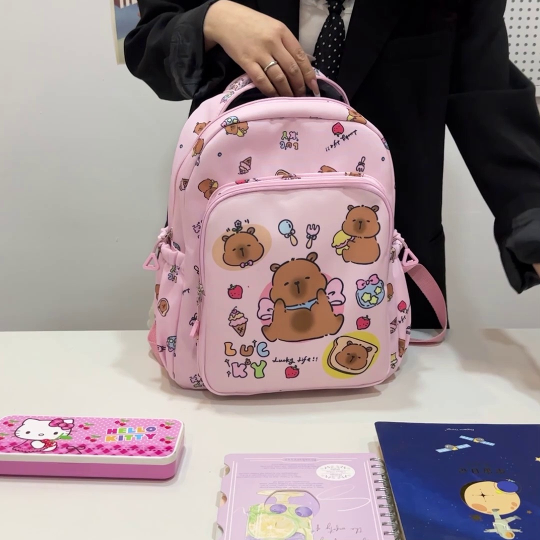 2025新款儿童背包卡通可爱小学生书包卡皮巴拉水豚双肩背包三件套