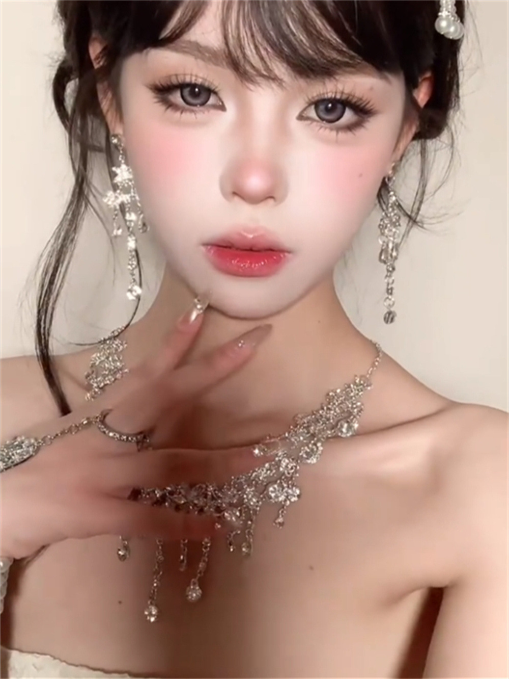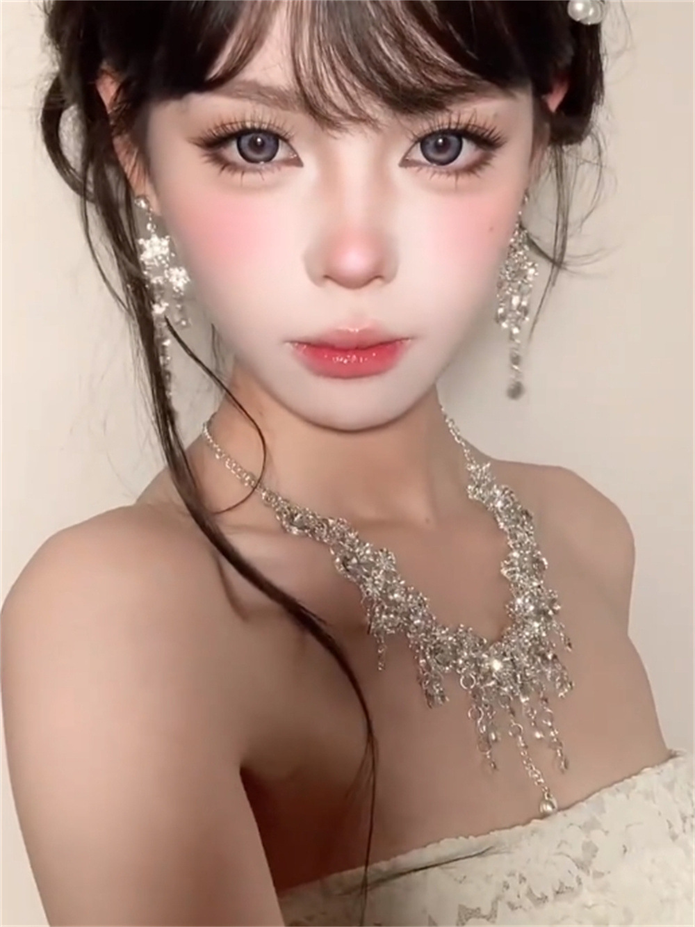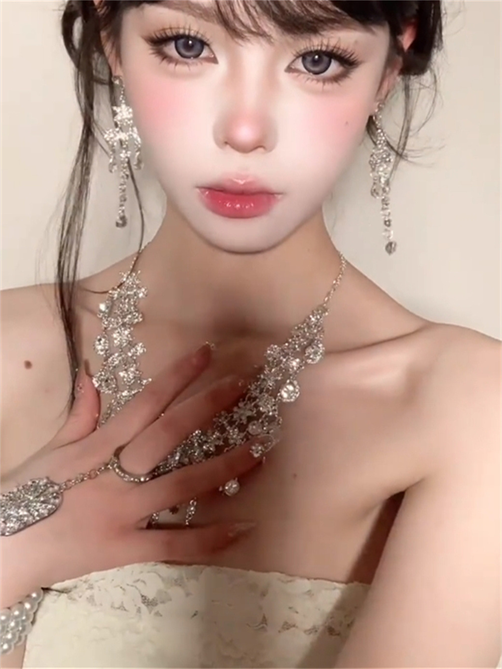 富家少女甜美项链夏天独特小众风轻奢锁骨链新娘婚纱装饰夸张配饰