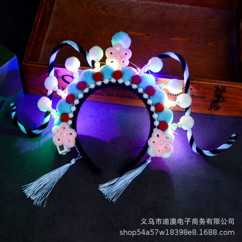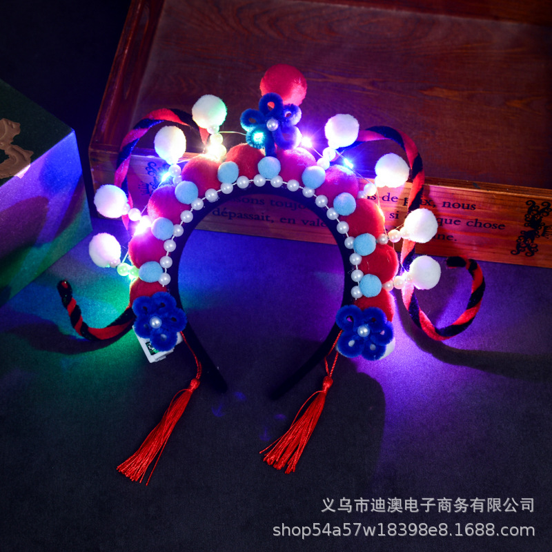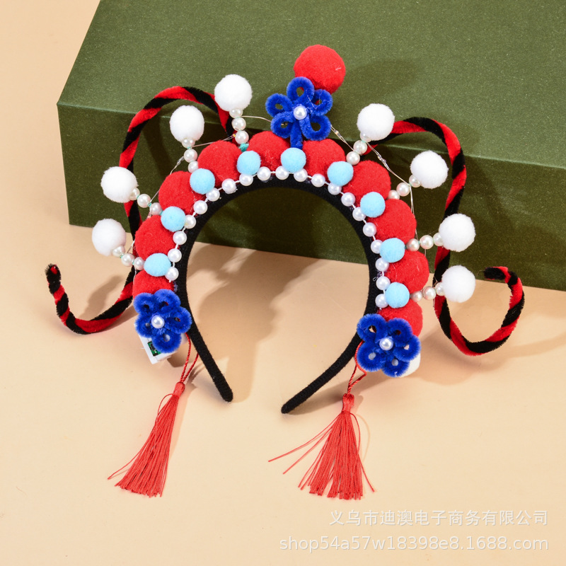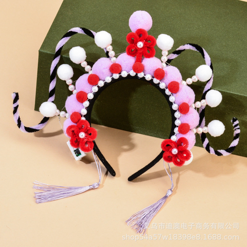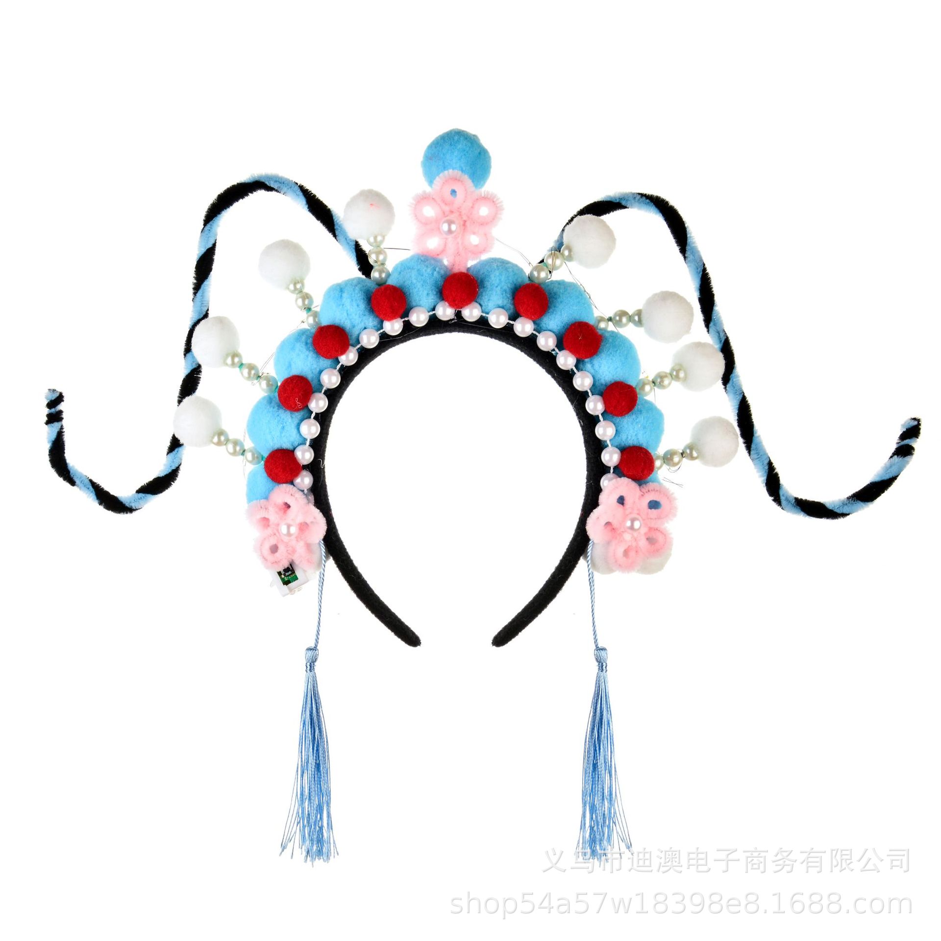 新款京剧发箍儿童发光玩具头饰成品景区戏曲毛绒球扭扭棒发饰批发
