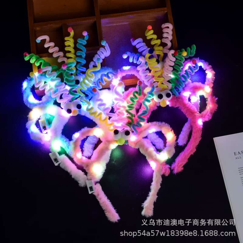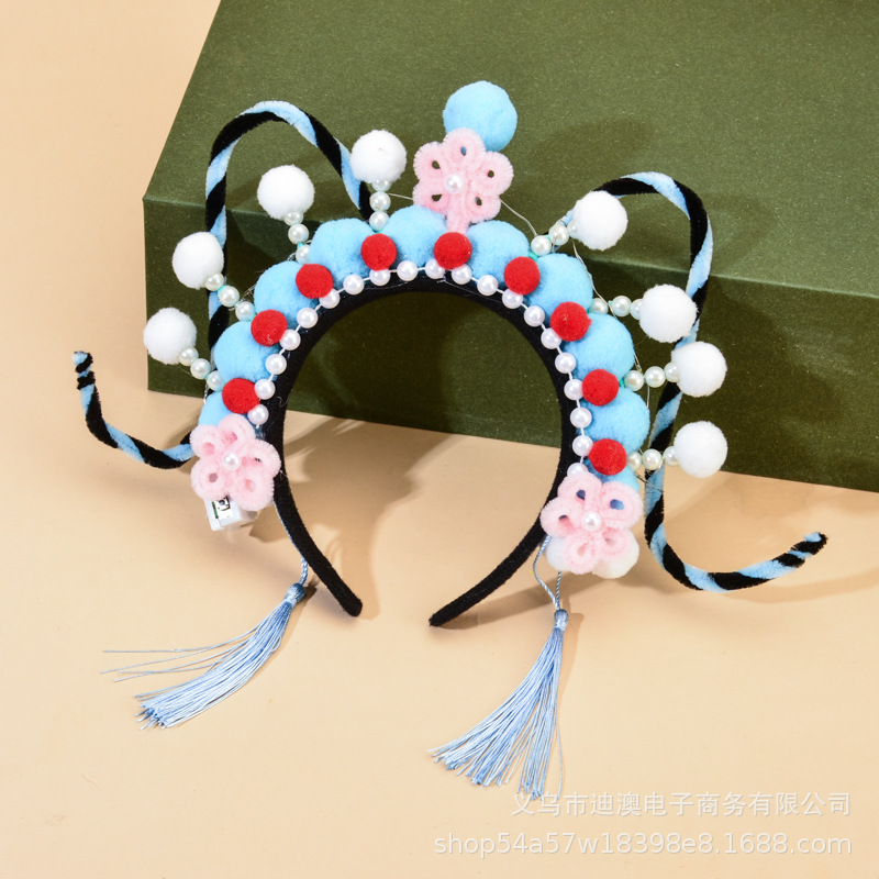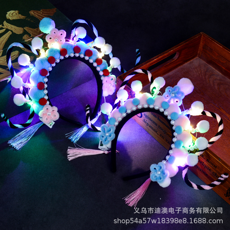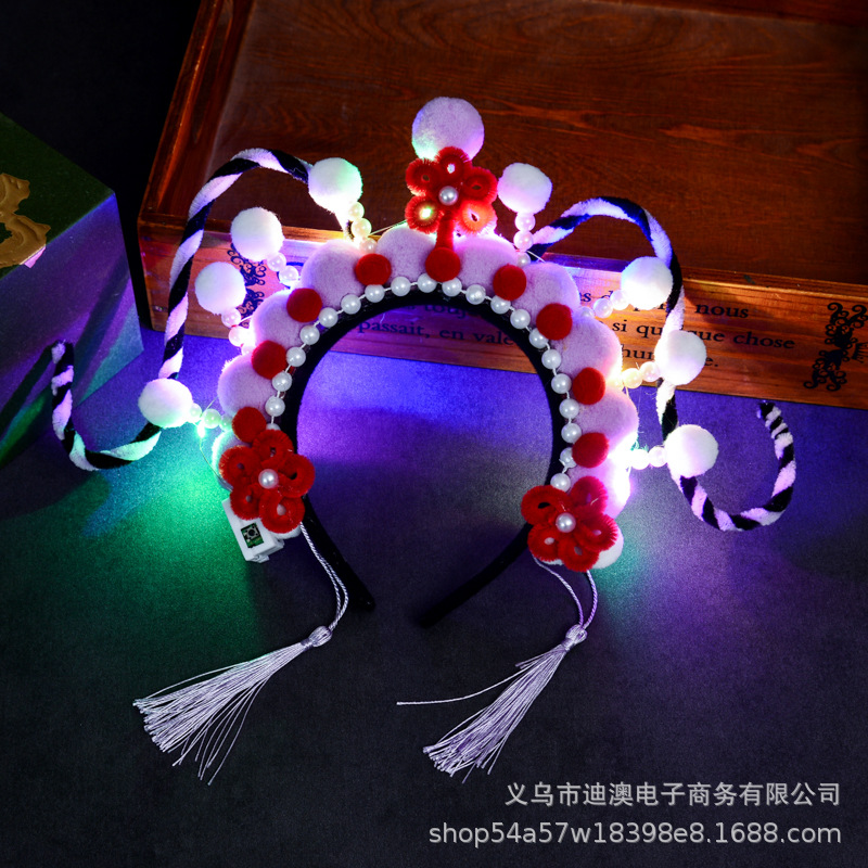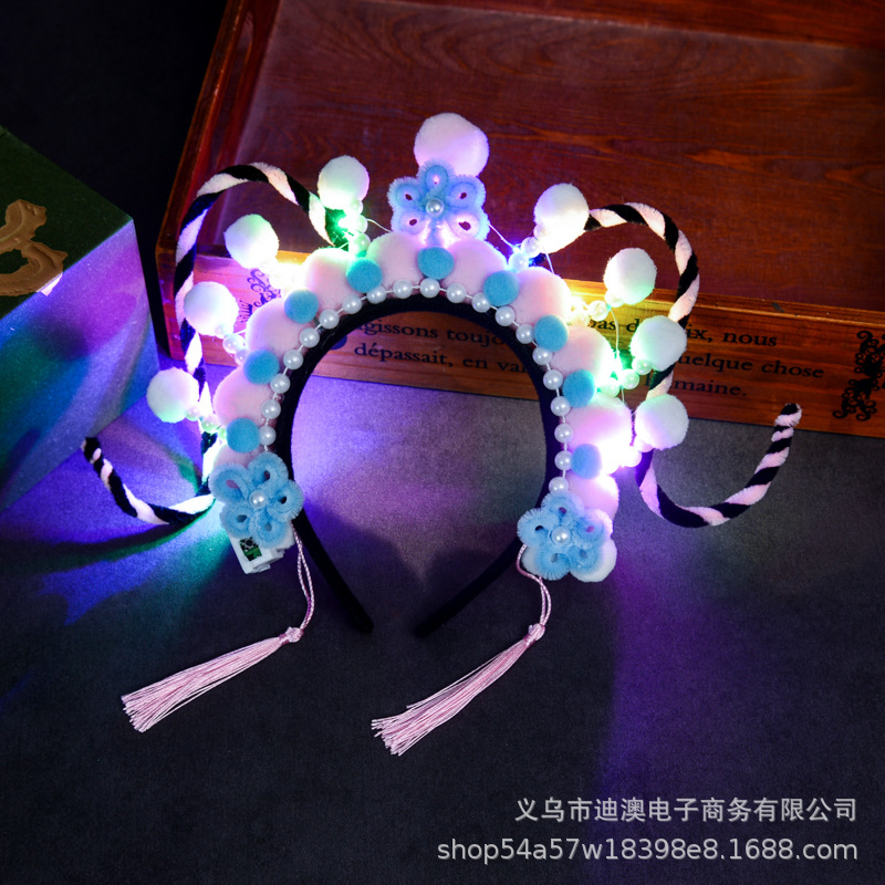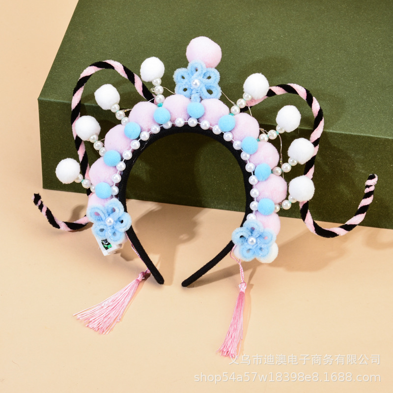 新款京剧发箍儿童发光玩具头饰成品景区戏曲毛绒球扭扭棒发饰批发