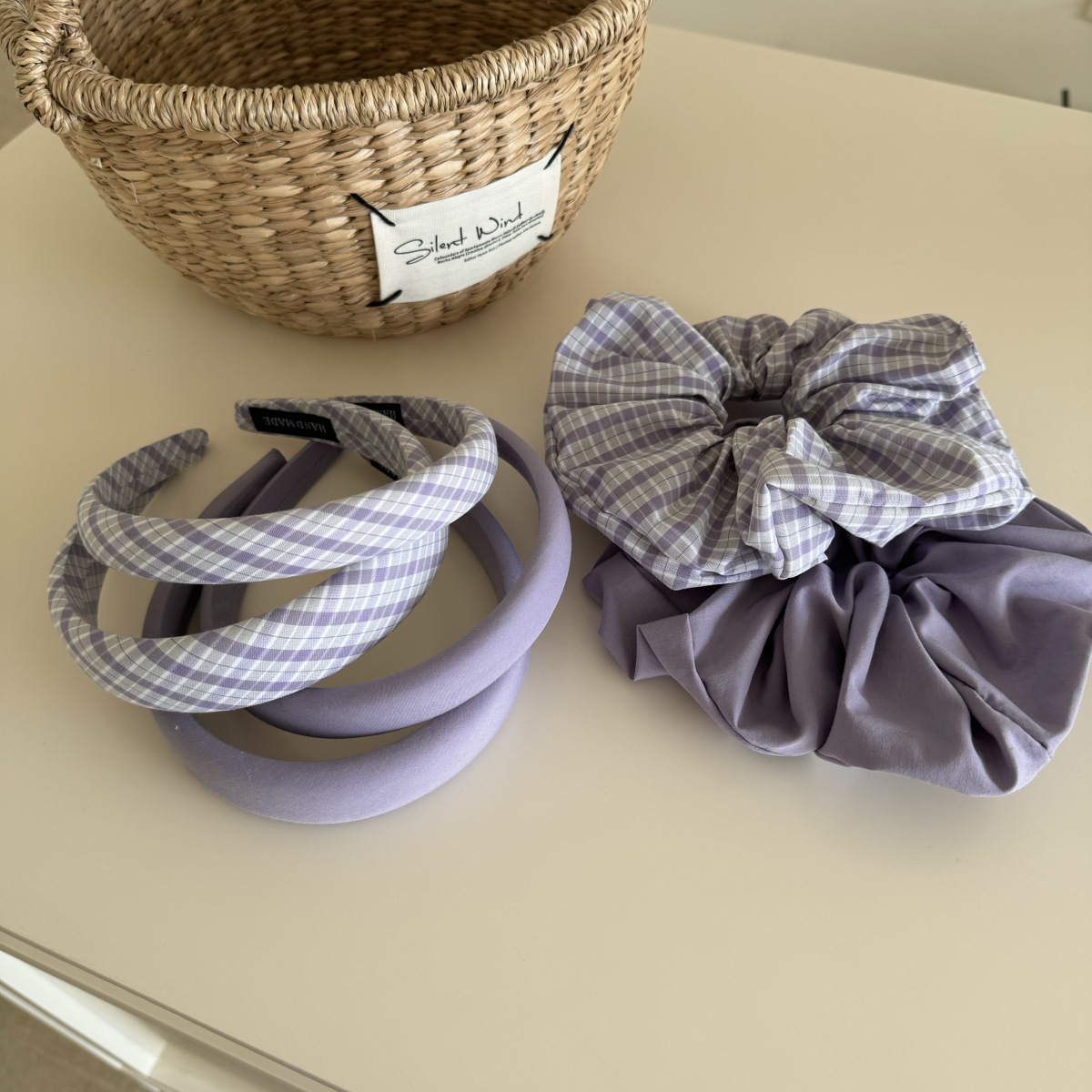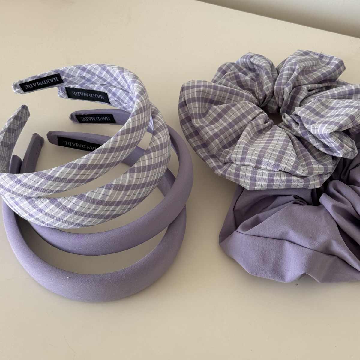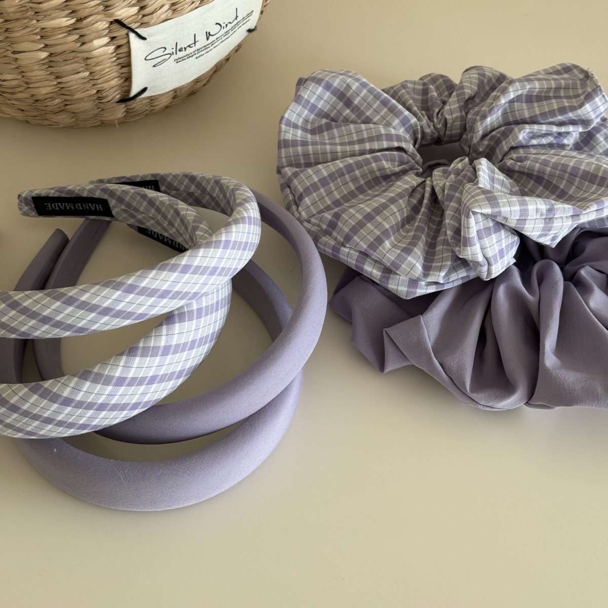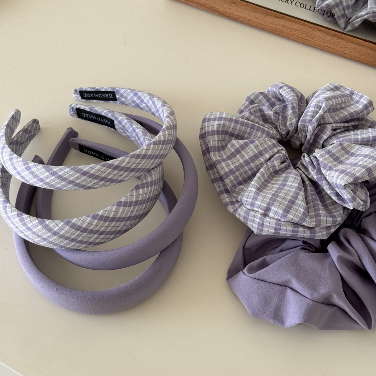 韵味紫色系纯色格纹发箍梦幻温柔高颅顶百搭日常头箍发卡发饰新款