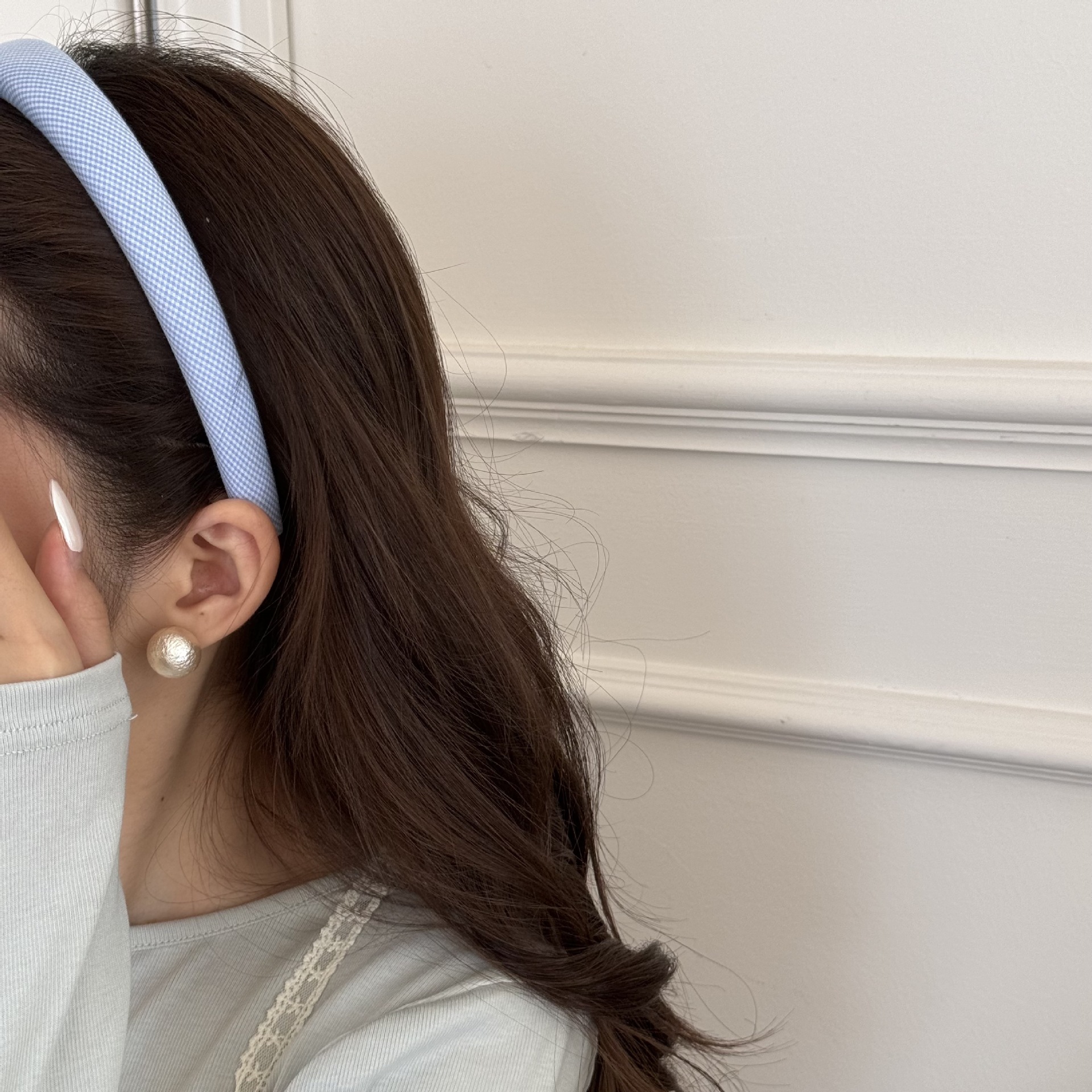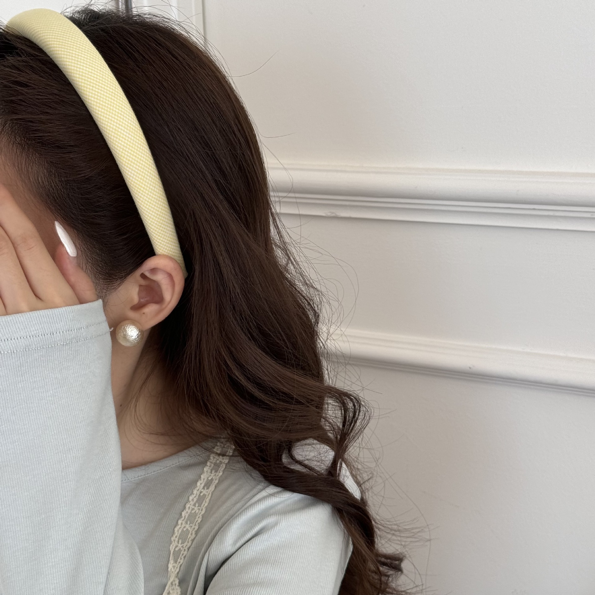 奶油色格纹海绵发箍复古少女发卡甜美百搭洗脸头箍日韩风头饰发饰