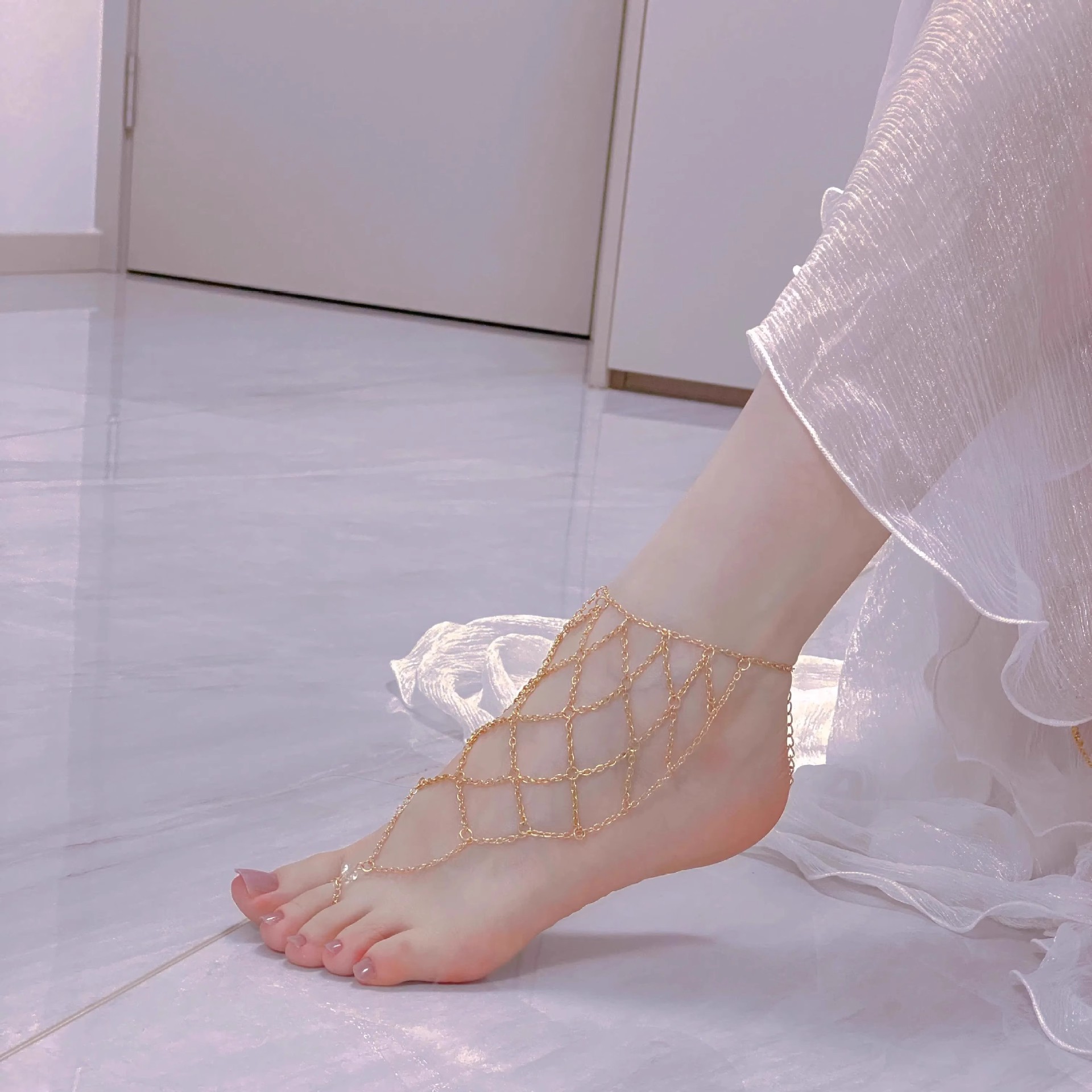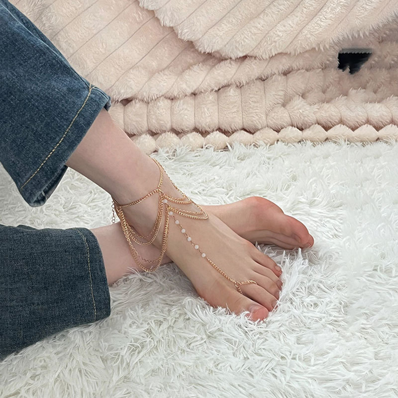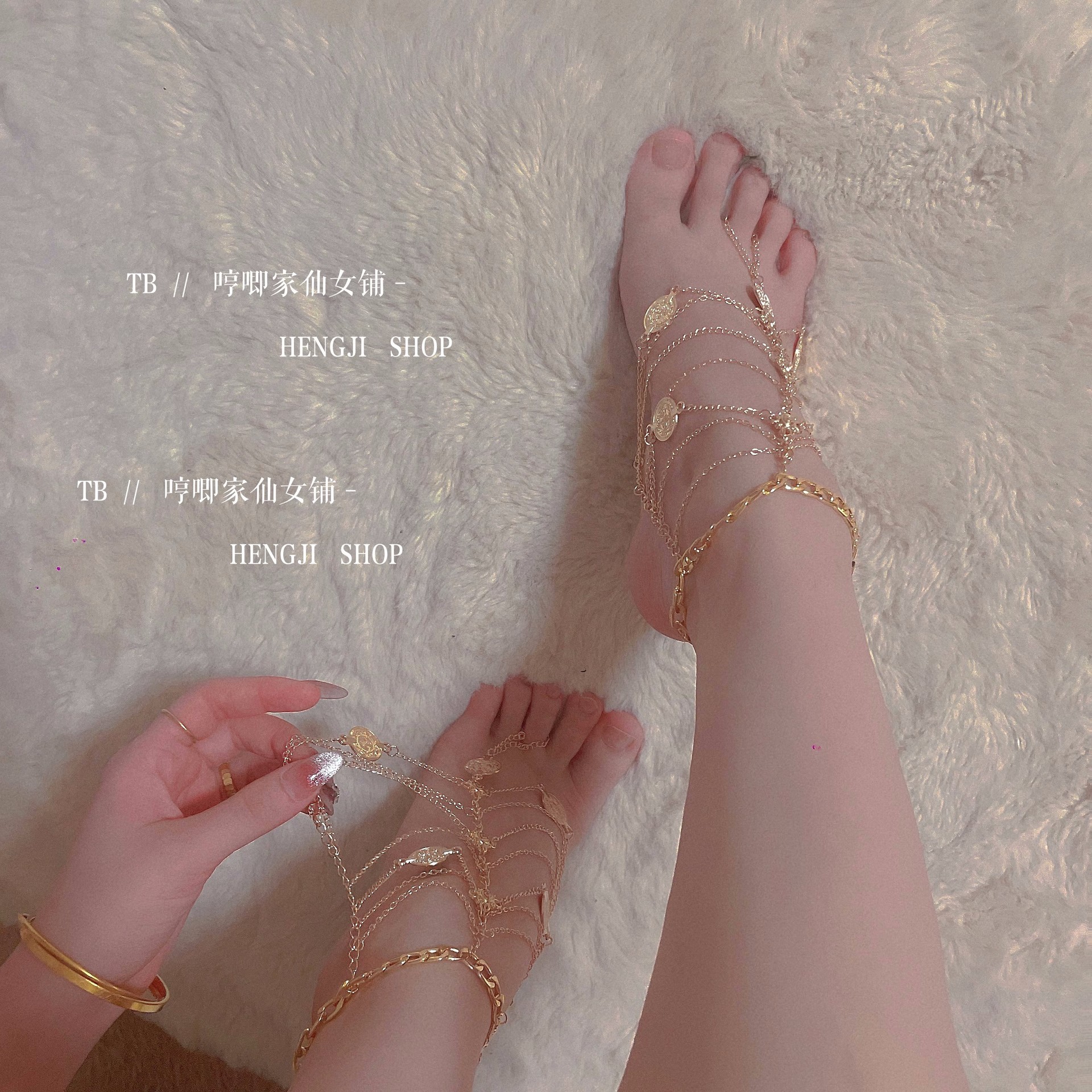 异域风情复古异域多层流苏脚链女金属链条脚背链cos宫廷风批发女