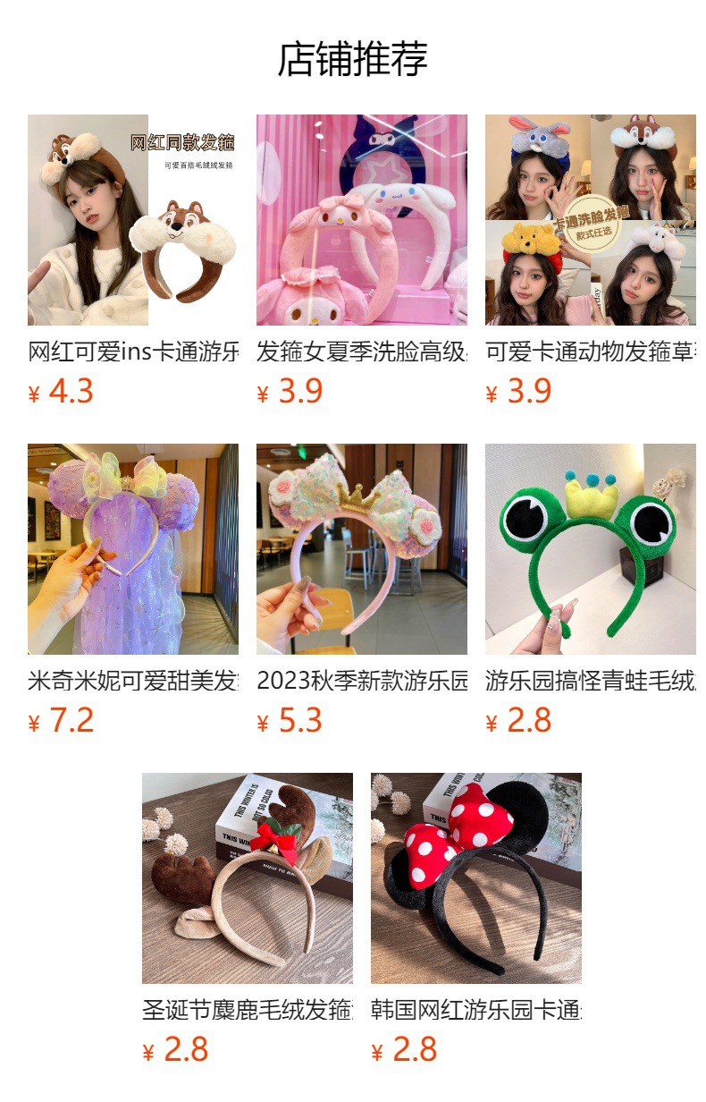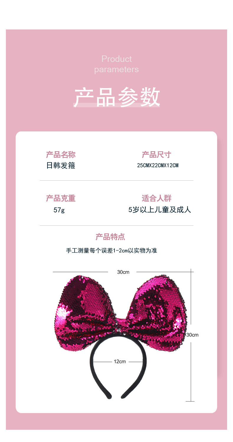 厂家直销亮片游乐园发箍可爱高颅顶防滑洗脸蝴蝶结头箍发饰头饰女