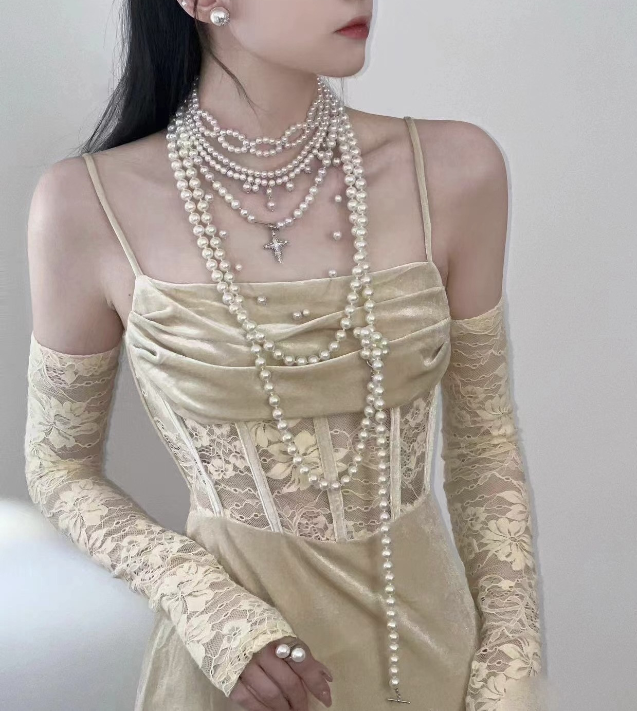 赫本风复古多条重工chocker轻奢小众珍珠甜酷风叠戴多层项链颈链