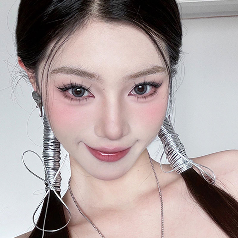 甜酷银色编发头绳y2k芭蕾风皮质双马尾绑带发绳韩系辣妹发带发饰