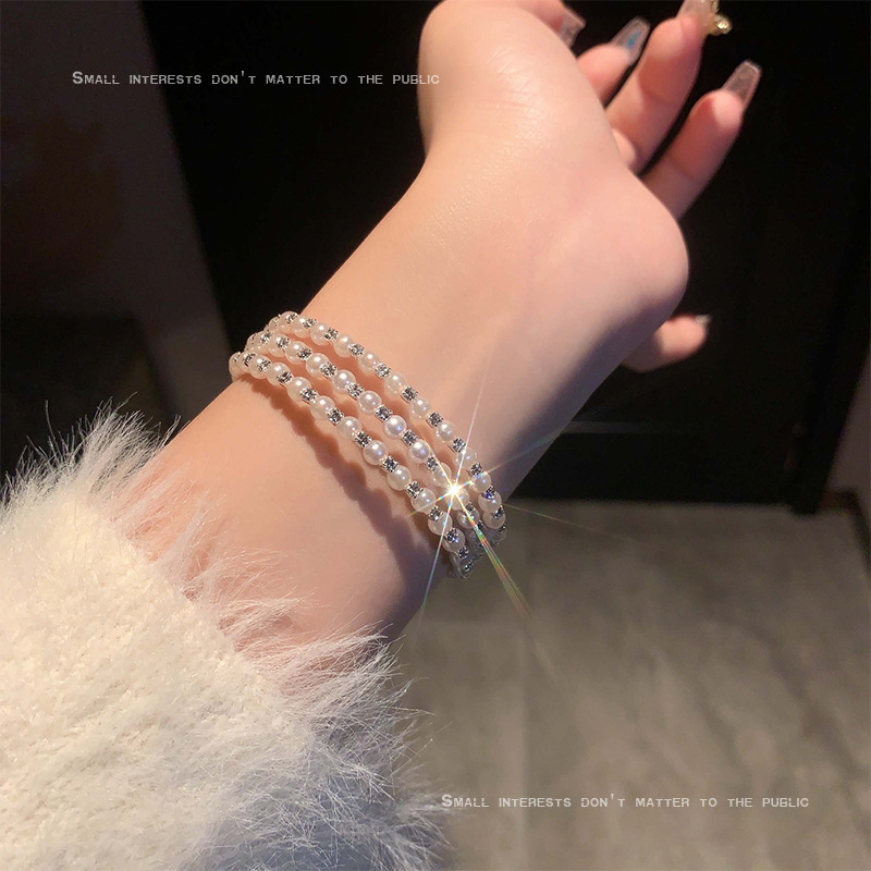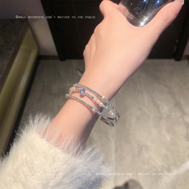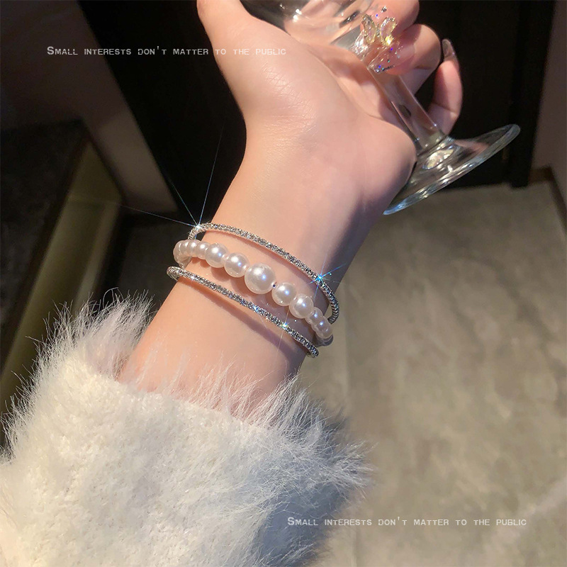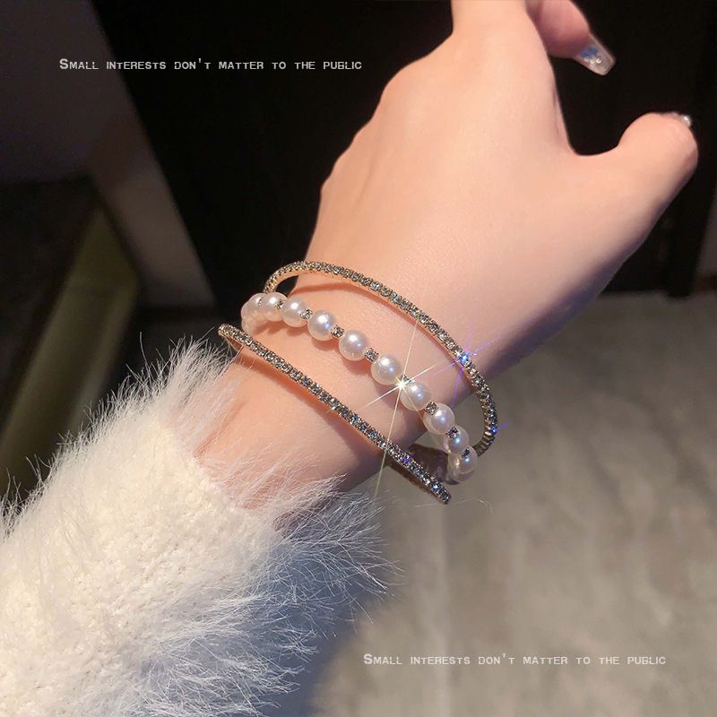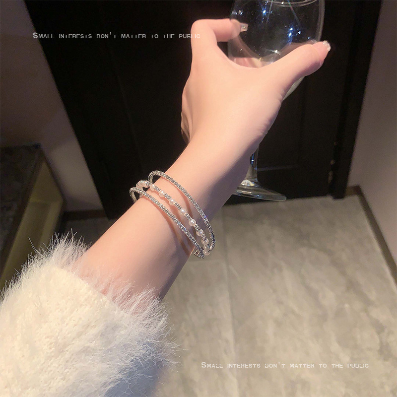 珍珠锆石手镯小众设计水钻叠戴手环冷淡风时尚百搭气质高级感手饰