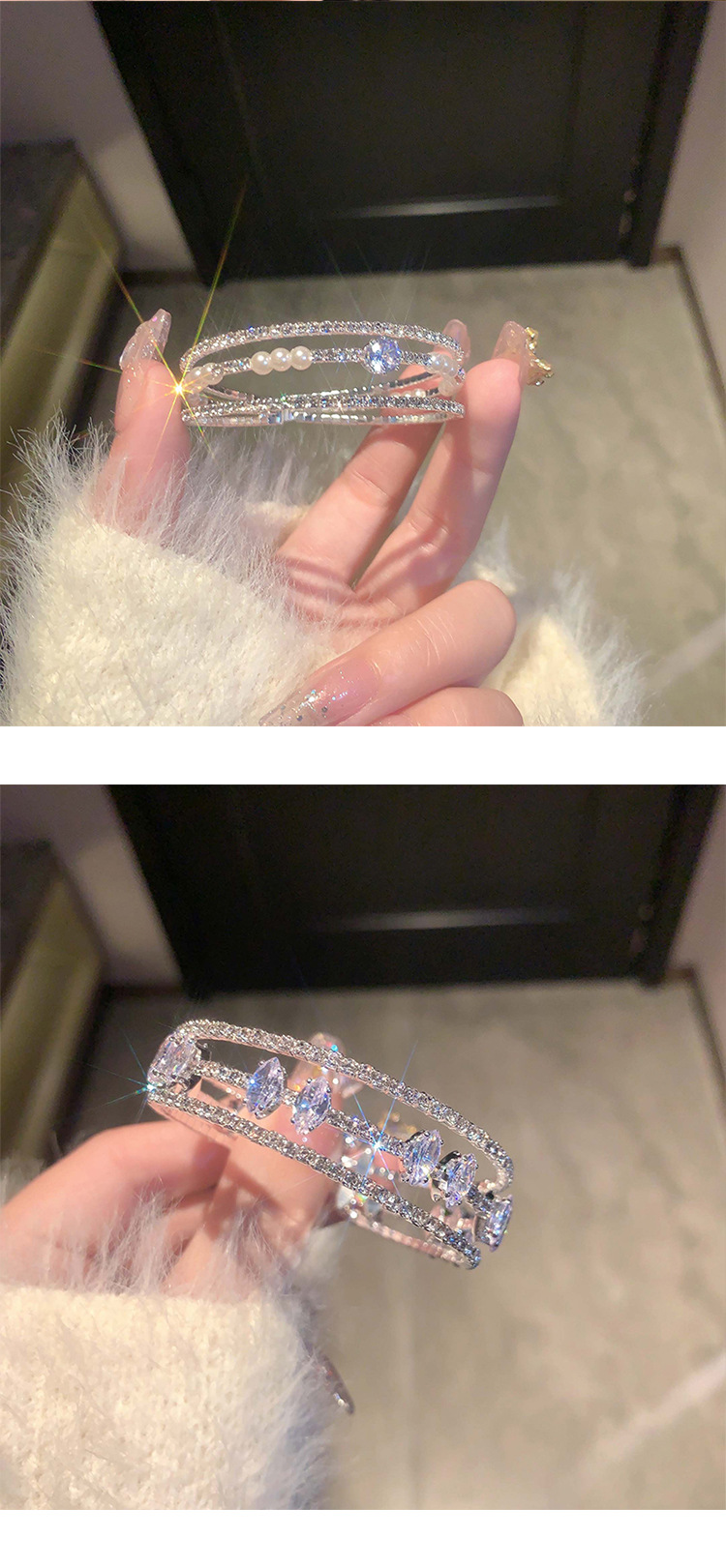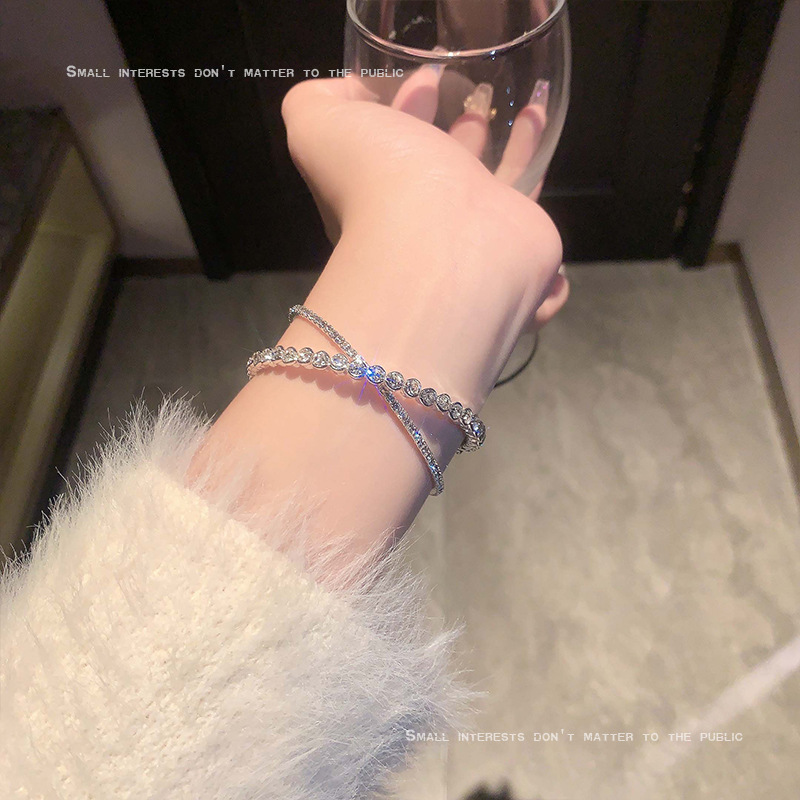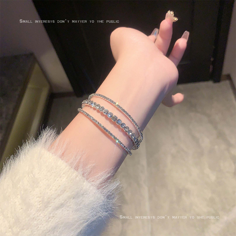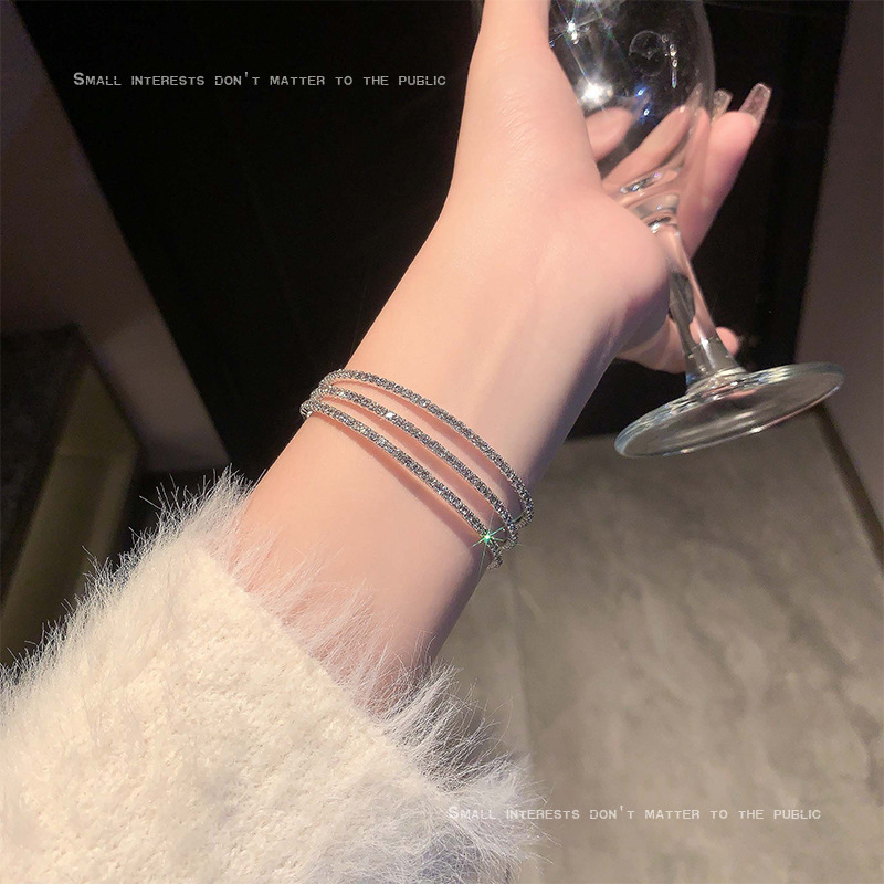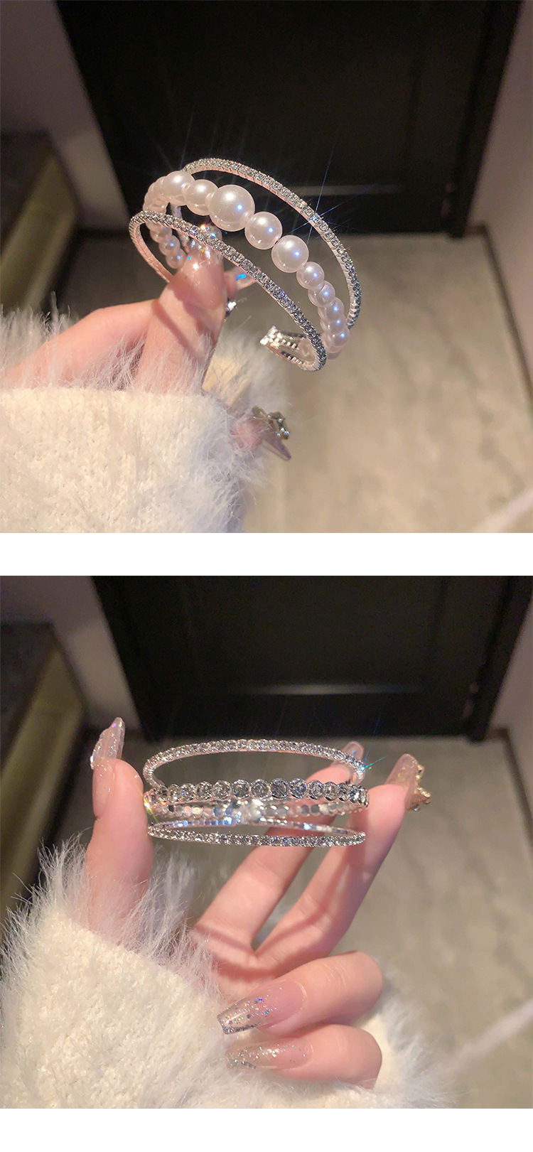 珍珠锆石手镯小众设计水钻叠戴手环冷淡风时尚百搭气质高级感手饰