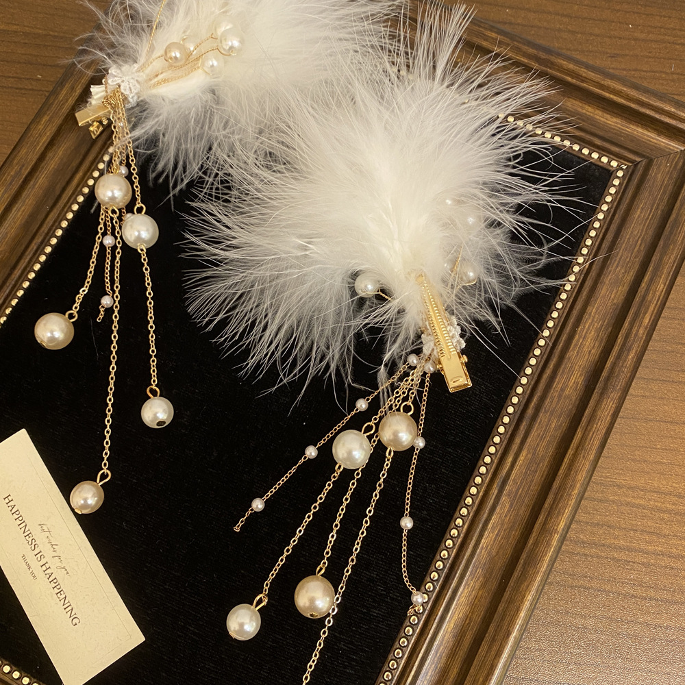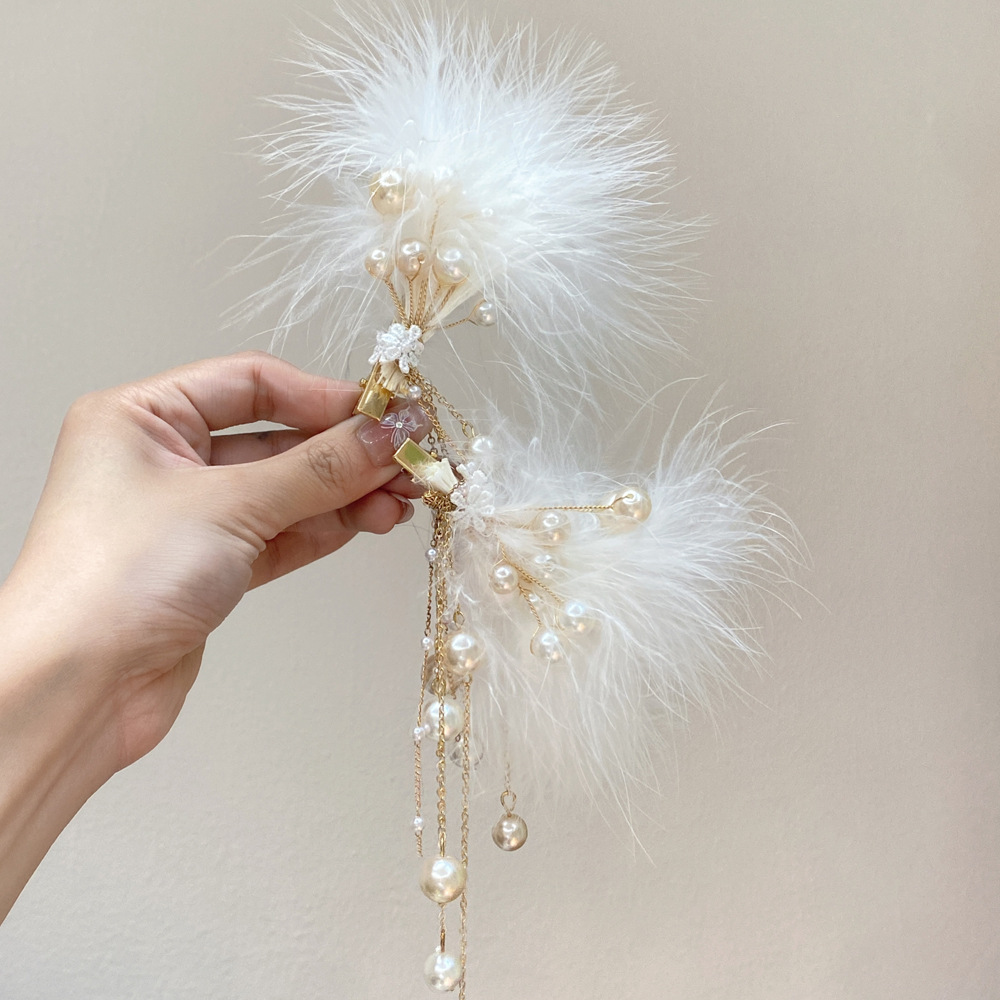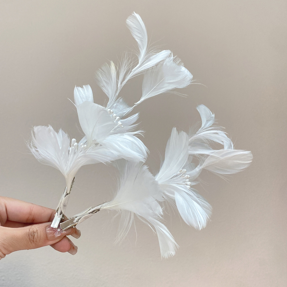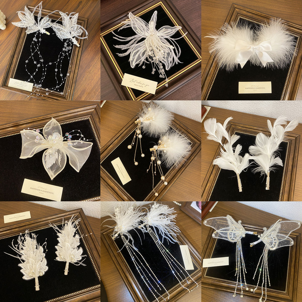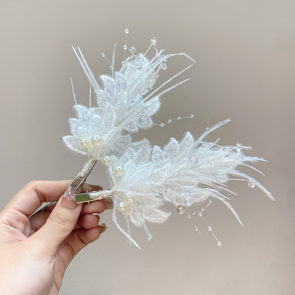超仙羽毛闪钻水晶流苏发夹女高级感演出拍照发饰新娘服饰摄影发夹