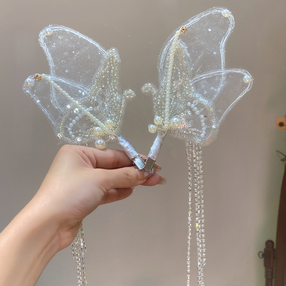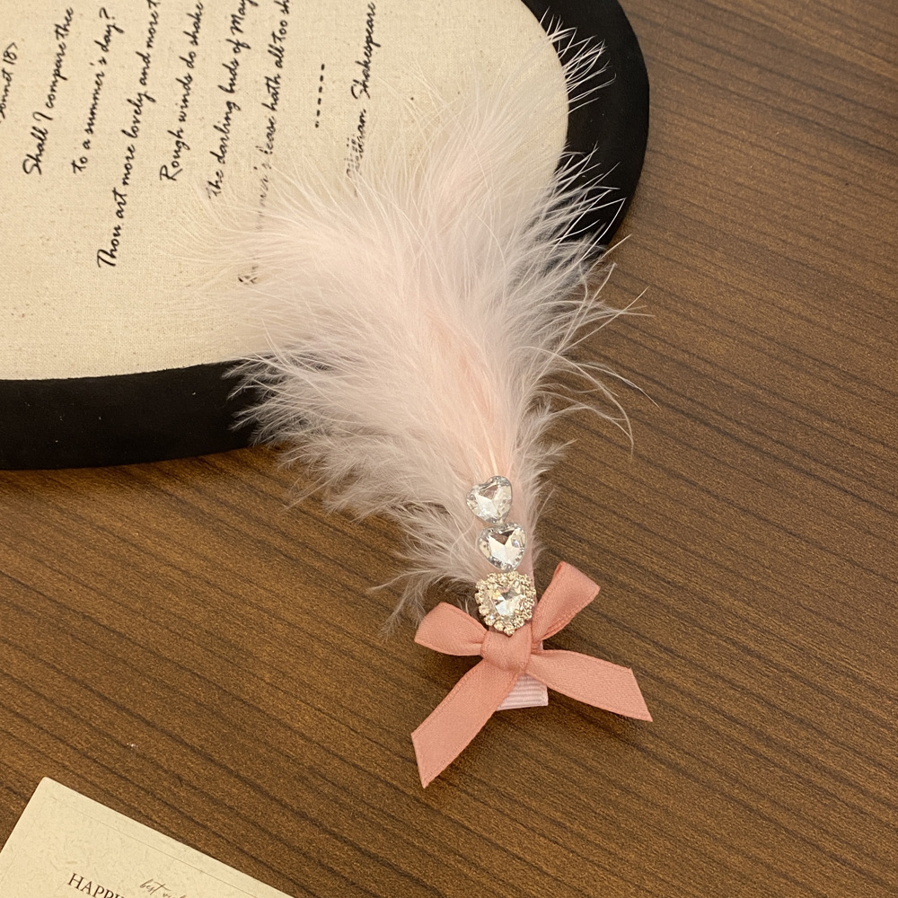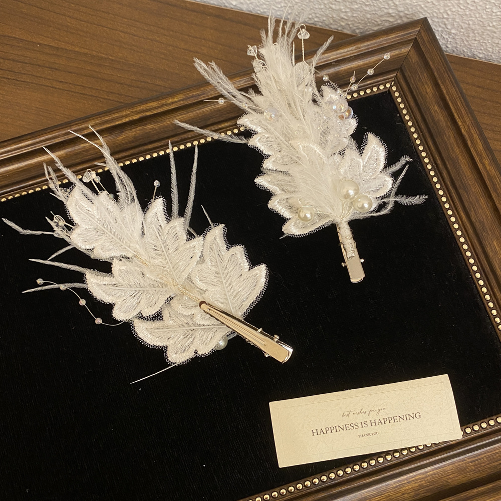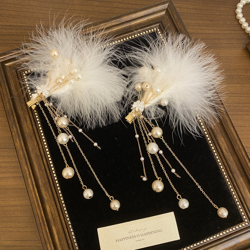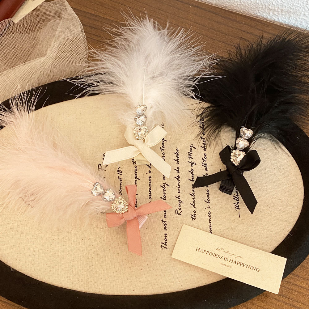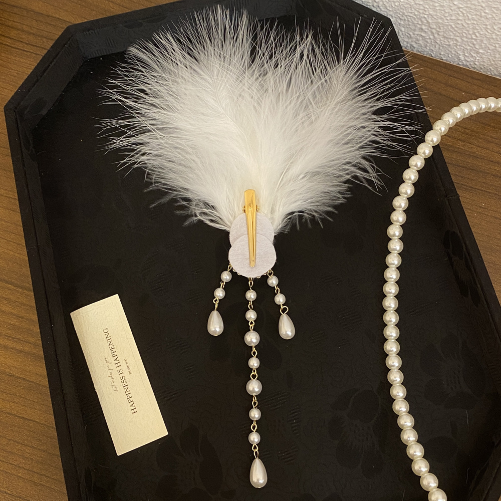 超仙羽毛闪钻水晶流苏发夹女高级感演出拍照发饰新娘服饰摄影发夹