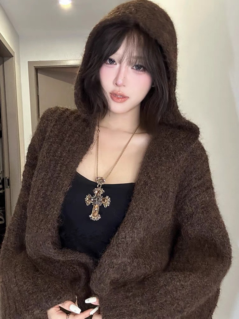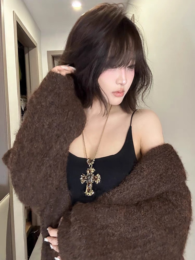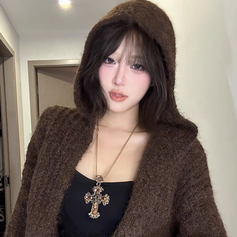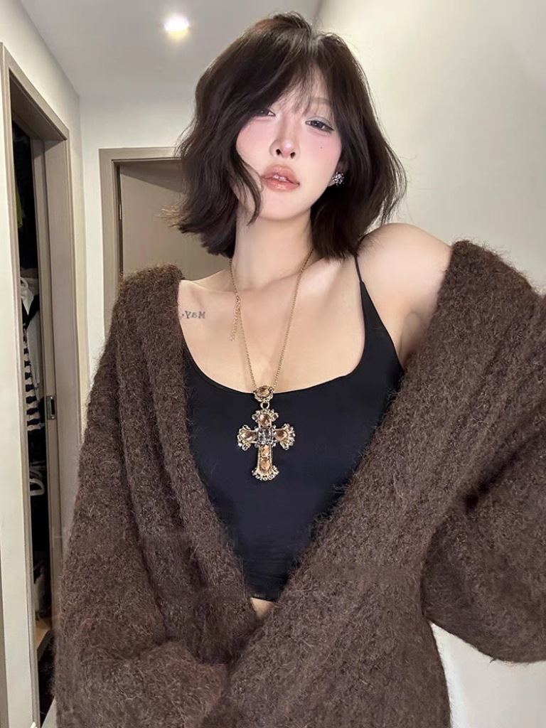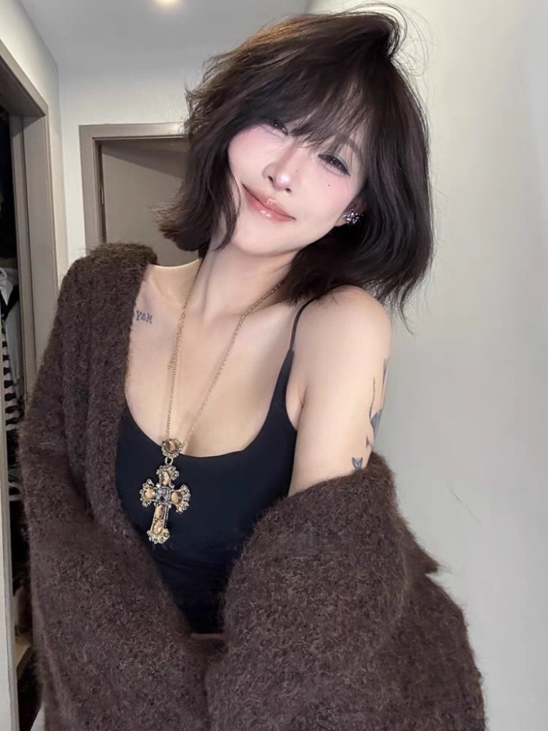 欧美重工珍珠十字架吊坠项链女潮流小众Y2K亚文化毛衣链辣妹配饰