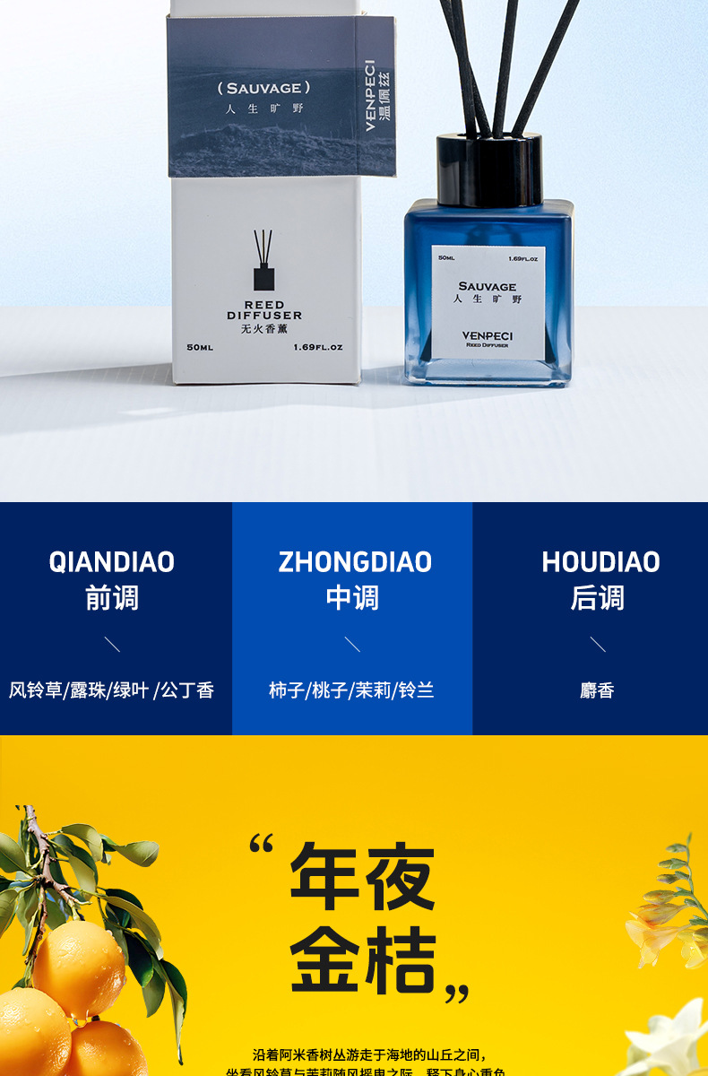 温佩兹无火香薰栀子花香氛室内卧室客厅清新空气香水高端节日礼物
