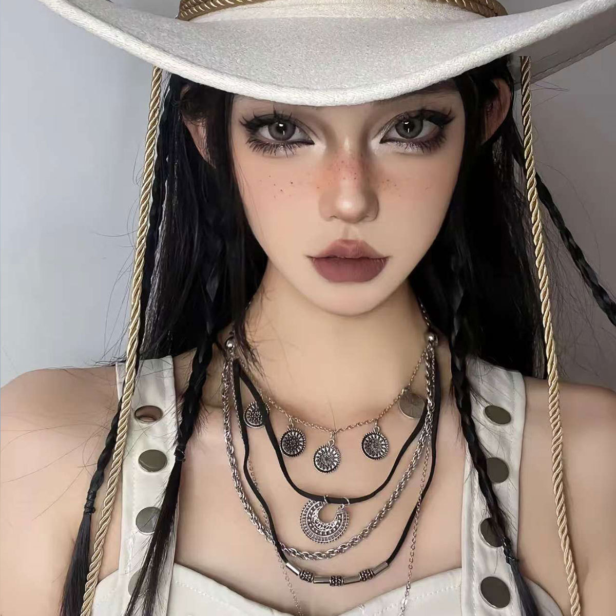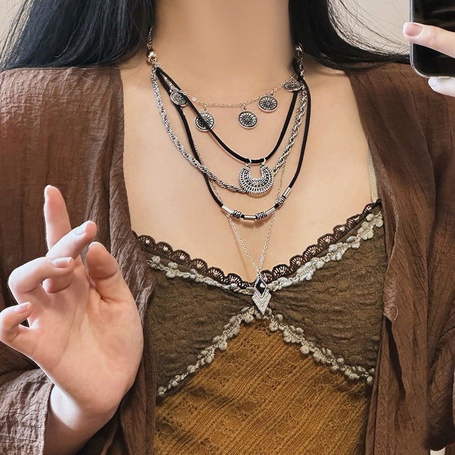 吉普赛多层夸张项链美式牛仔辣妹长款毛衣链复古废土民族风锁骨链