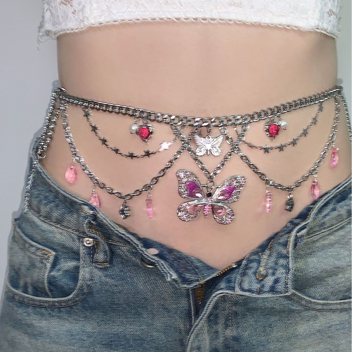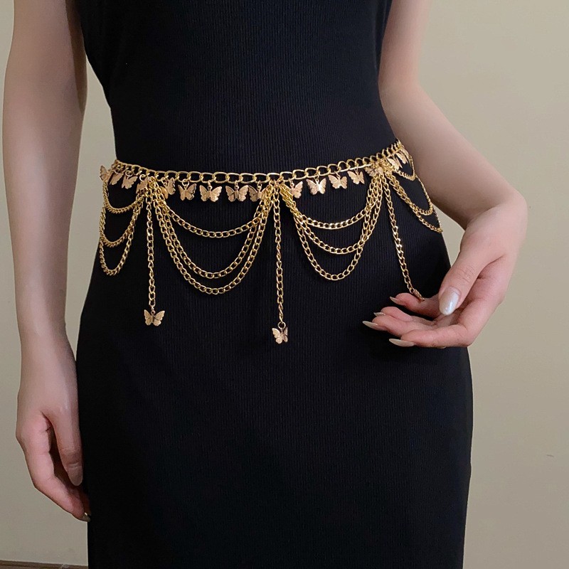 复古气质大小蝴蝶流苏金属腰链新款精致高级感腰带轻奢腰饰配饰