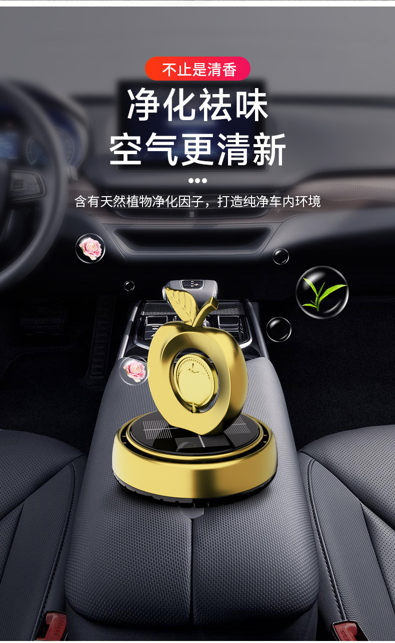 车载香薰太阳能香水汽车摆件车用除味旋转苹果装饰品高端持久淡香