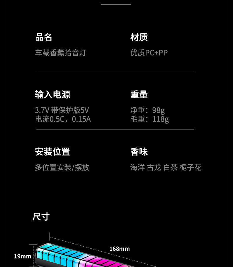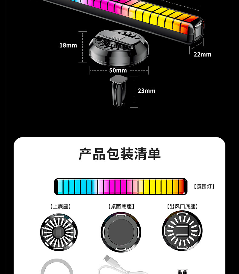 厂家直销车载香薰拾音氛围灯出风口音乐节奏灯声控家居桌面装饰灯