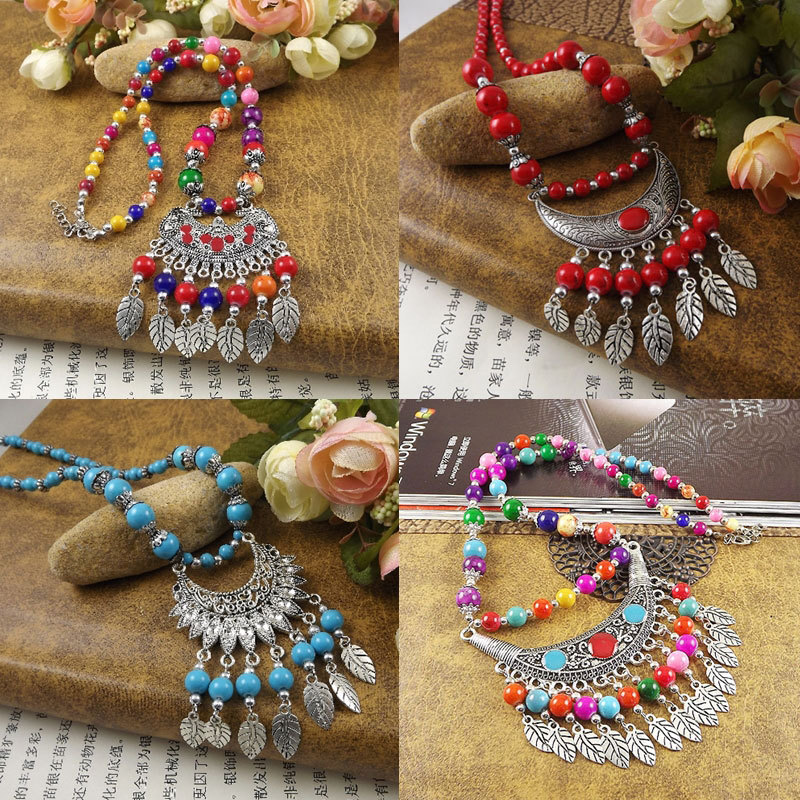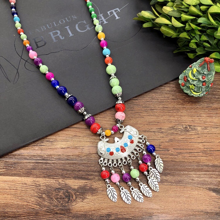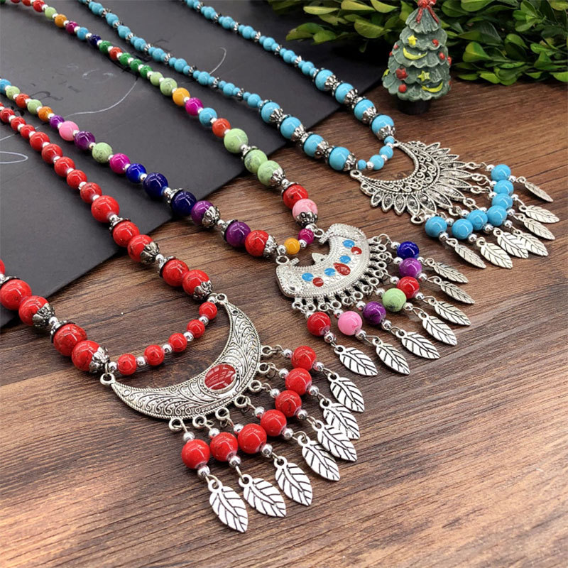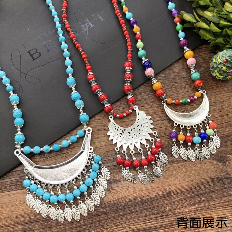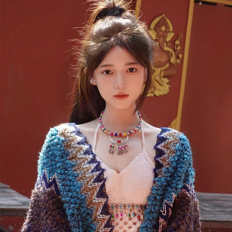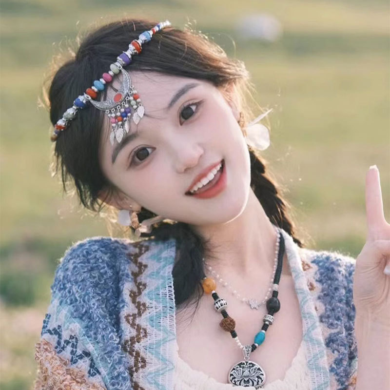 复古藏式民族风手工项链波西米亚毛衣链月亮花彩珠百搭头饰女配饰