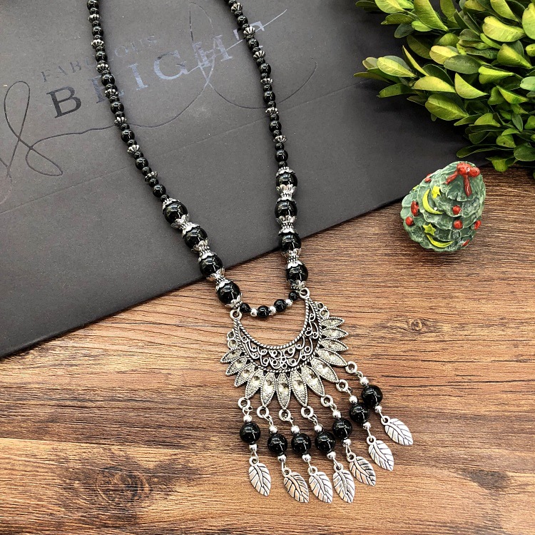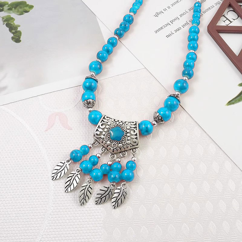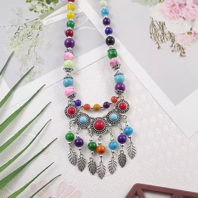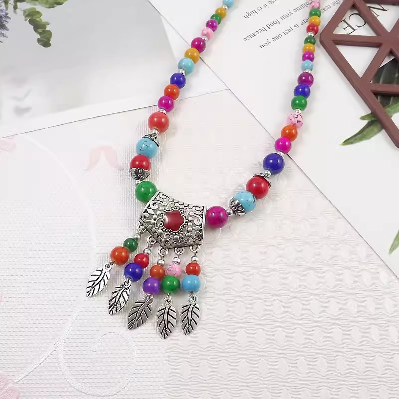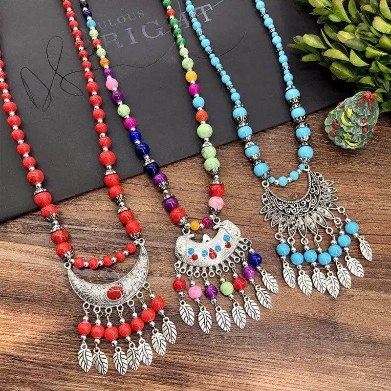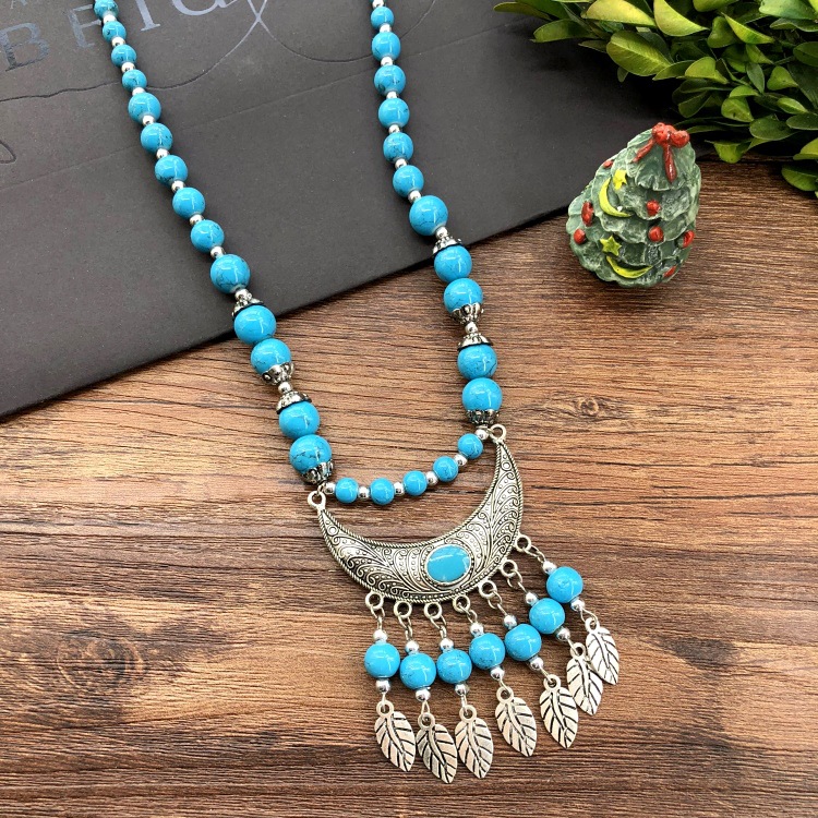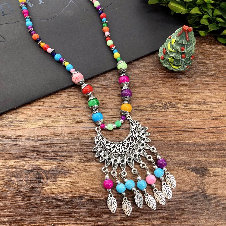 复古藏式民族风手工项链波西米亚毛衣链月亮花彩珠百搭头饰女配饰