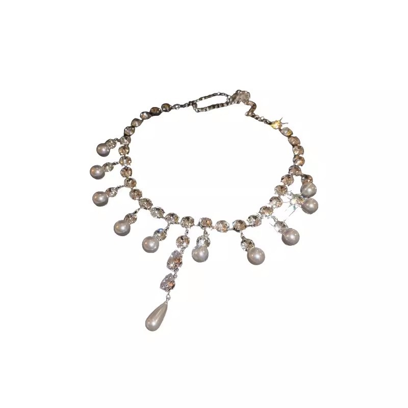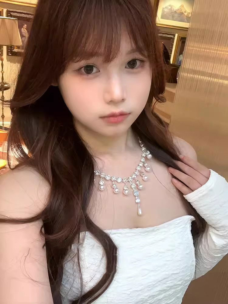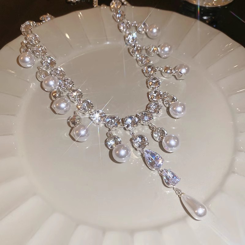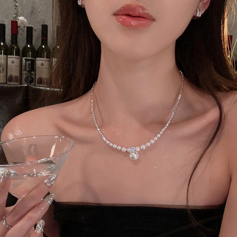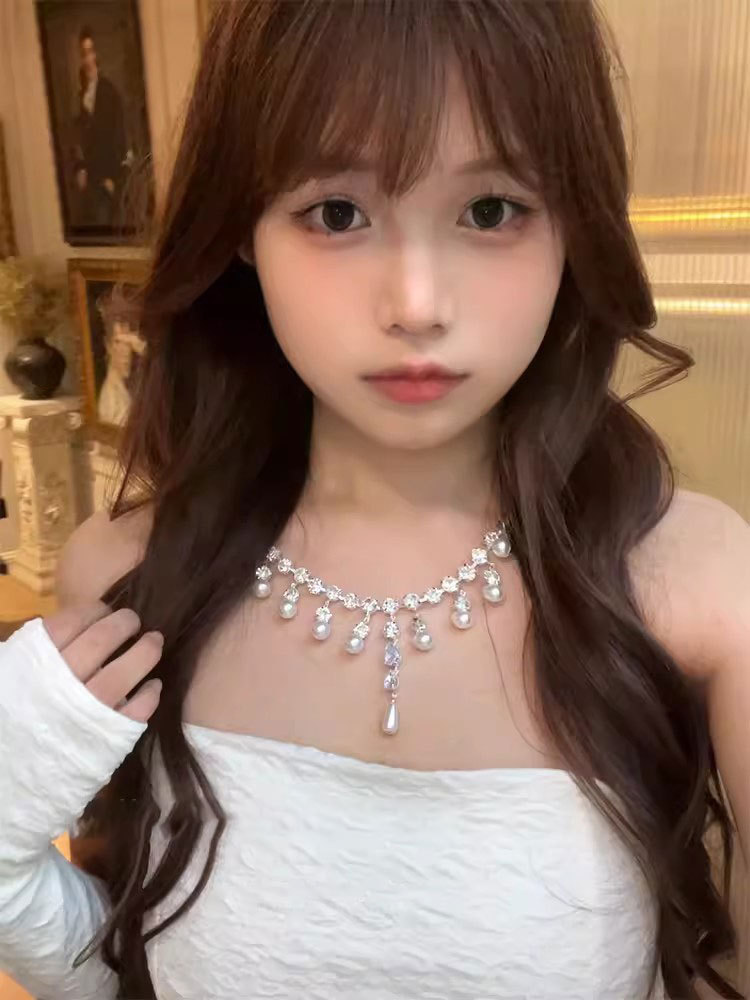 水滴锆石镶钻圆形珍珠项链法式高级感精致锁骨链轻奢礼服项饰