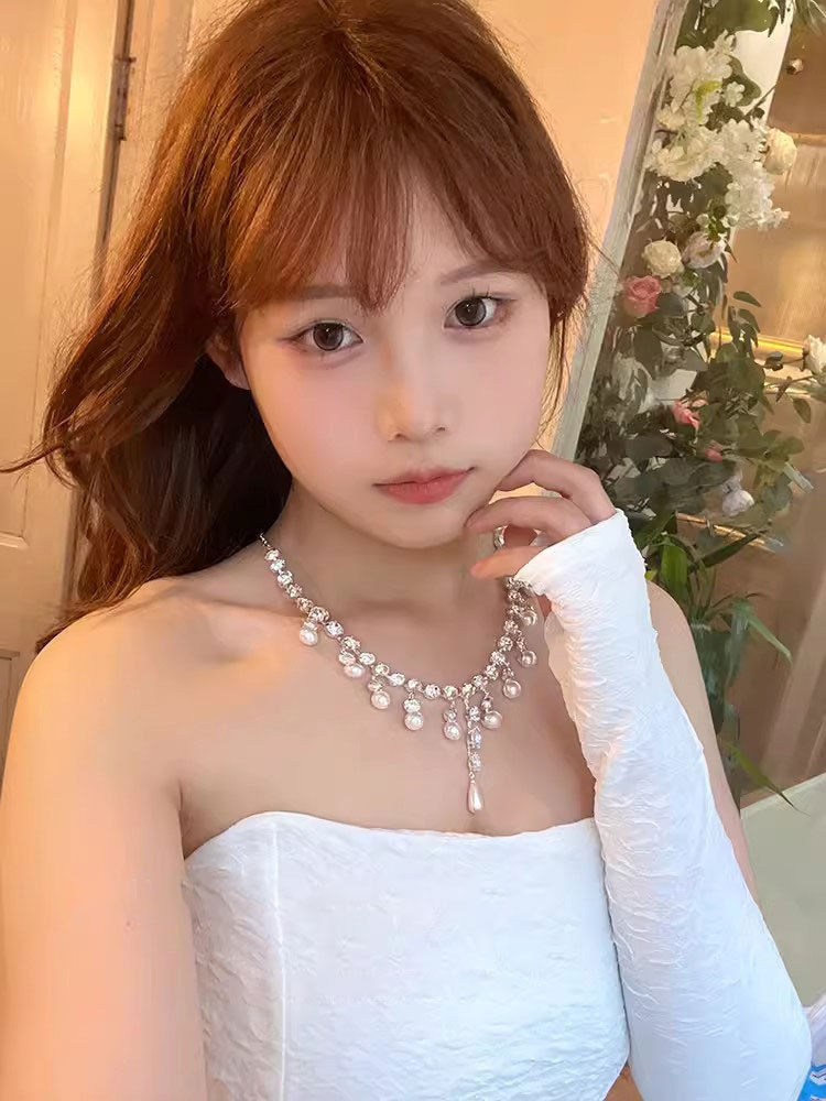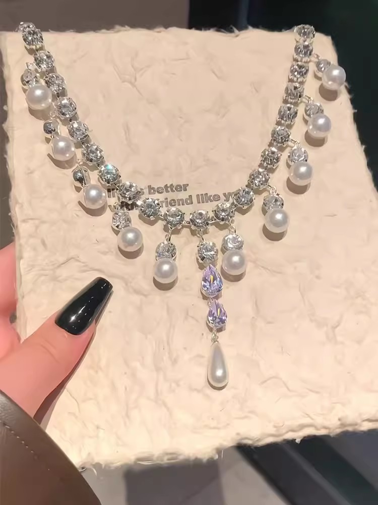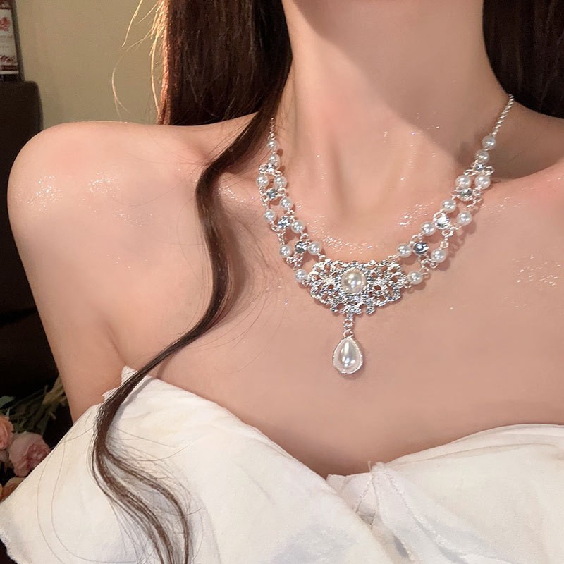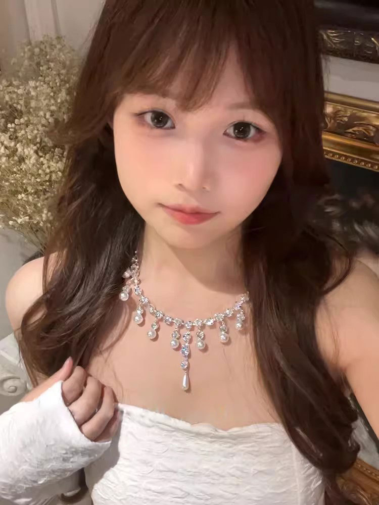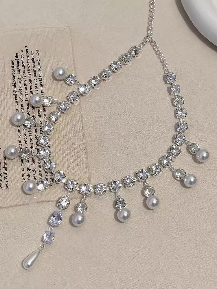 水滴锆石镶钻圆形珍珠项链法式高级感精致锁骨链轻奢礼服项饰