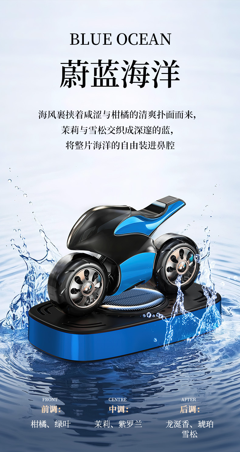 车载太阳能香薰大摩托摆件旋转持久散香车内中控台高档次装饰