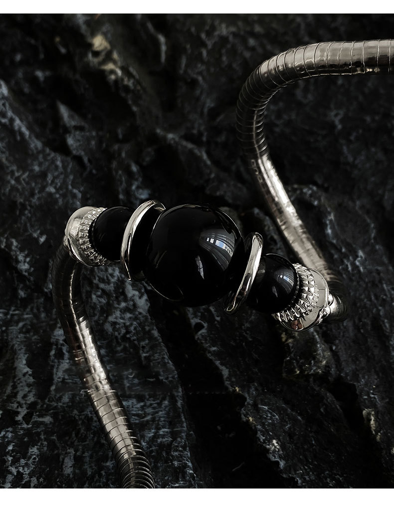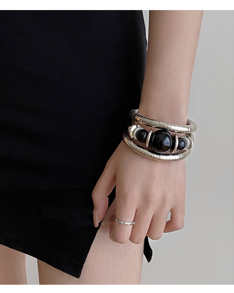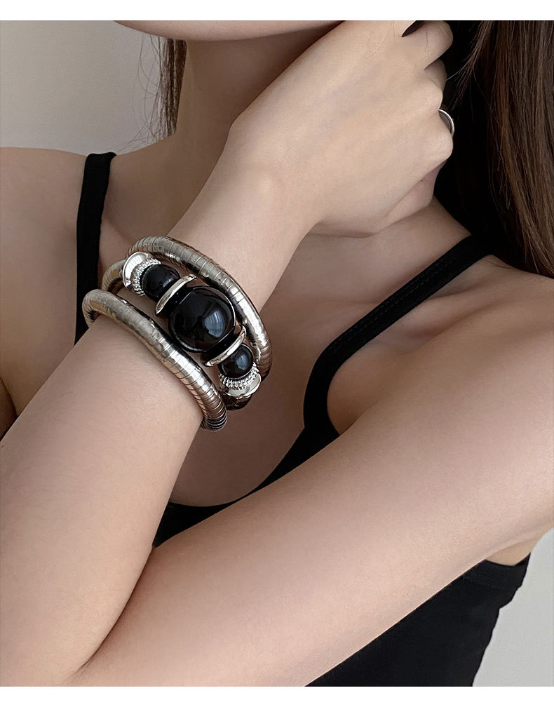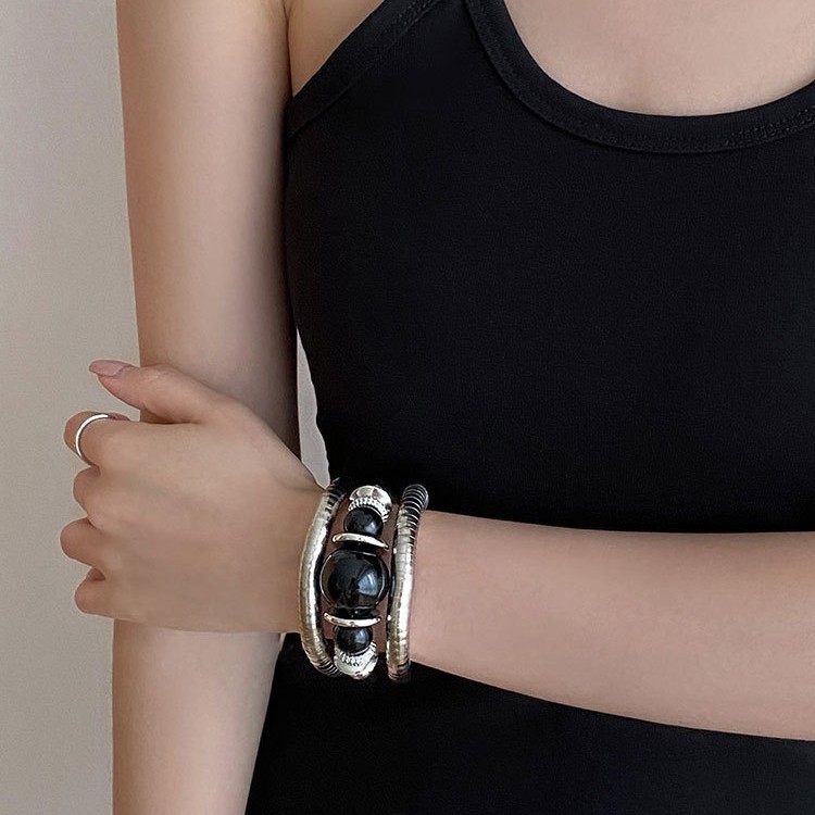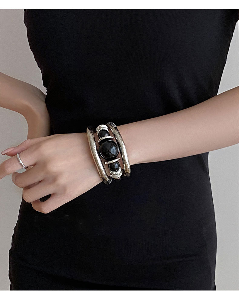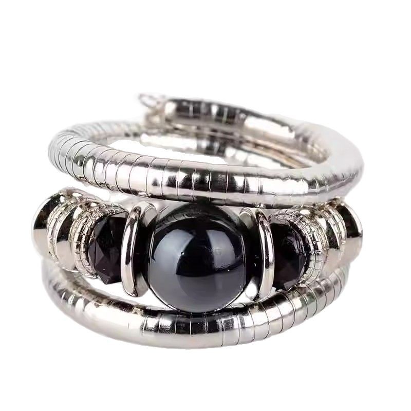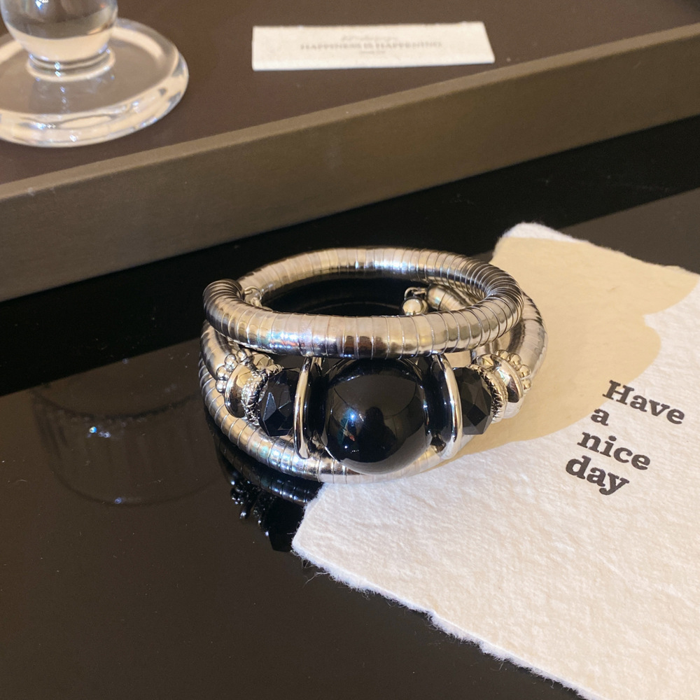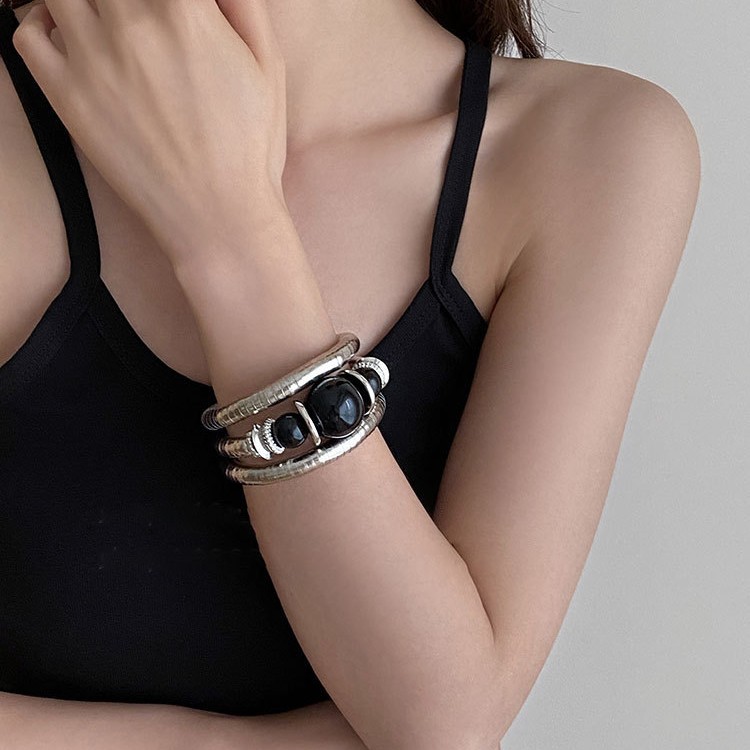 小众设计重工金属黑玛瑙手镯女时尚个性轻奢手环气质高级感手饰品