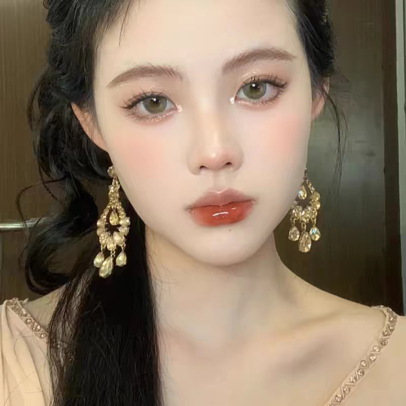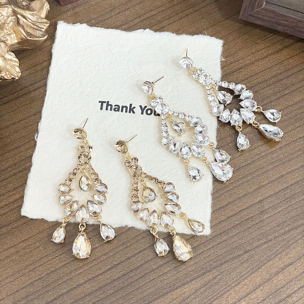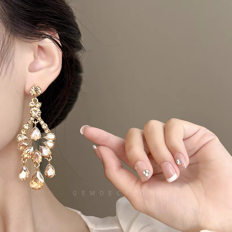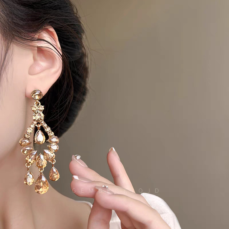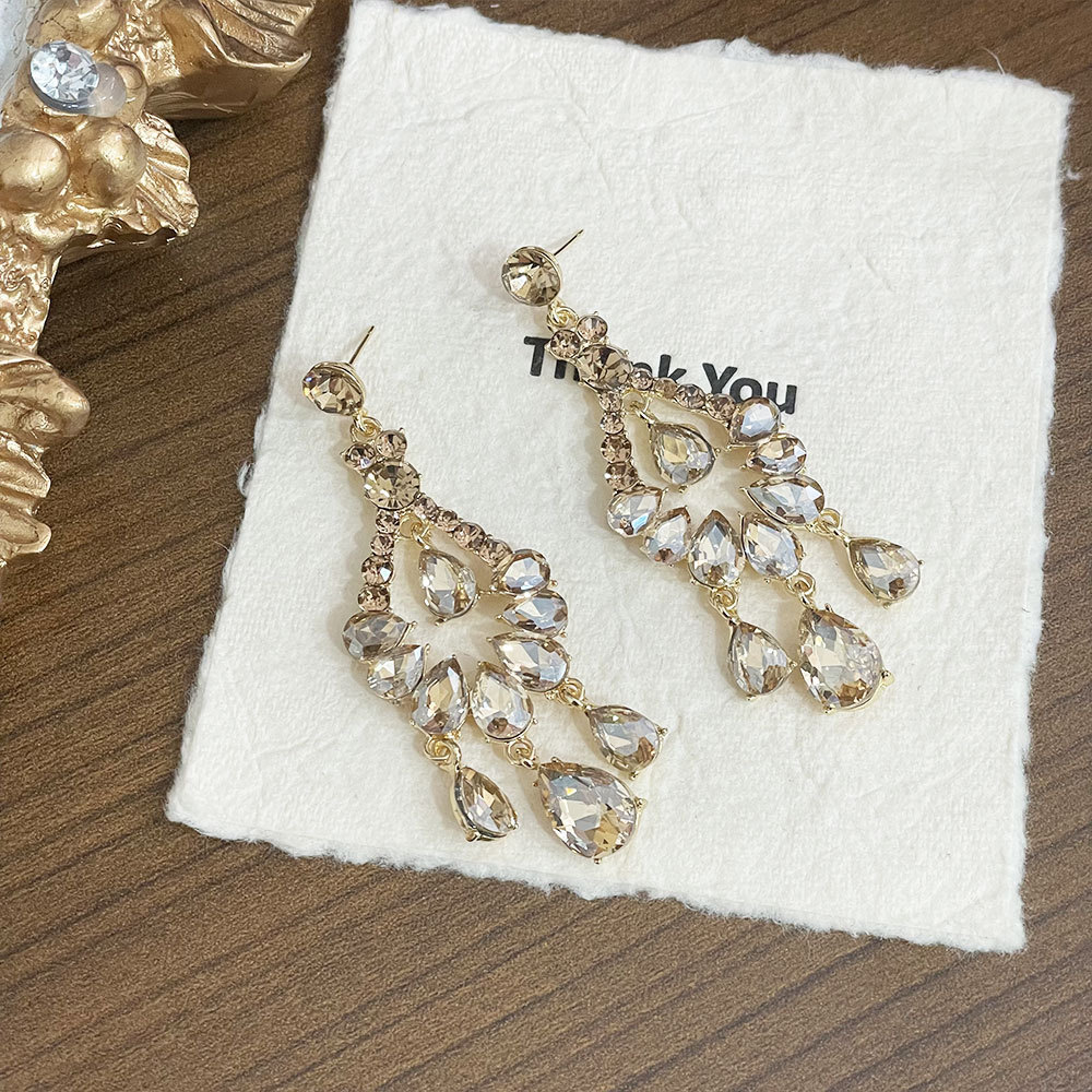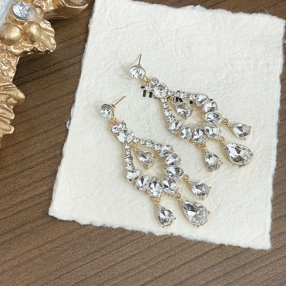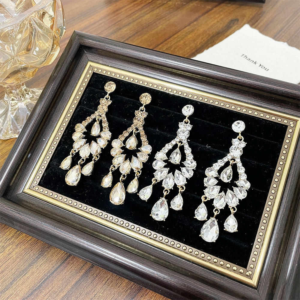 欧美轻奢水钻流苏耳钉优雅镂空设计时尚耳环高级感夸张耳饰批发