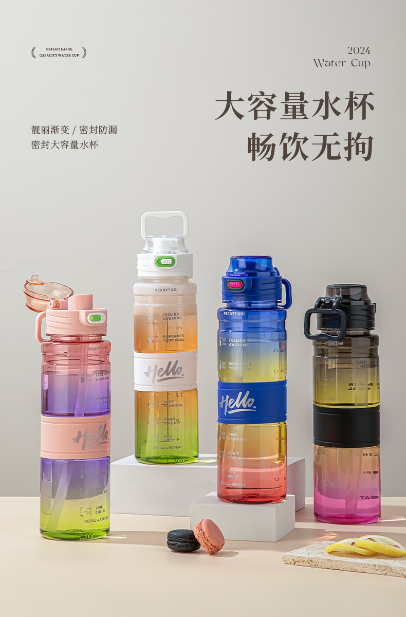 渐变色吸管杯塑料水杯2025新款便携带夏季大容量手提水壶防漏水杯