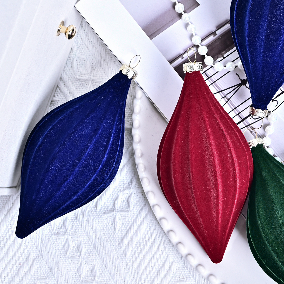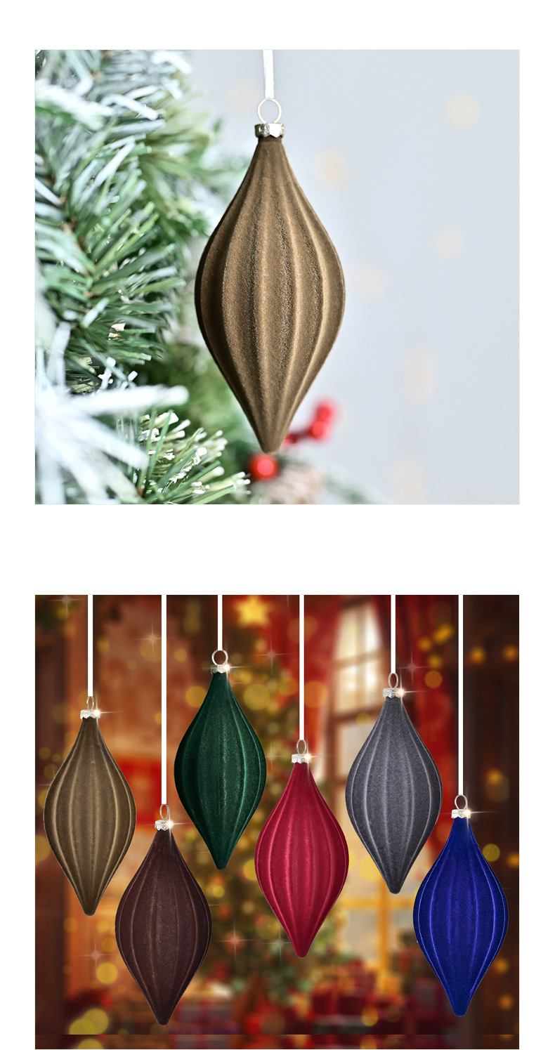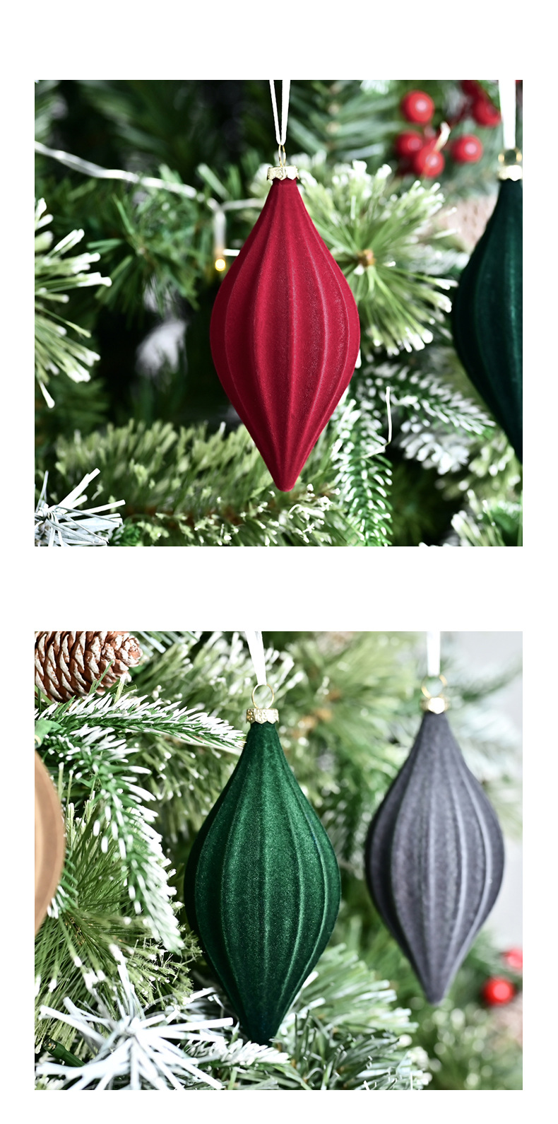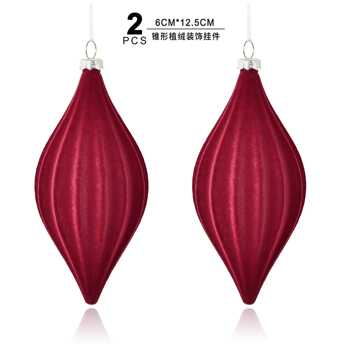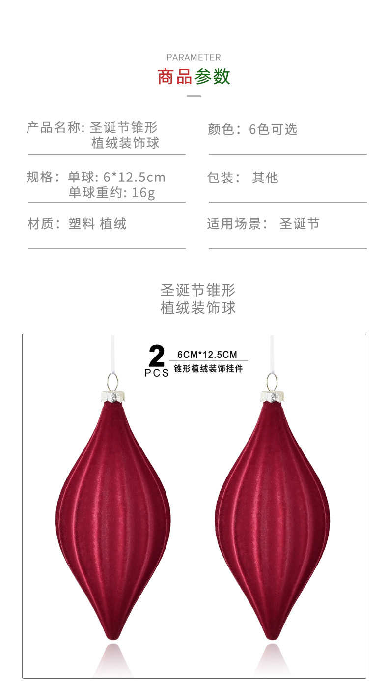 跨境新品圣诞树植绒圣诞球挂件锥形新尖果商场橱窗圣诞装饰品