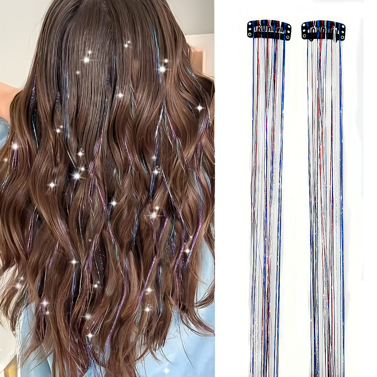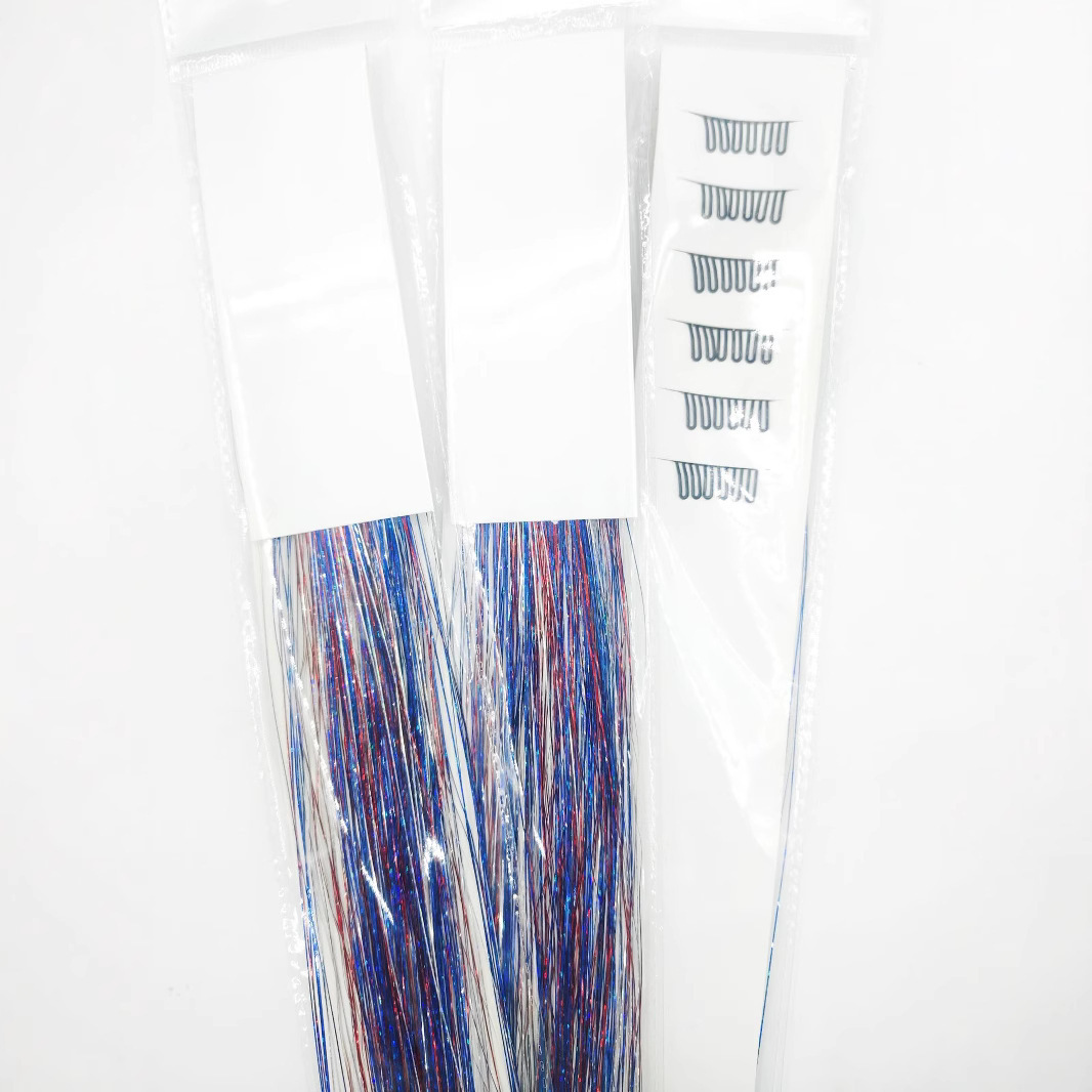 6件套款tinsel hair镭射金丝闪亮炫彩金银丝礼盒BB夹单卡假发片