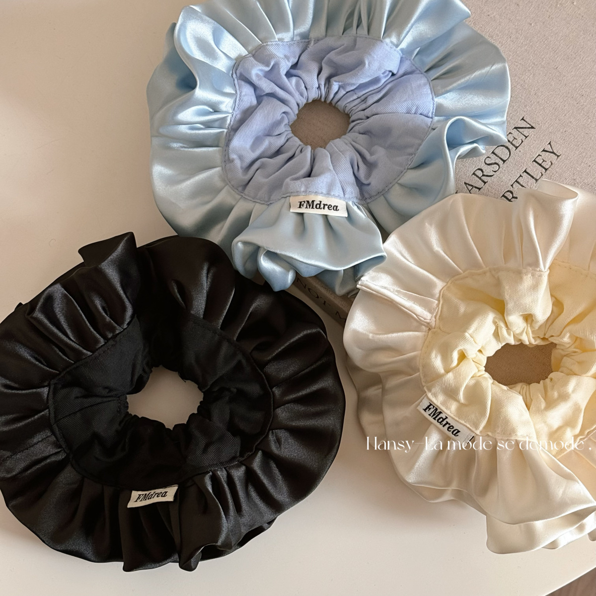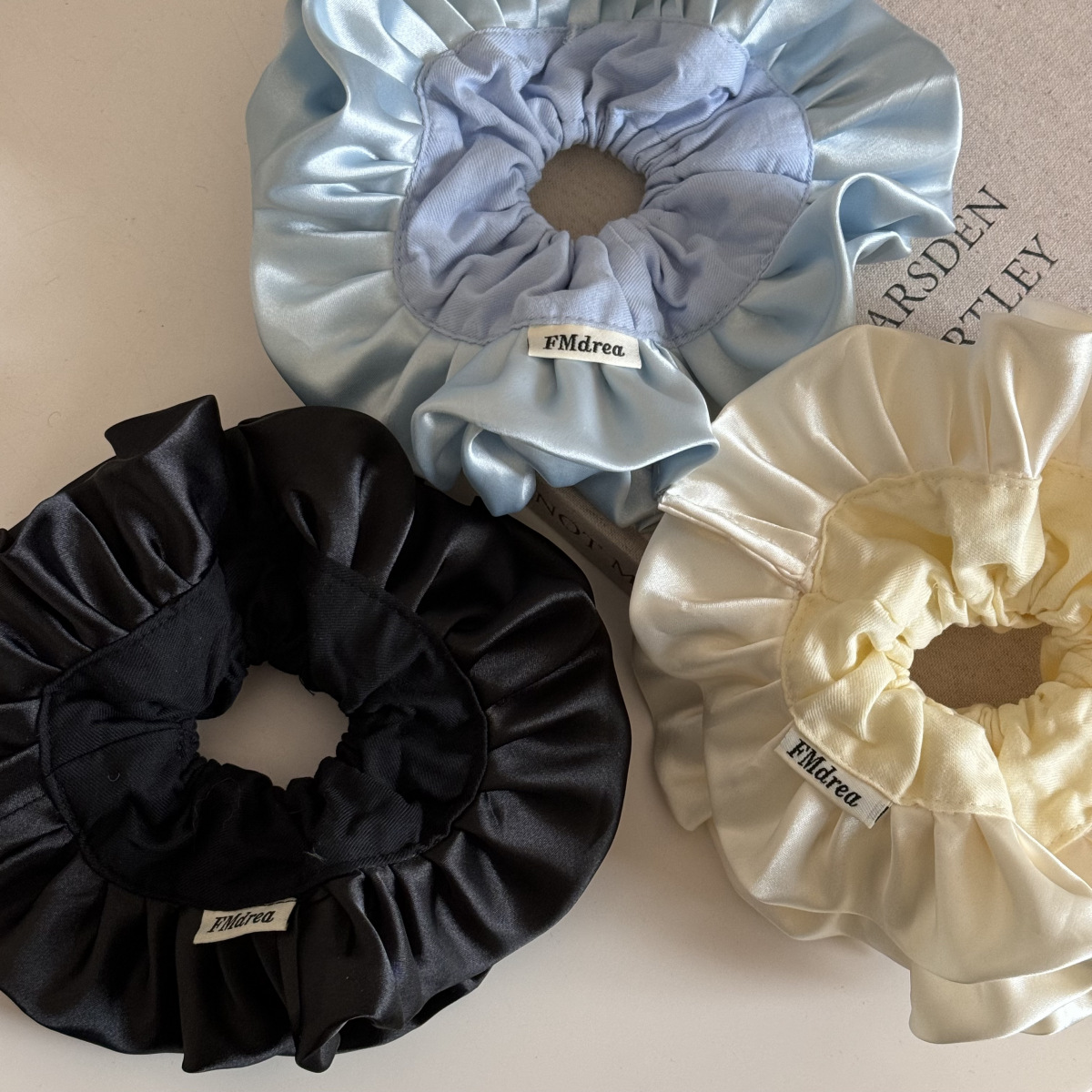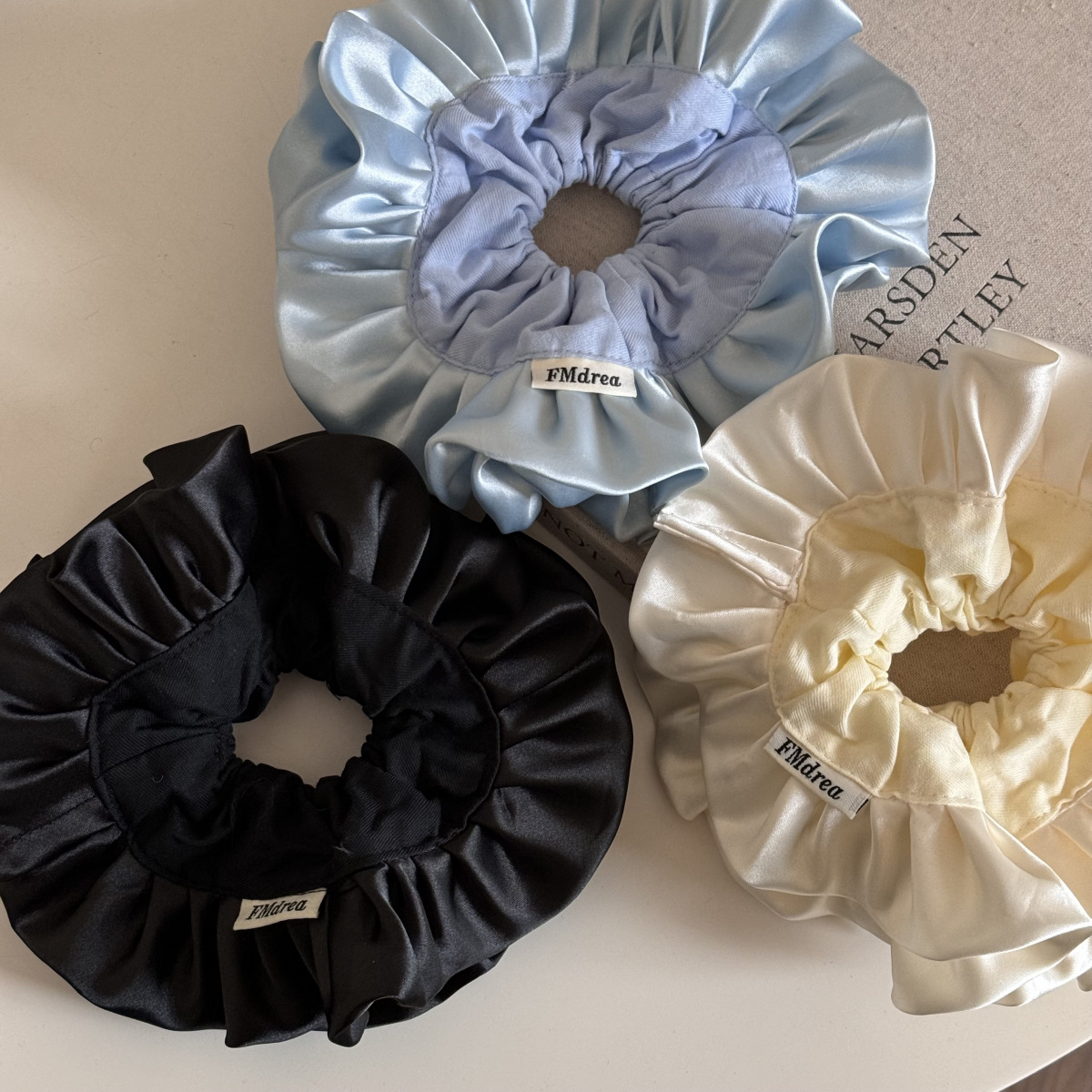 法式褶皱荷叶边大肠圈双层缎面布艺发圈芭蕾风发饰发绳新款头饰