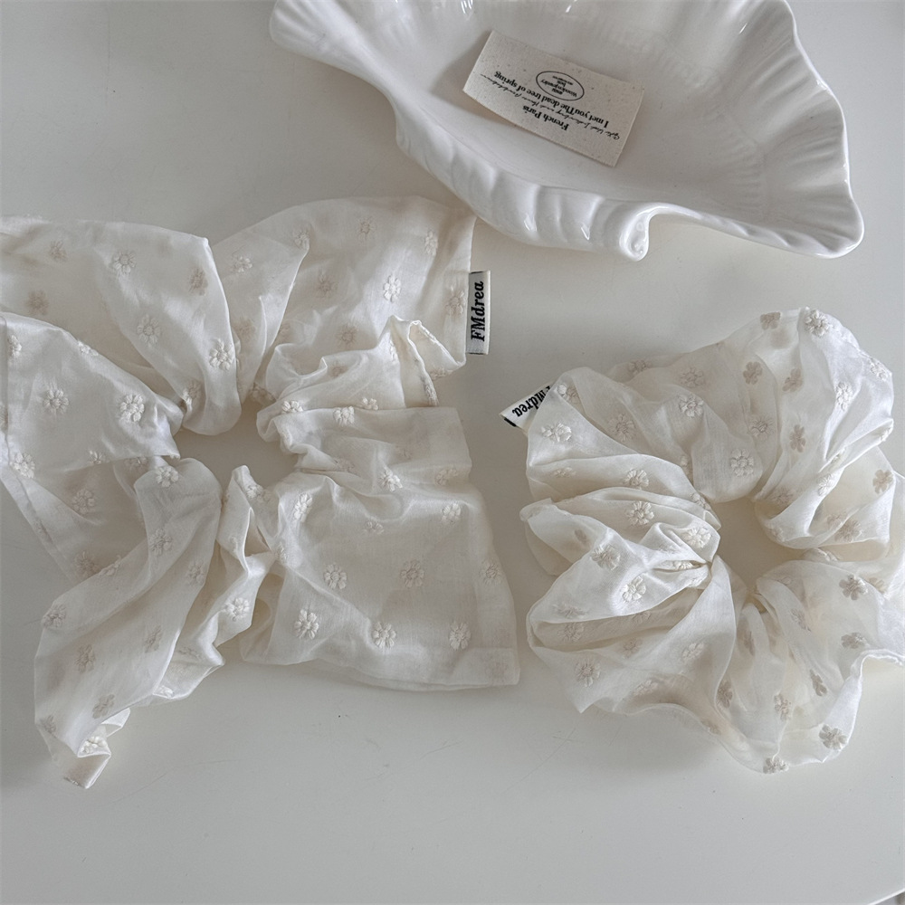 纯欲奶白色刺绣小花发绳发圈法式优雅方形圈大肠圈质感发饰新款