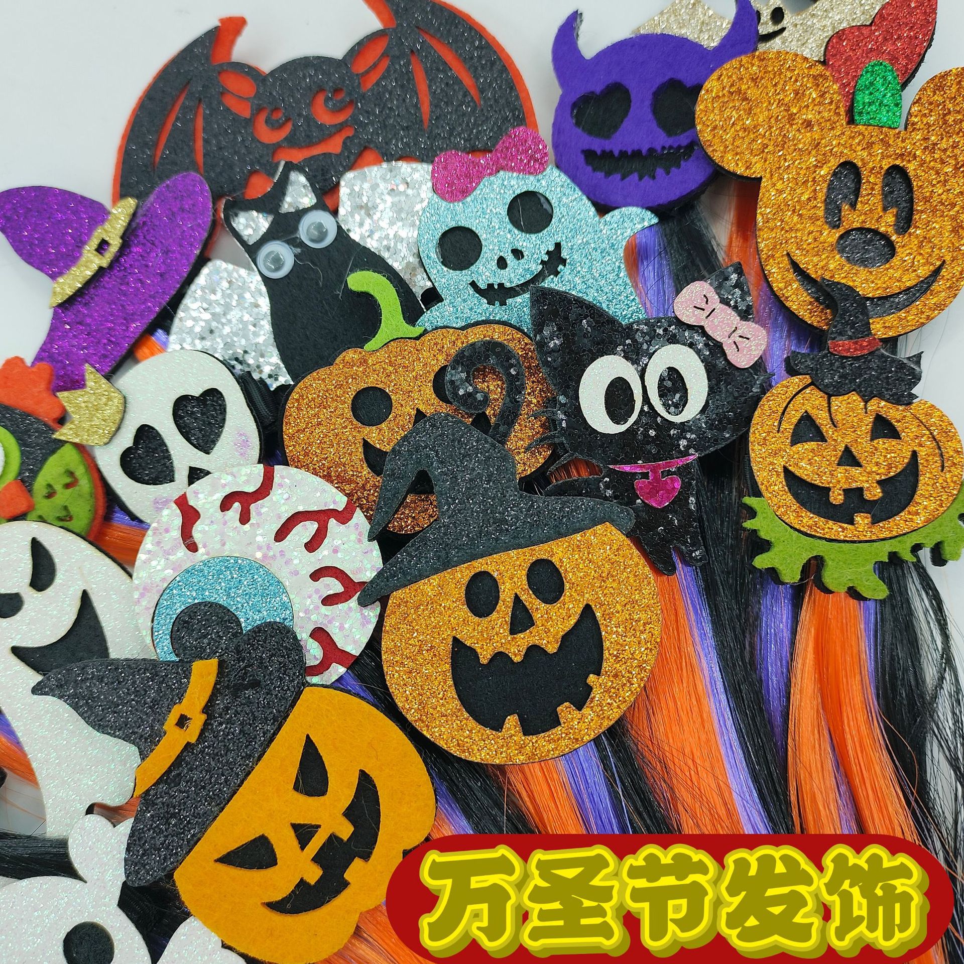 万圣节头饰跨境假发女发夹幽灵恶魔巫师帽南瓜头节日派对装饰发卡