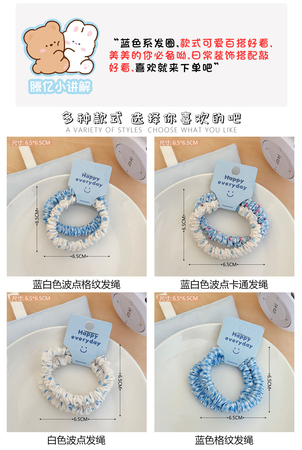 新款波点格纹小肠发圈发饰高弹力耐用头绳少女扎头发皮筋发绳批发