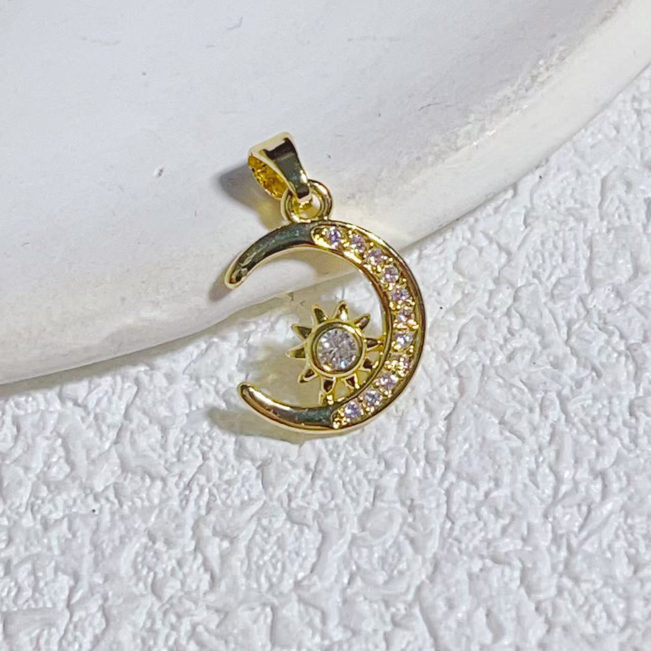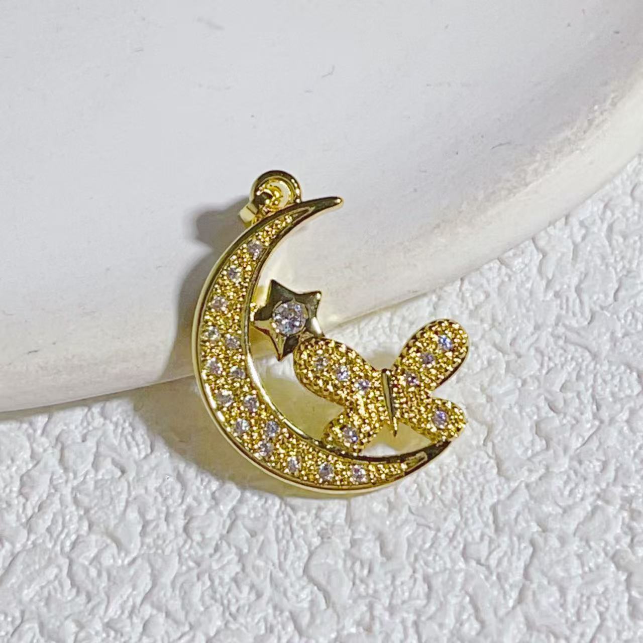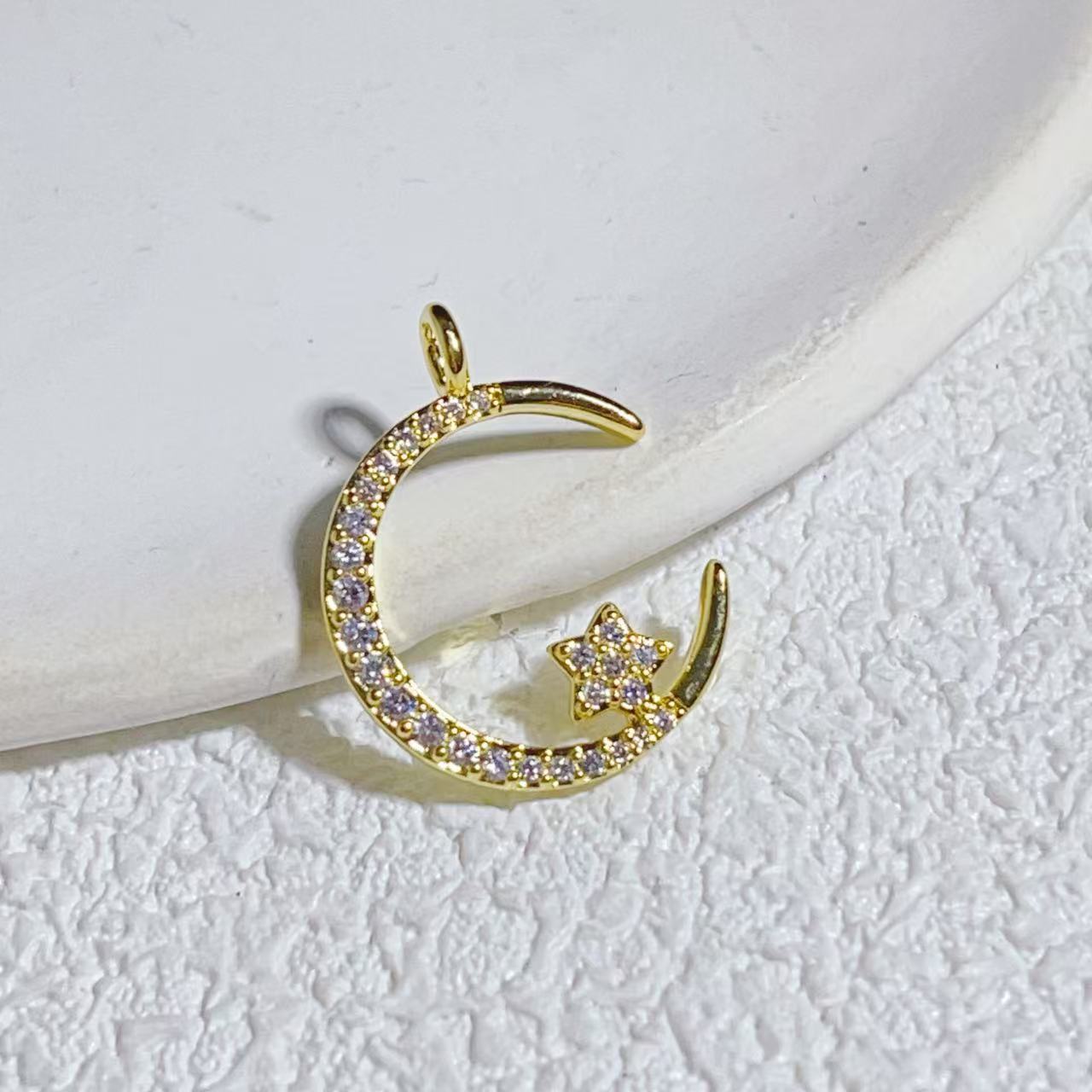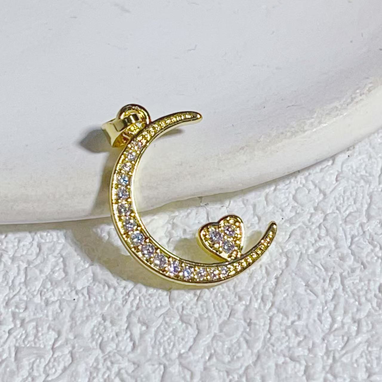 微镶18k包金保色微镶锆石多款月亮小挂件吊坠耳环制作欧美跨境