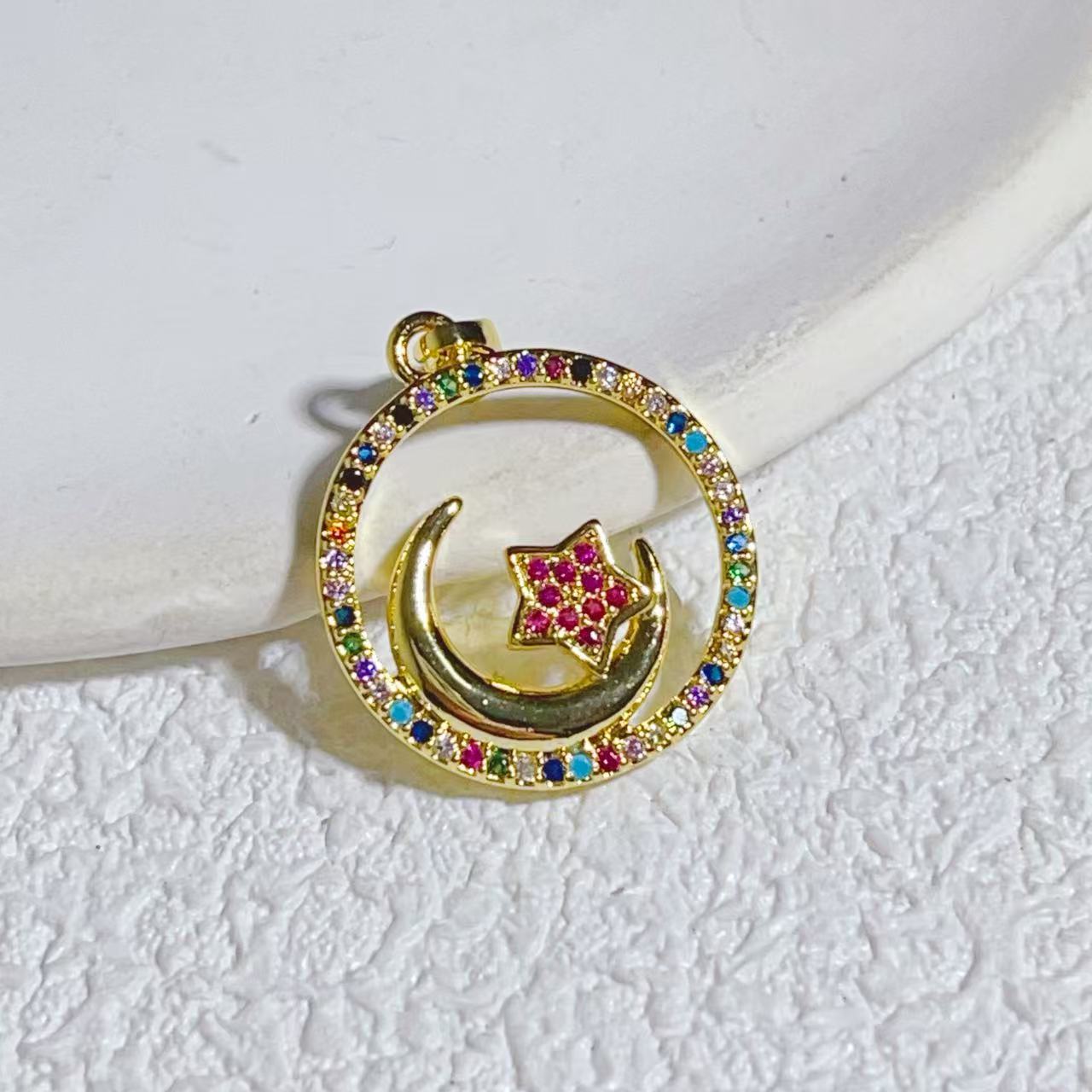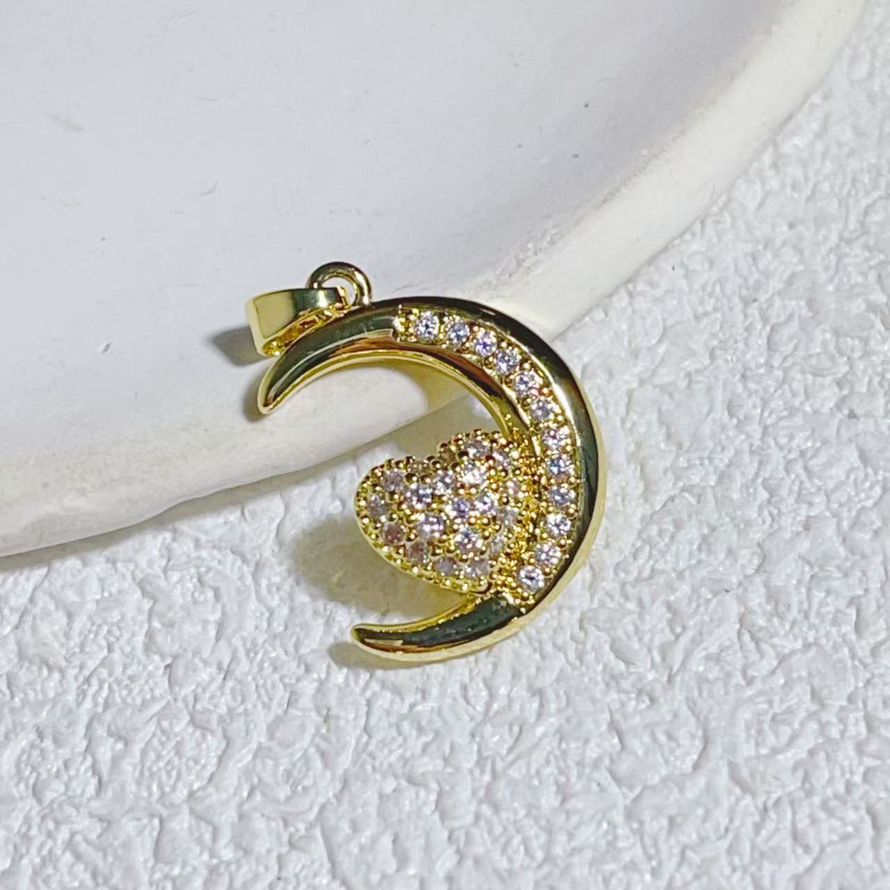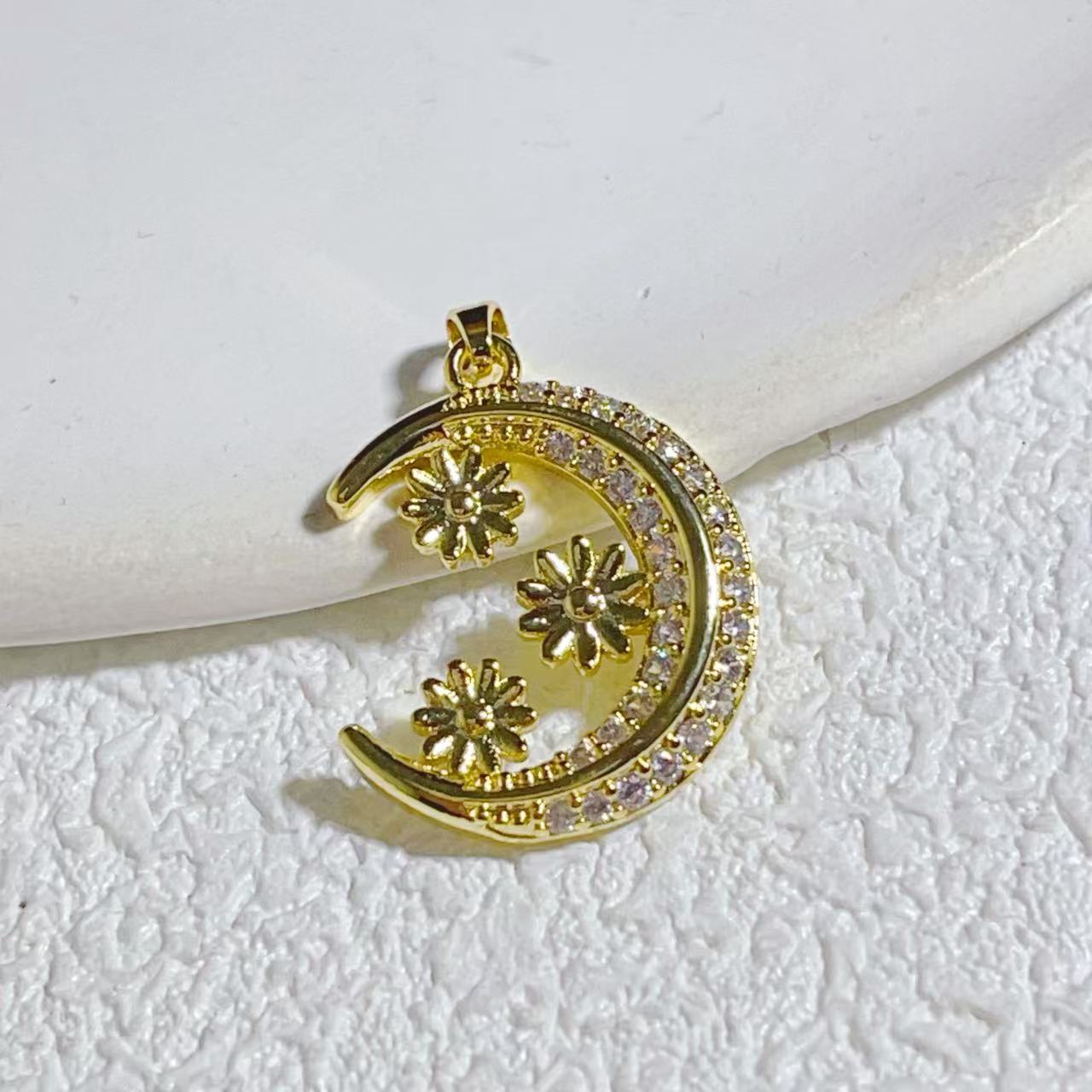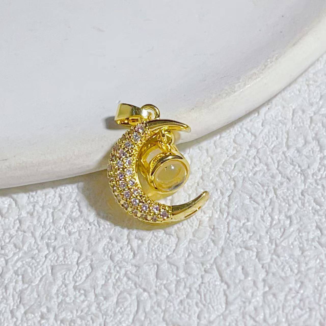 微镶18k包金保色微镶锆石多款月亮小挂件吊坠耳环制作欧美跨境
