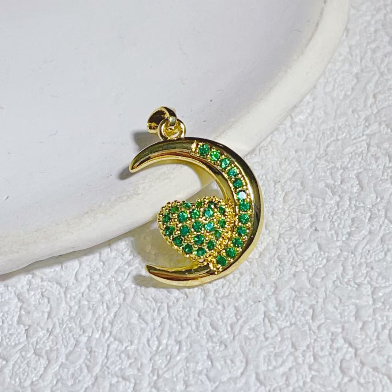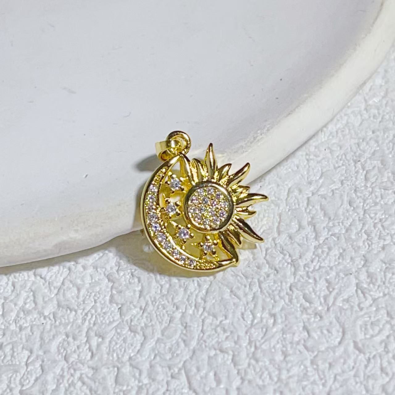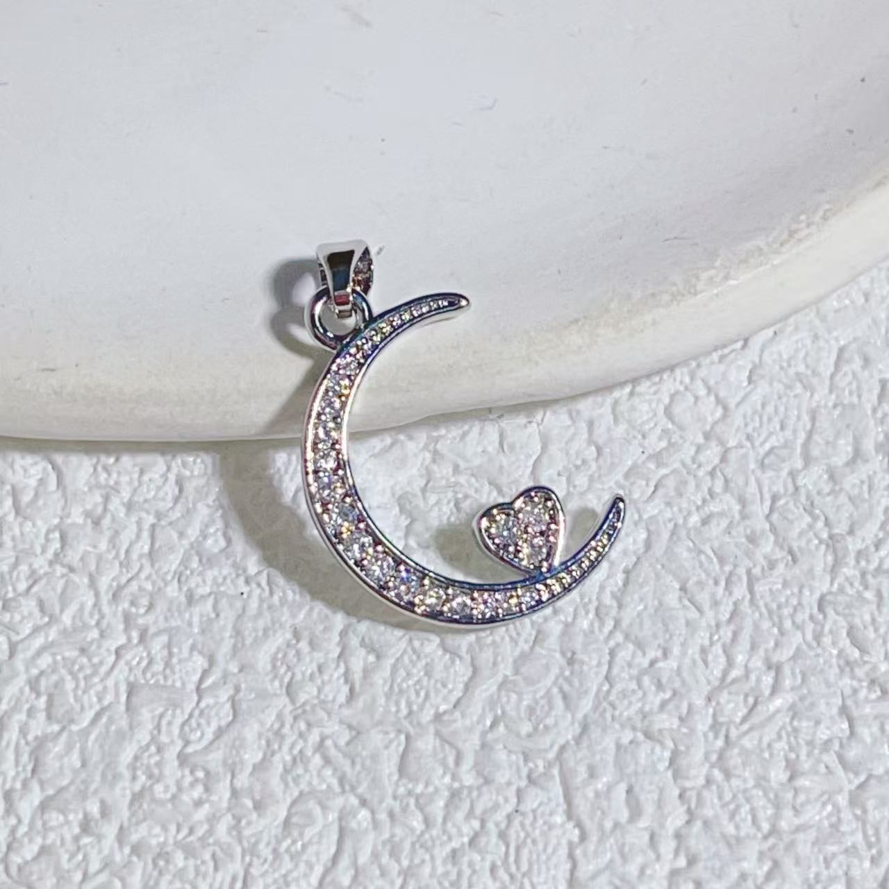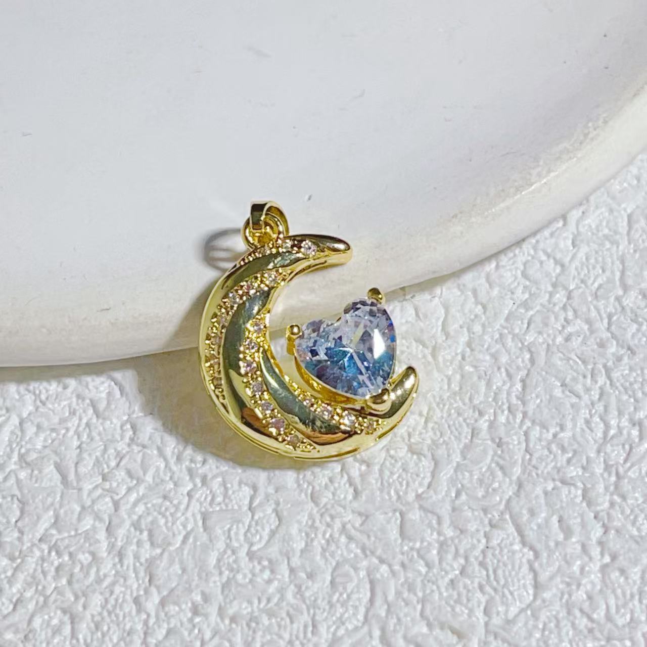 微镶18k包金保色微镶锆石多款月亮小挂件吊坠耳环制作欧美跨境