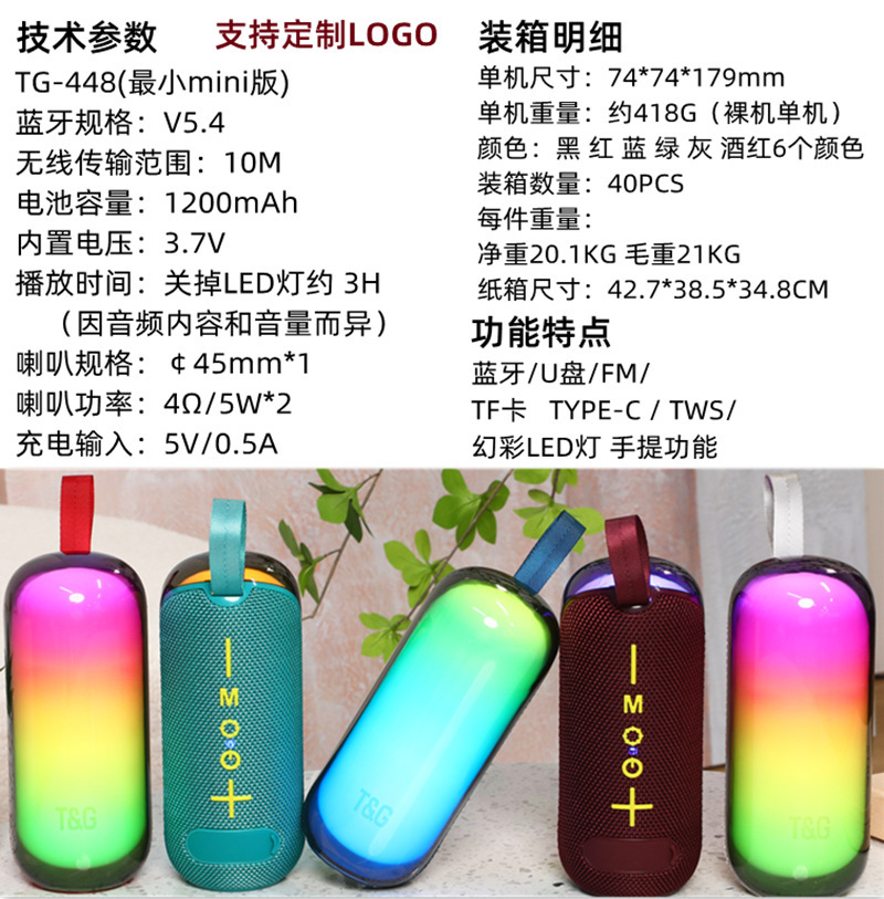 TG448mini 跨境迷你RGB蓝牙音箱彩灯户外布艺便携插卡音响蓝牙