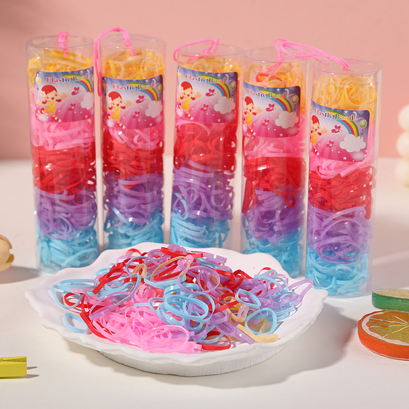 韩版热卖彩色一次性皮筋儿童扎头绳桶装发圈不伤发头饰厂家直销