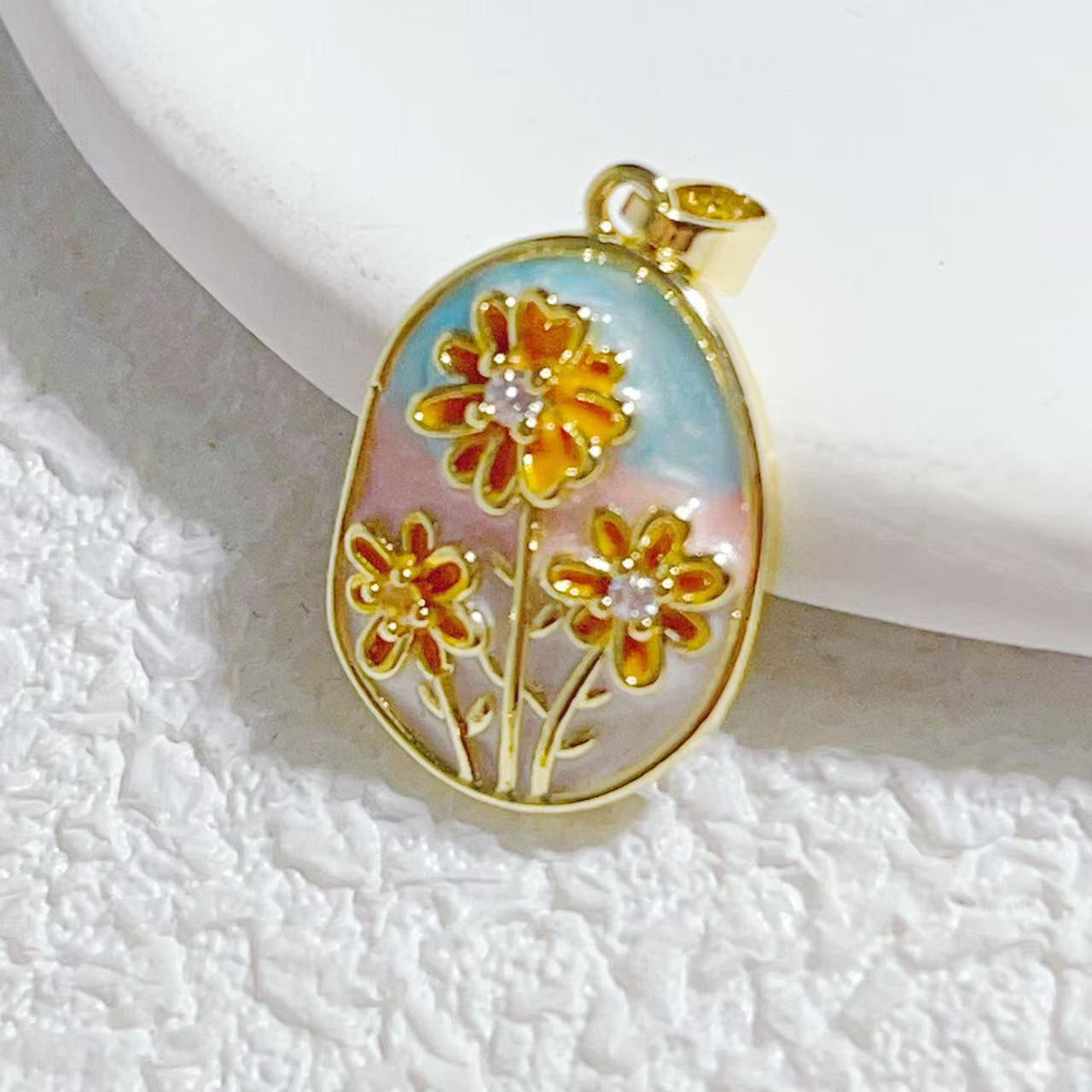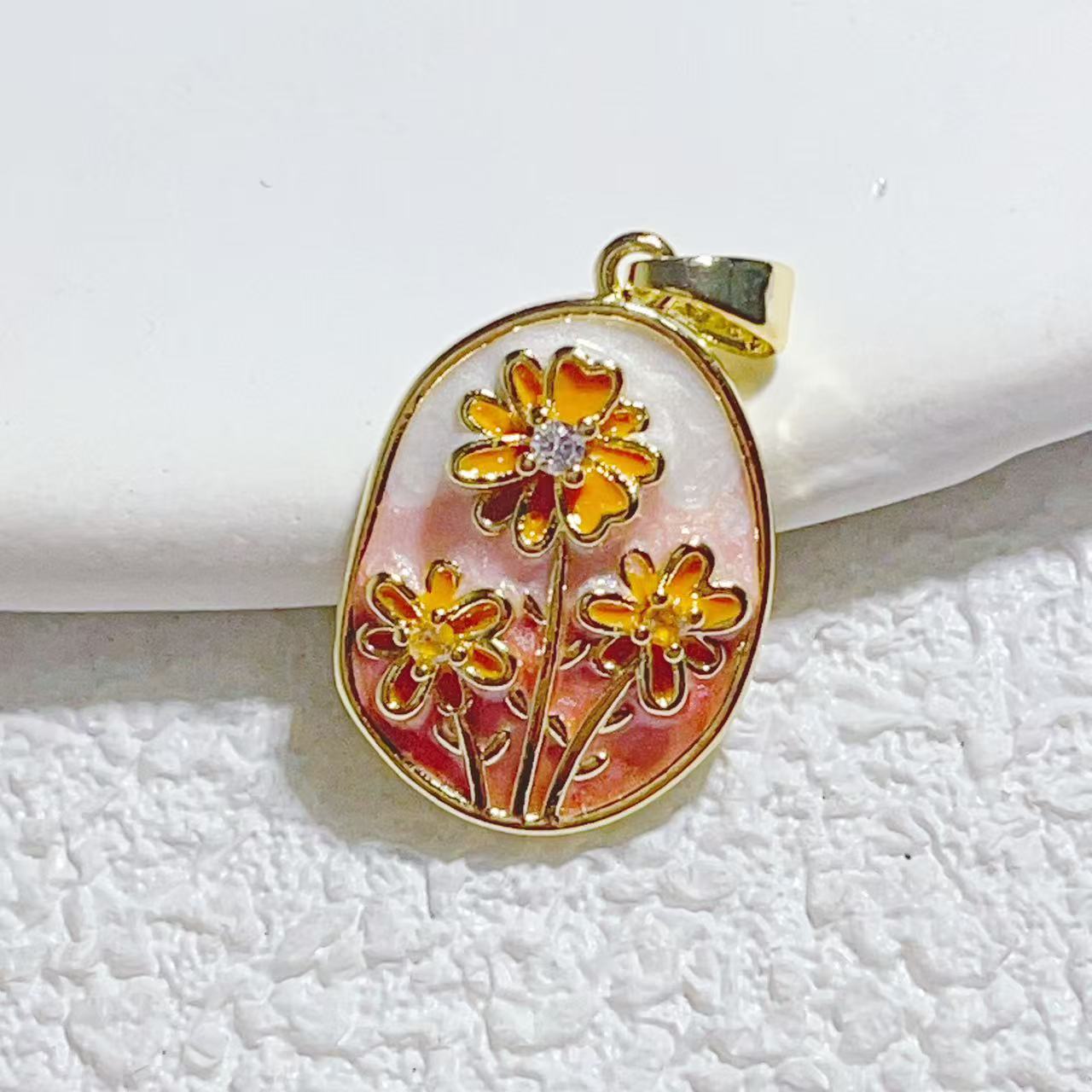 莫奈花园油画风铜镀真金保色天然淡水珍珠鲜花吊坠挂件diy配件