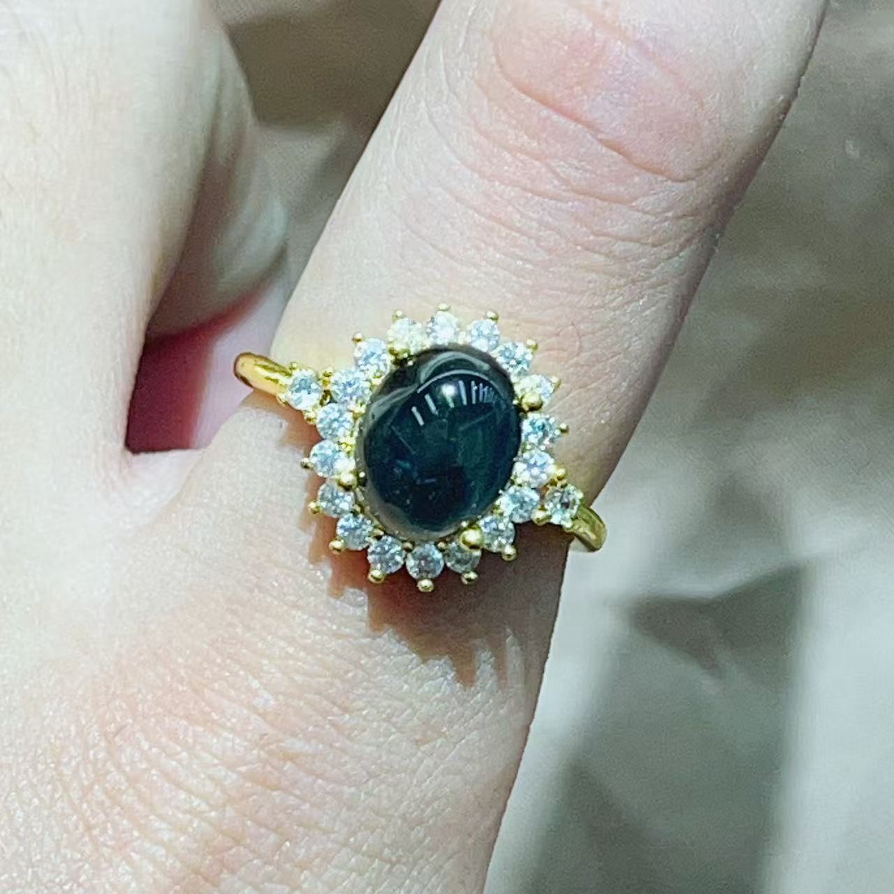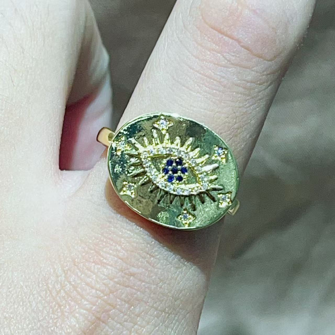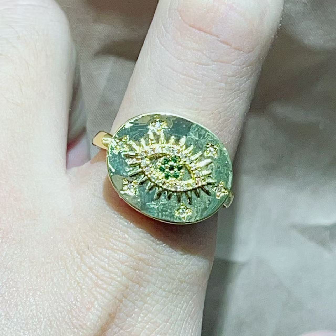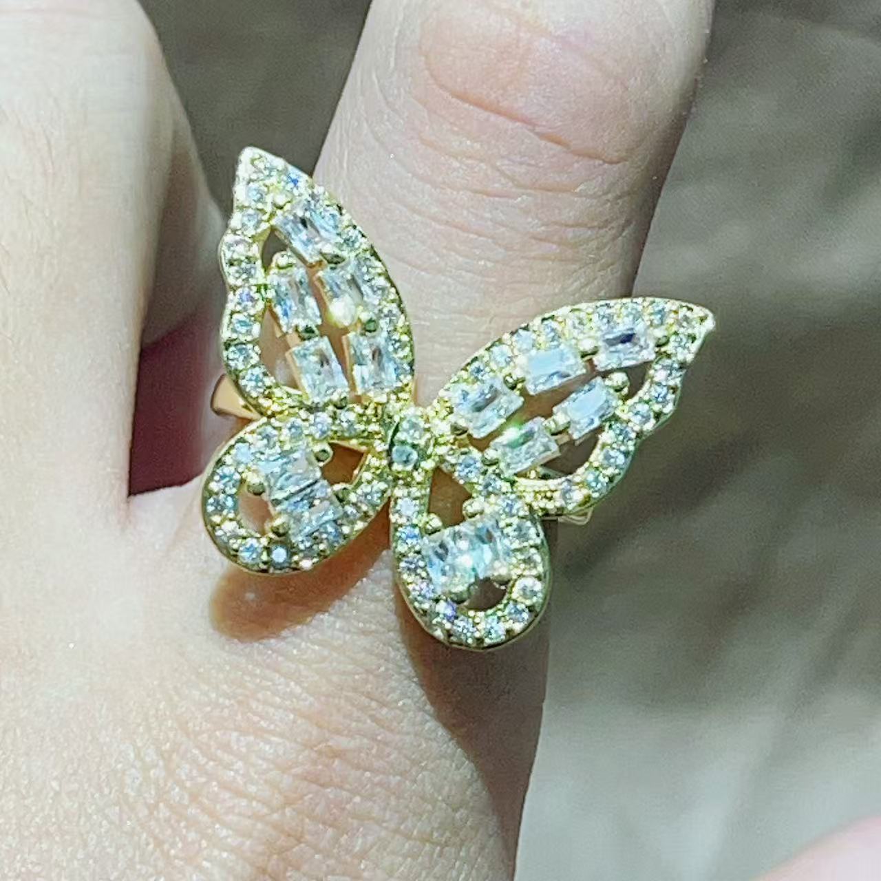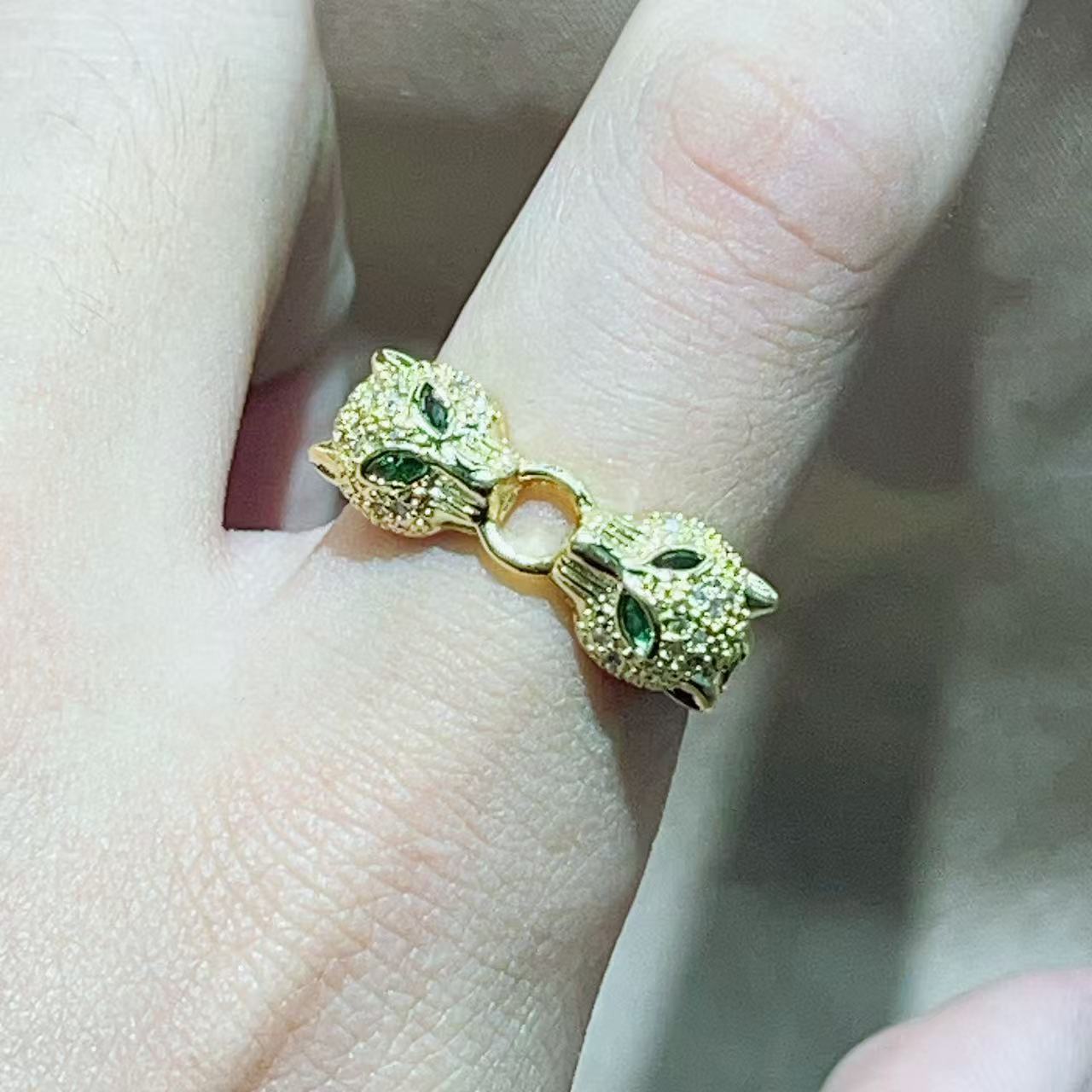 亚马逊热销铜镀真金保色豹子蝴蝶眼睛感温石气质微镶锆石戒指