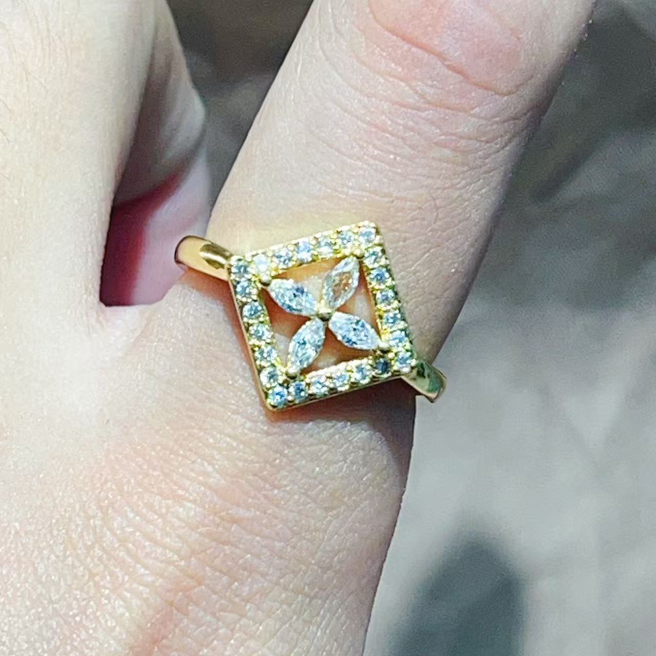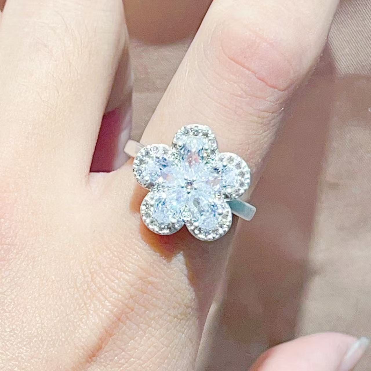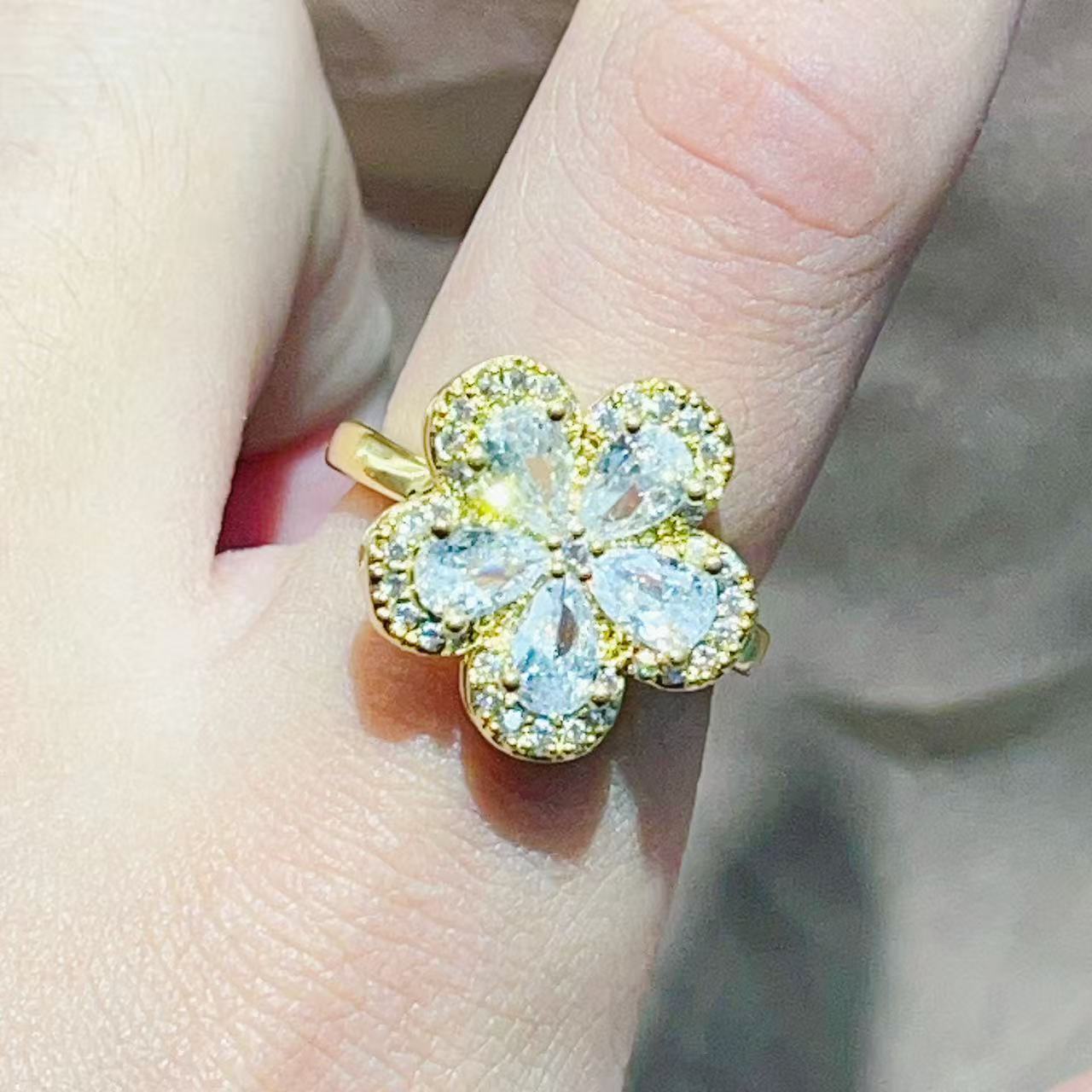 跨境新款时尚优雅气质铜镀真金保色樱花花朵微镶高级感戒指